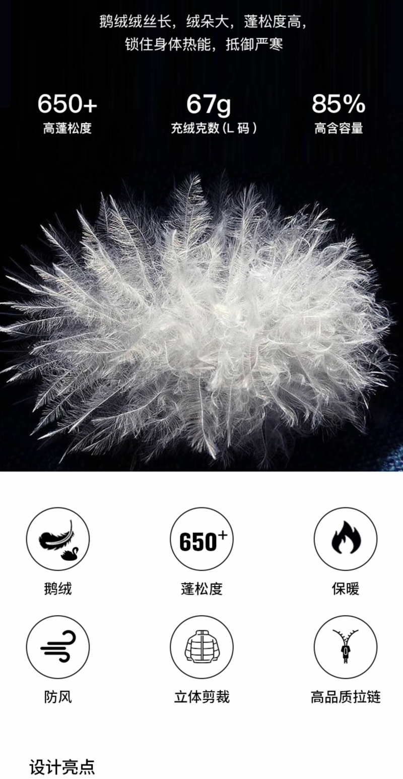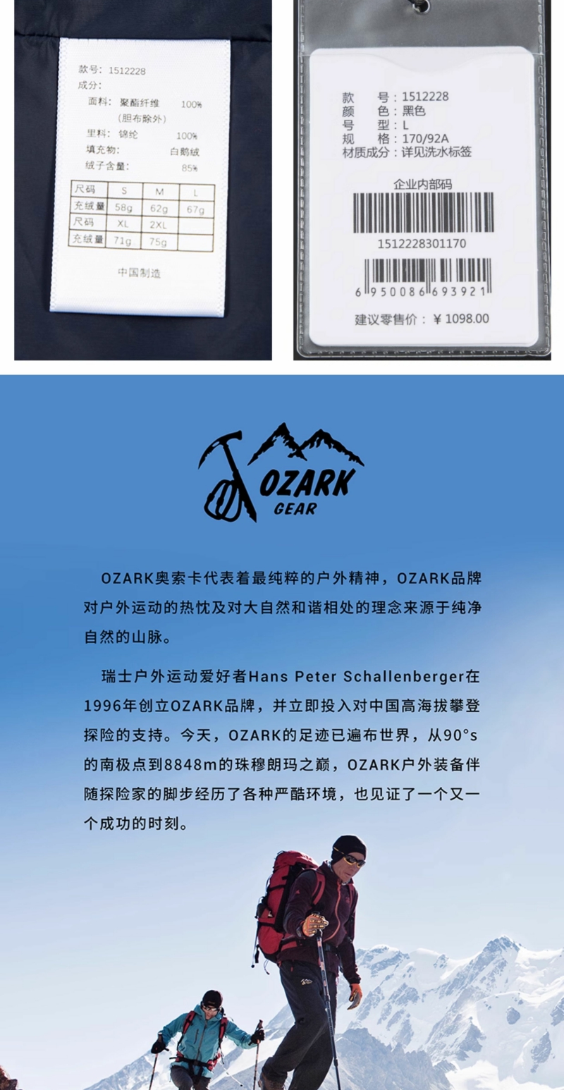 OZARK奥索卡户外保暖羽绒服白鹅绒轻便户外棉服650FP轻盈保暖外套1512228