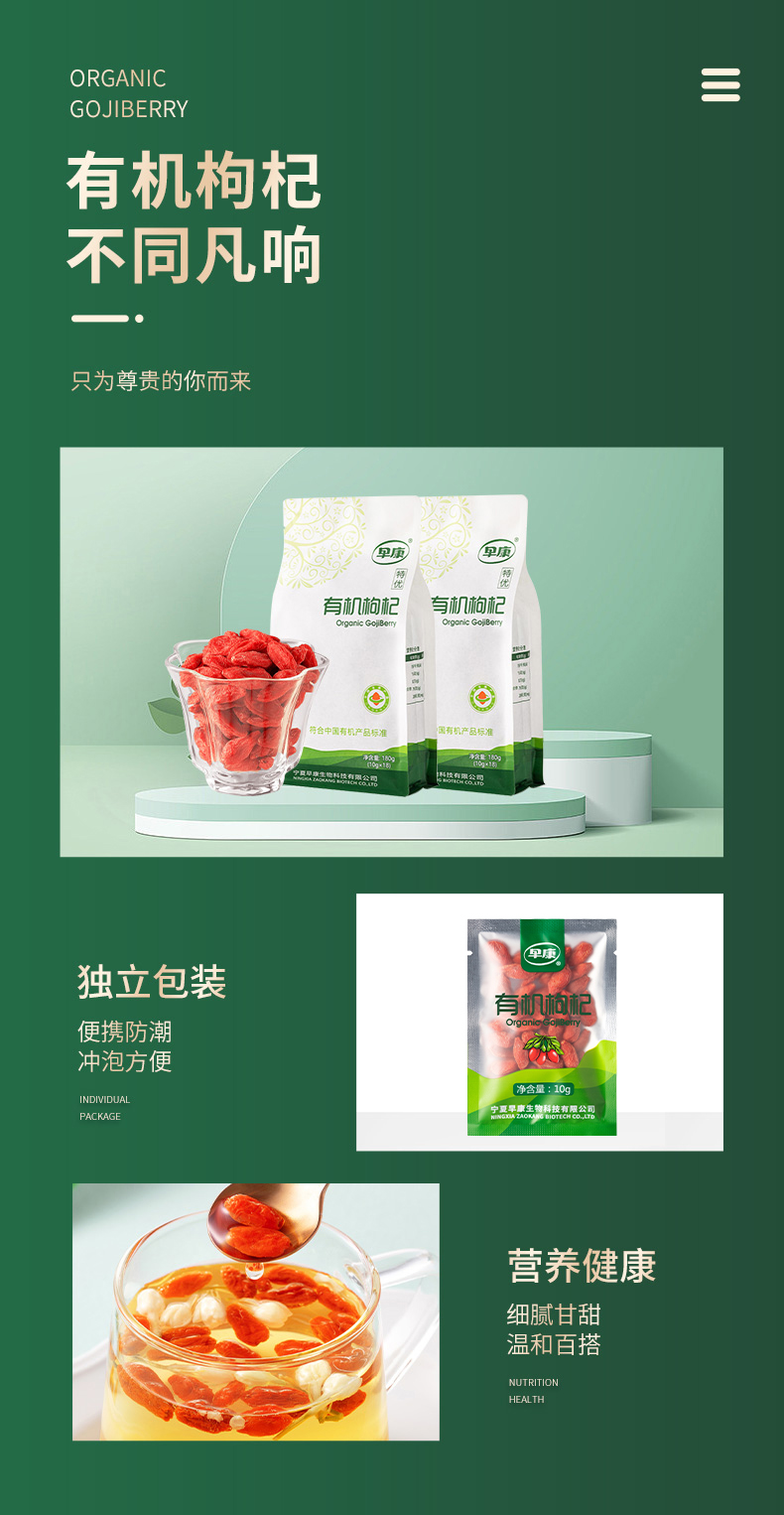 早康®有机特优枸杞180g袋装