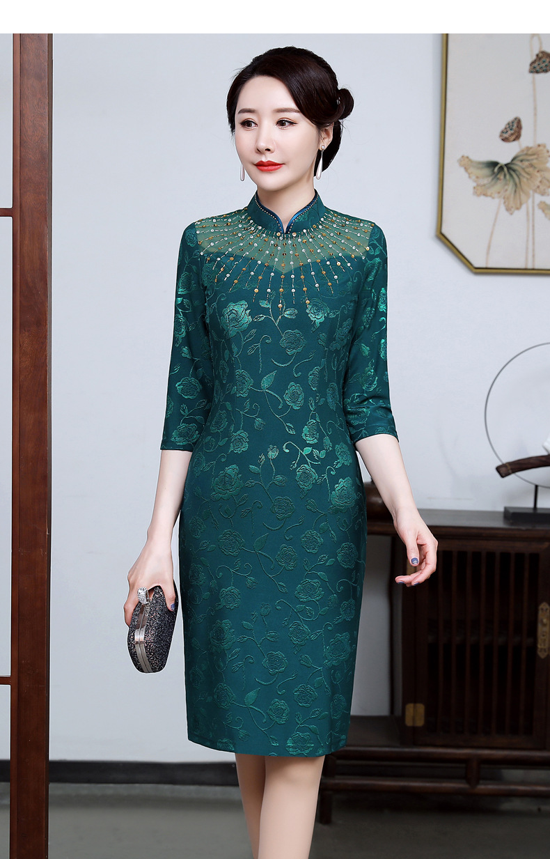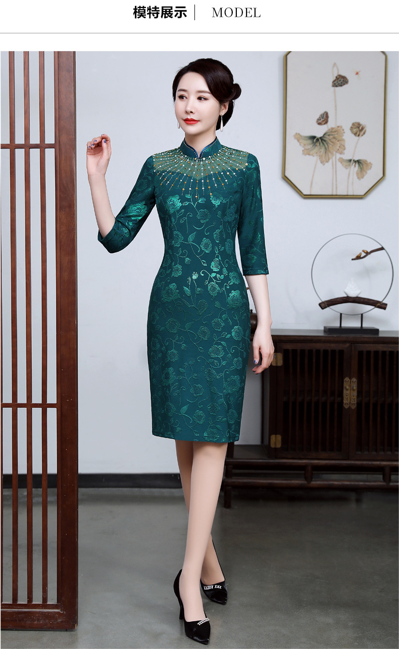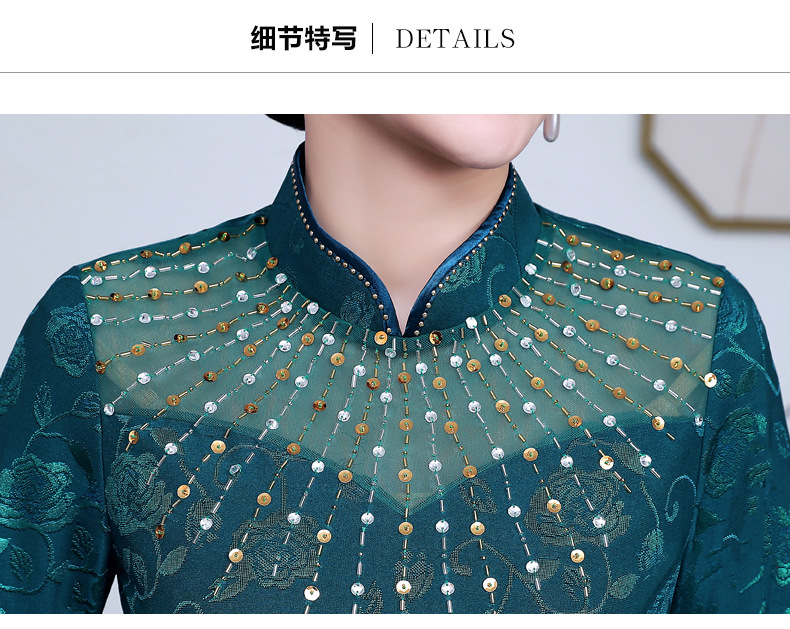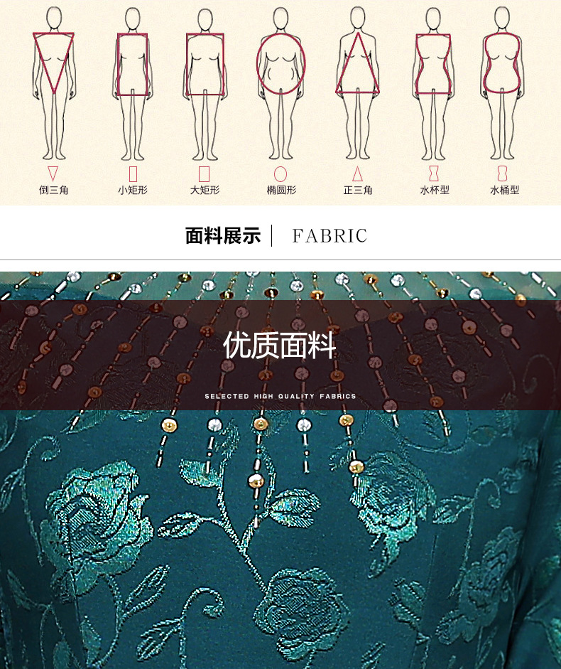 上海旗袍厂JC-JY5033春新款气质修身显瘦气质裙子大码妈妈装婚礼宴会连衣裙