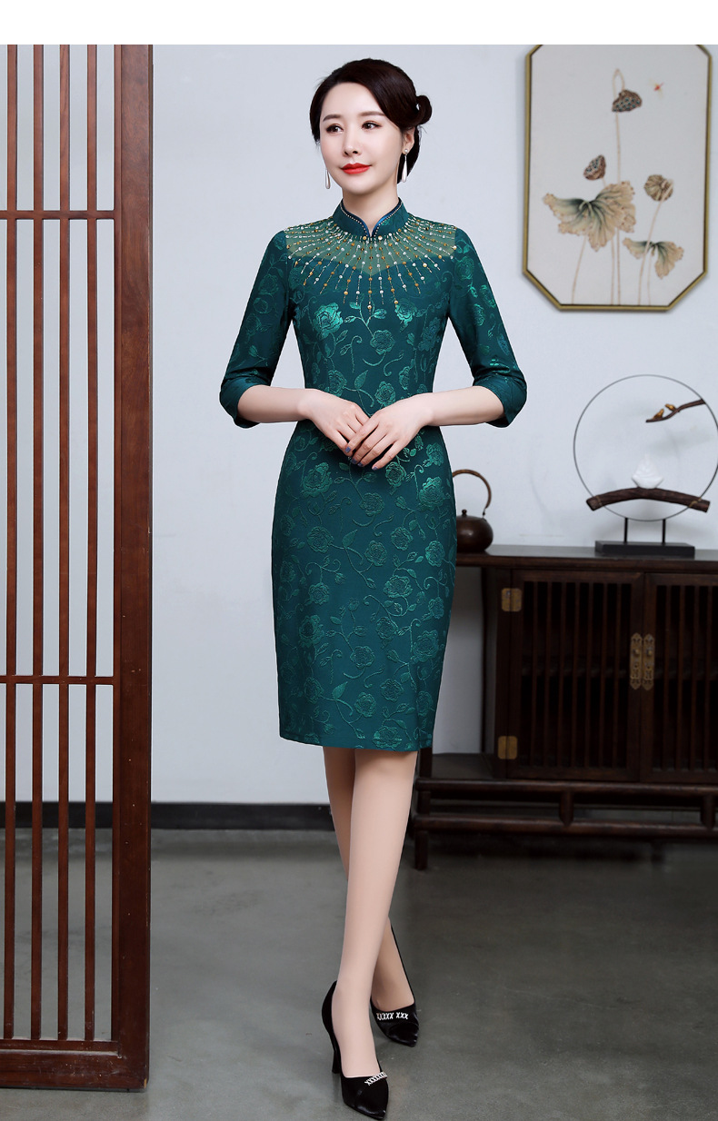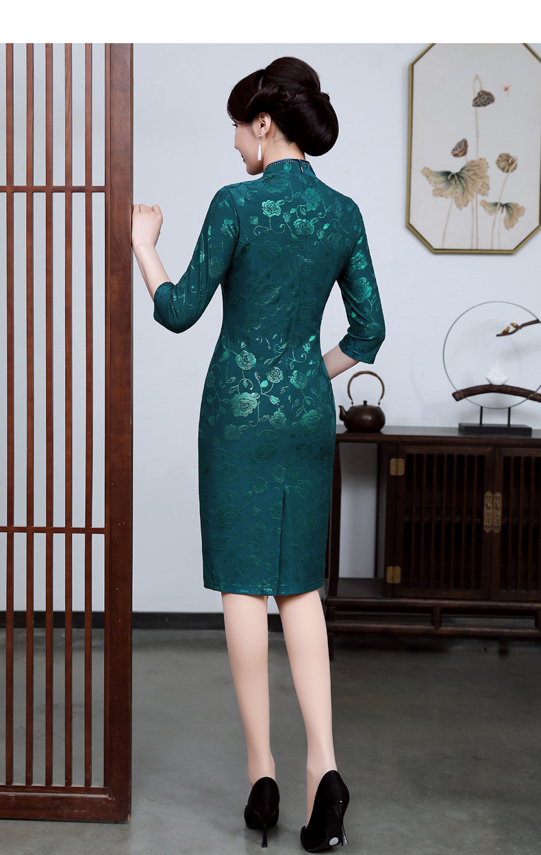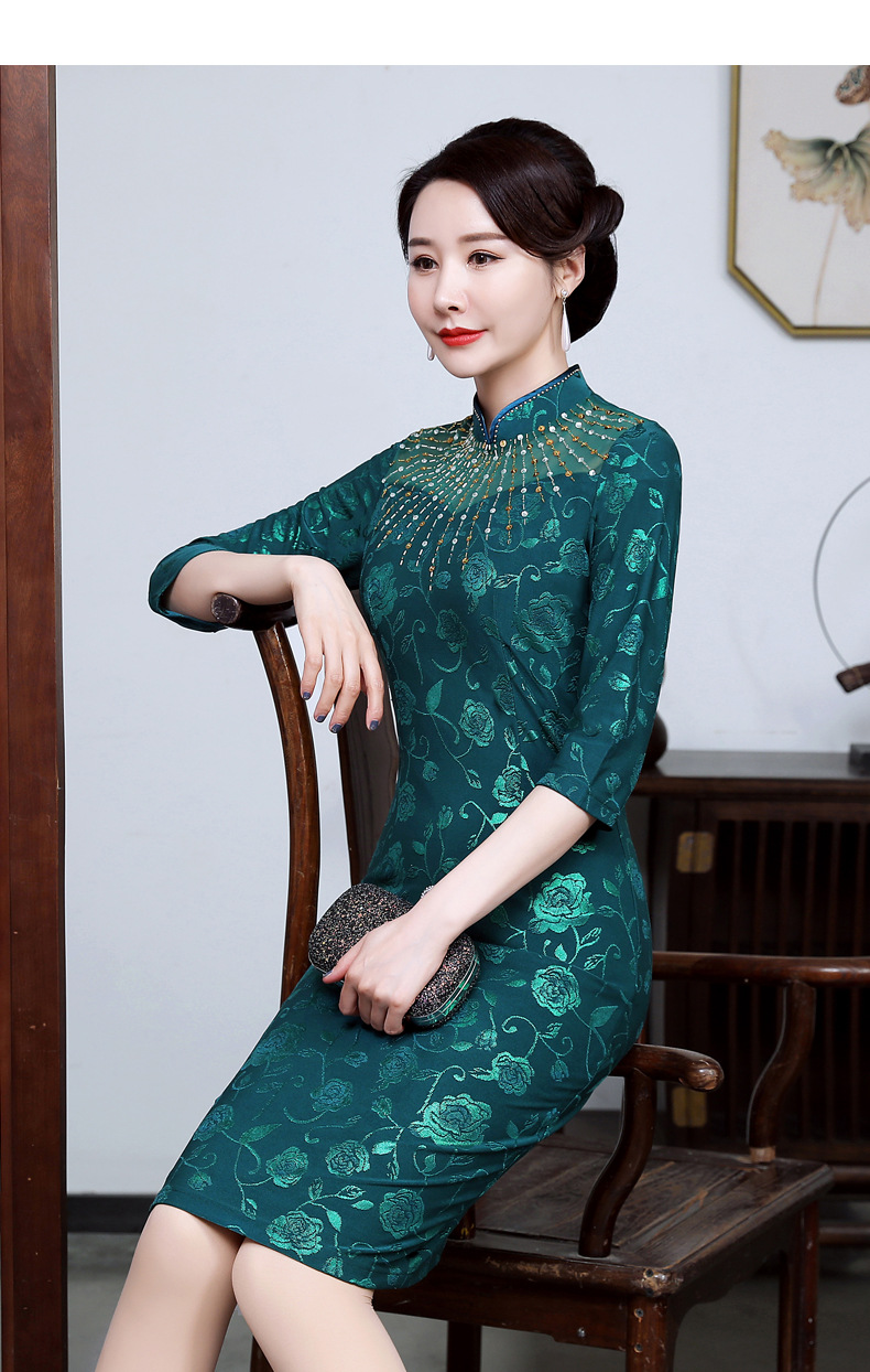 上海旗袍厂JC-JY5033春新款气质修身显瘦气质裙子大码妈妈装婚礼宴会连衣裙
