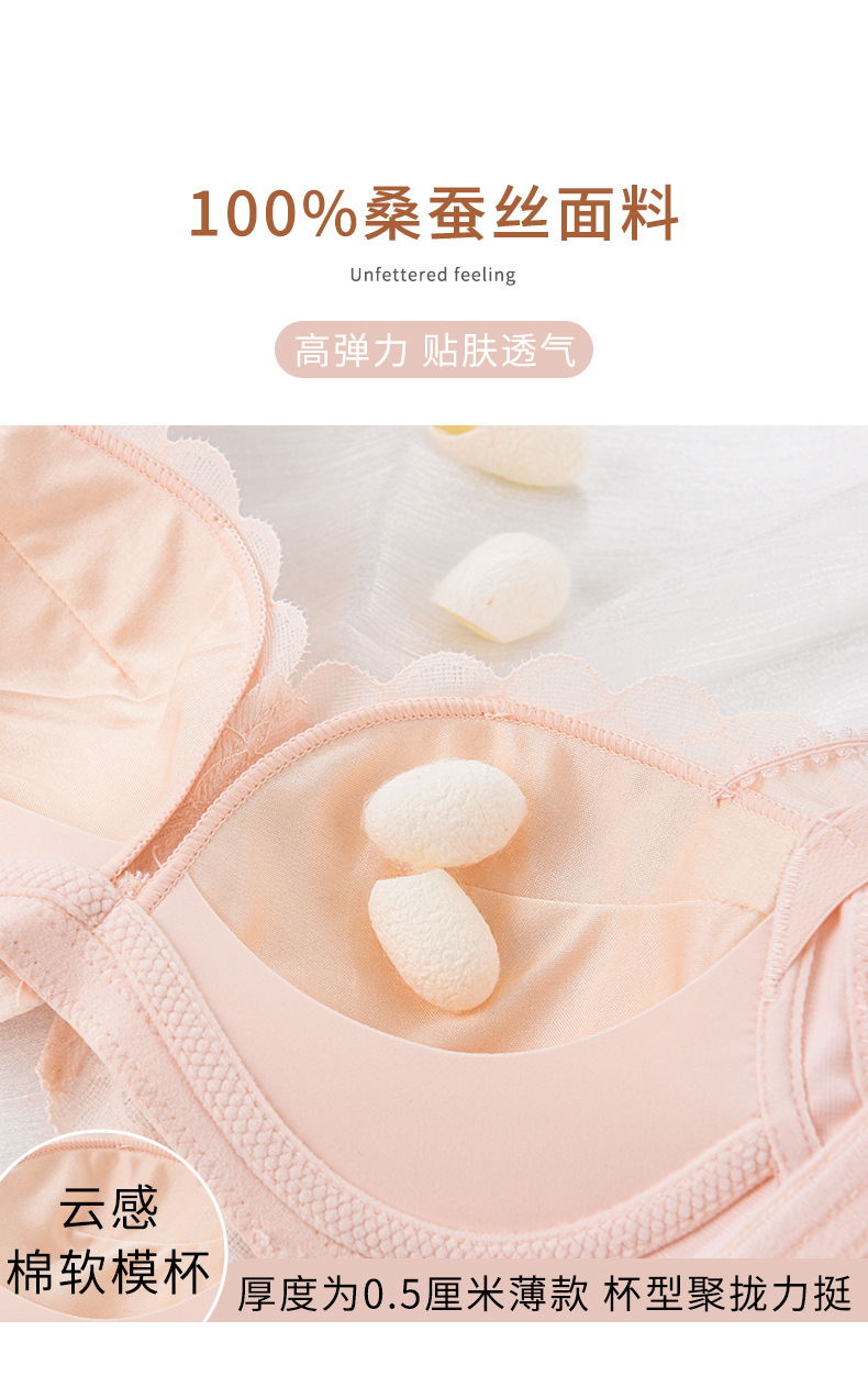 TG-TG02S247薄款真丝云感棉内衣 桑蚕丝性感蕾丝上薄下厚无钢圈聚拢文胸