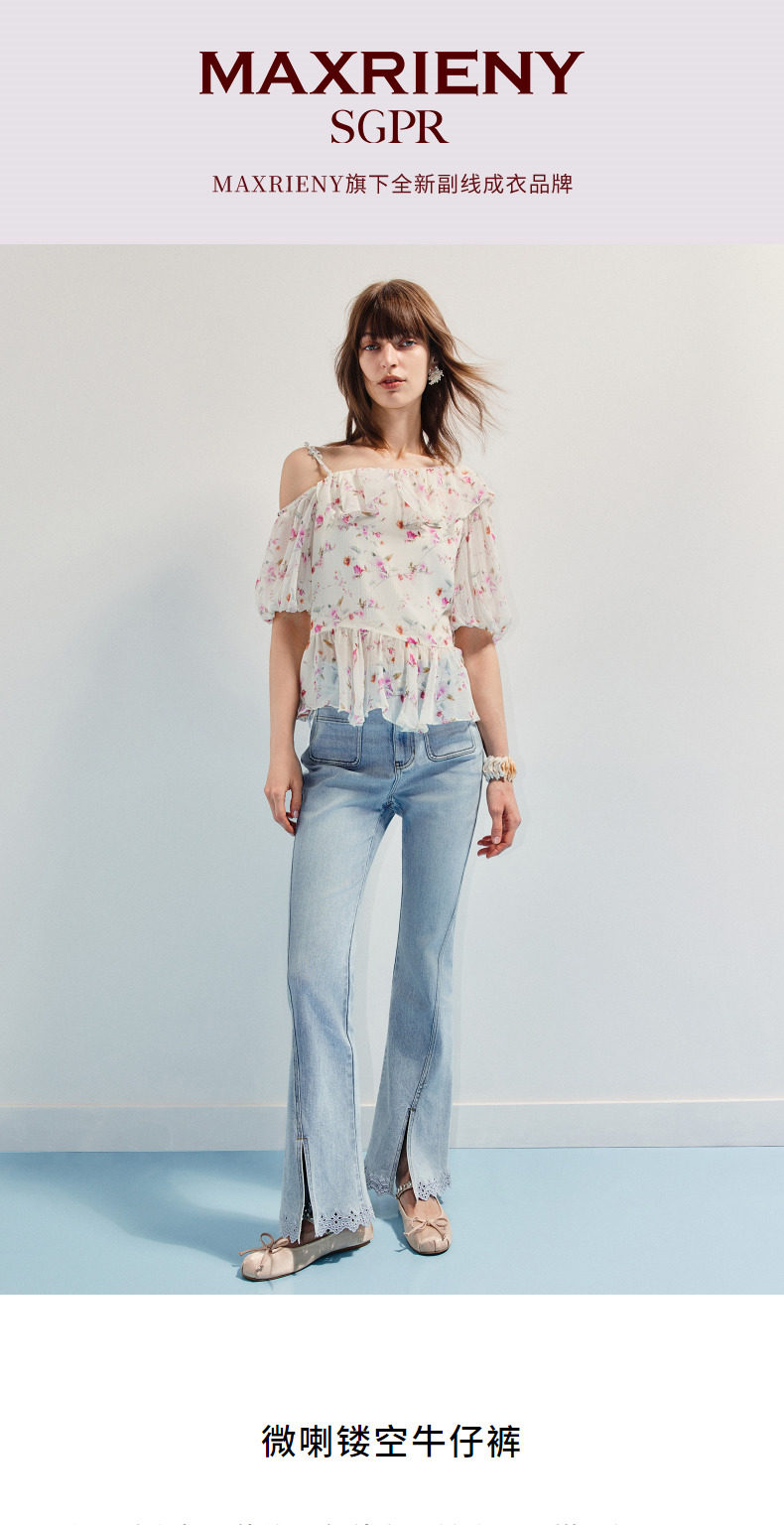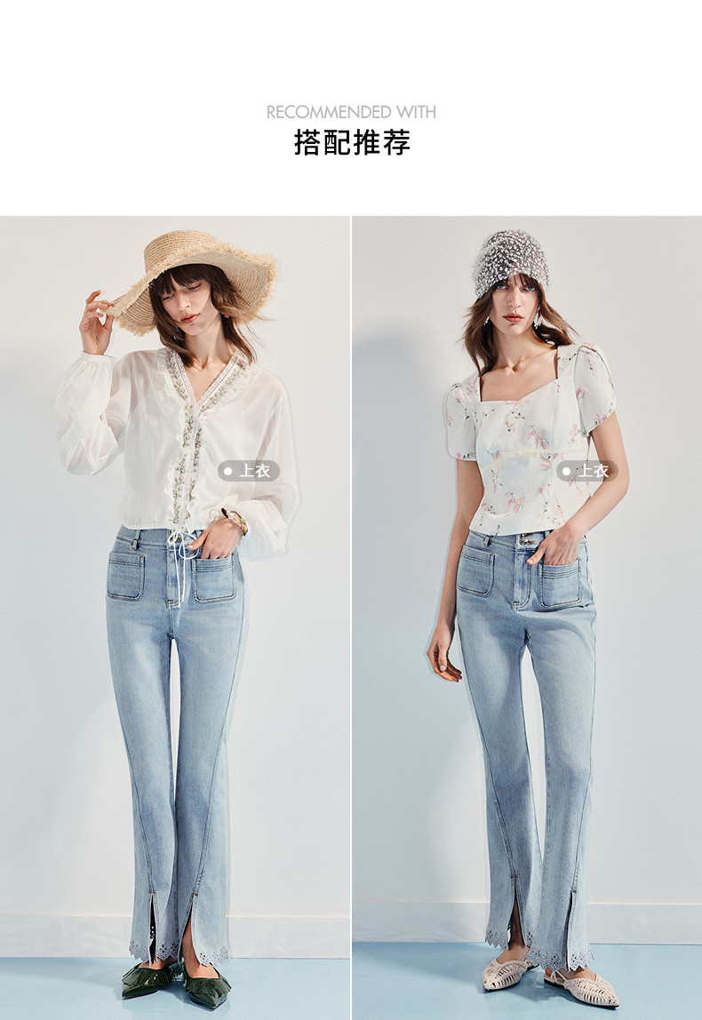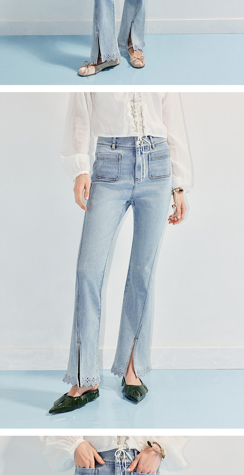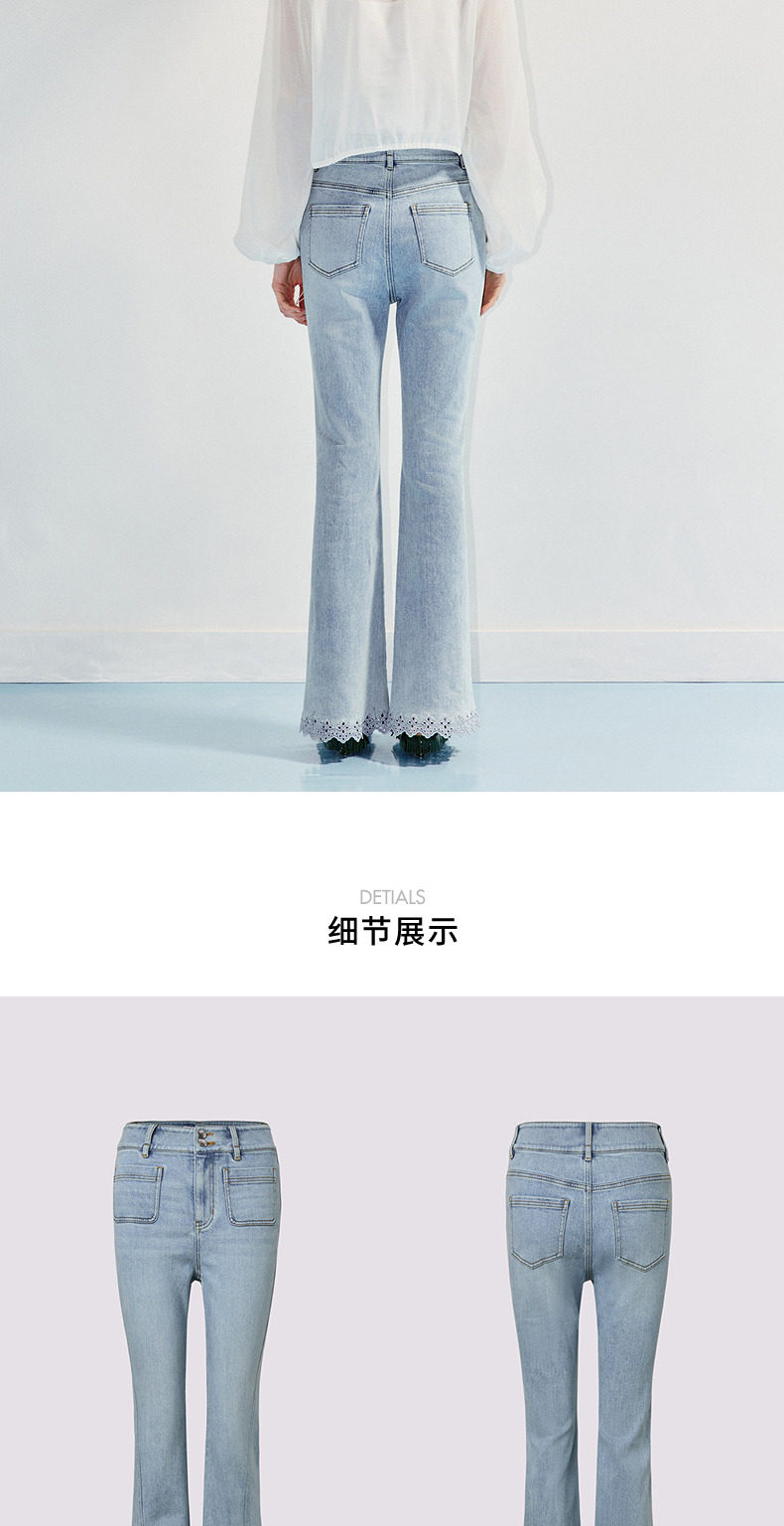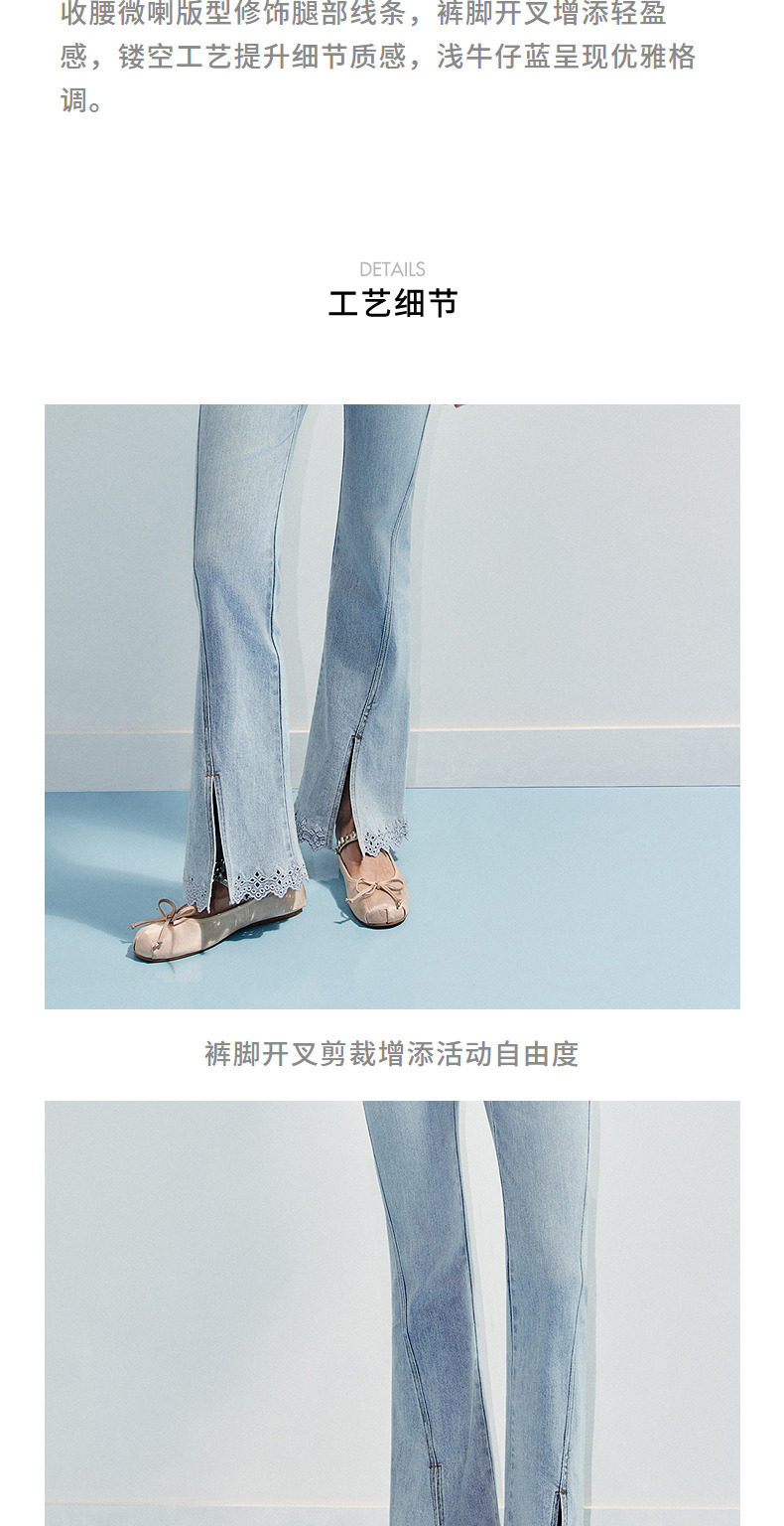 【SGPR】浅牛仔蓝长裤女25夏水洗收腰微喇镂空牛仔裤(货号:MU86TR251)