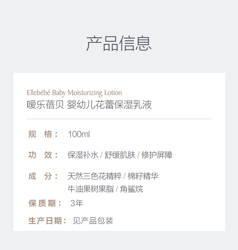 Ellebebe嗳乐蓓贝 婴幼儿花蕾保湿乳液润肤保湿补水宝宝全身100ml
