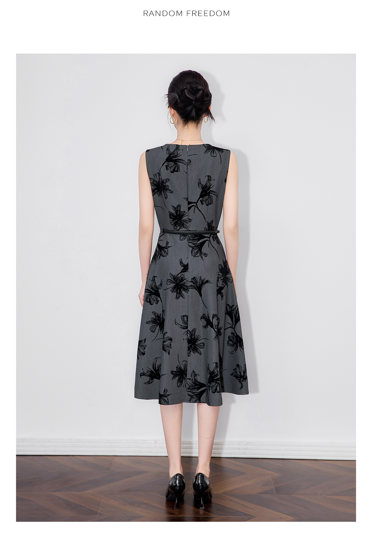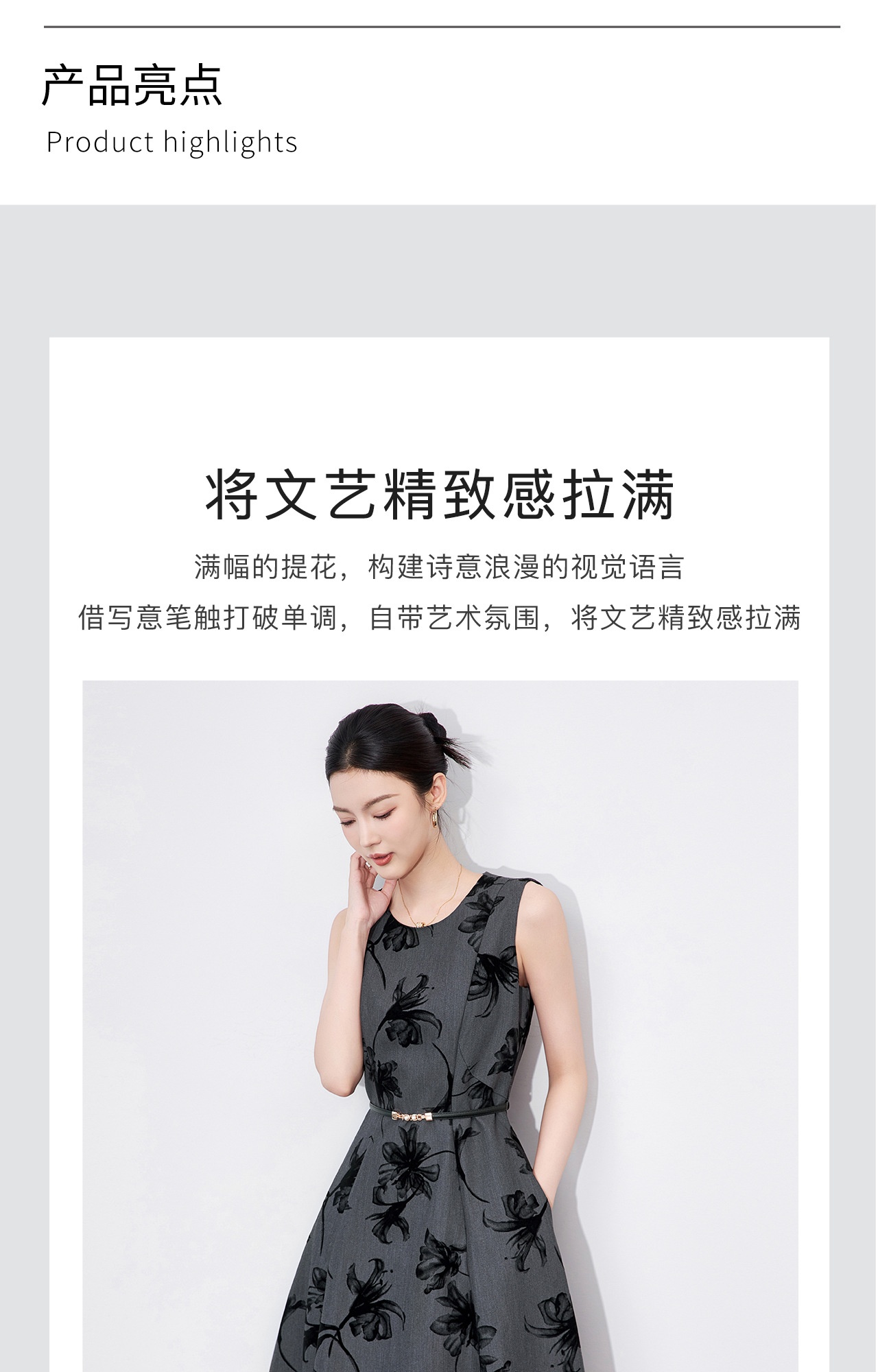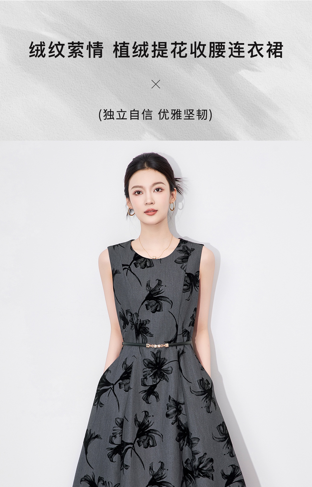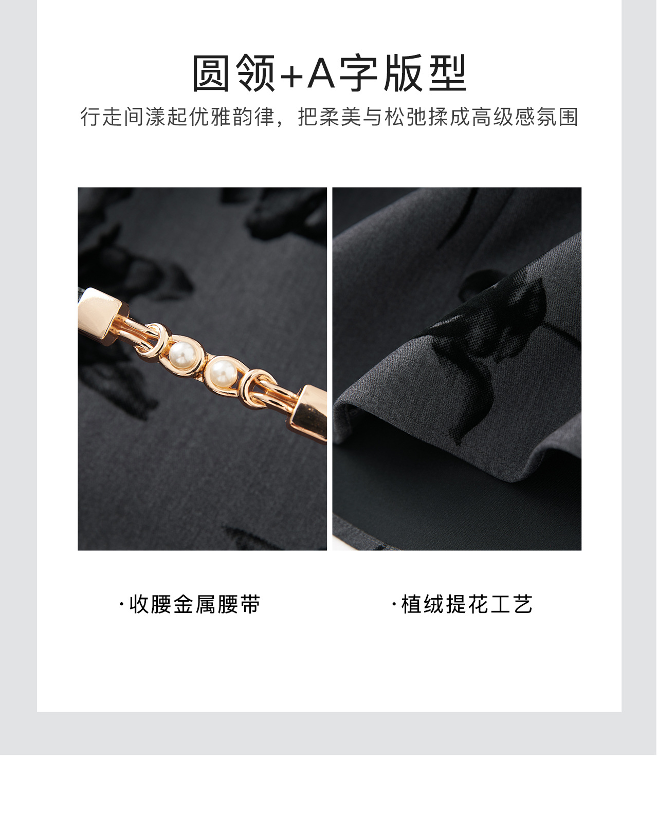「高货wl」全新升级【铂金会员358/天猫479/差价121】(43528)洛诗琳轻奢重工植绒印花连衣裙2025秋季通勤收腰大摆裙女
