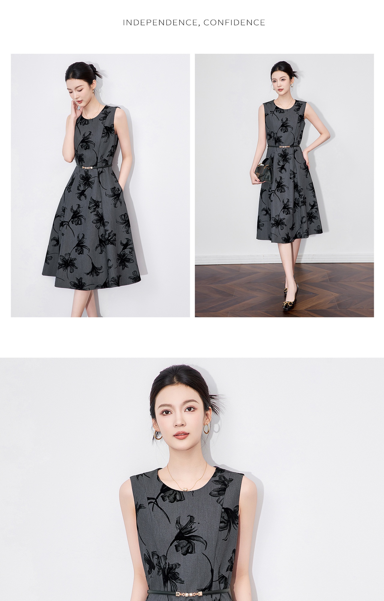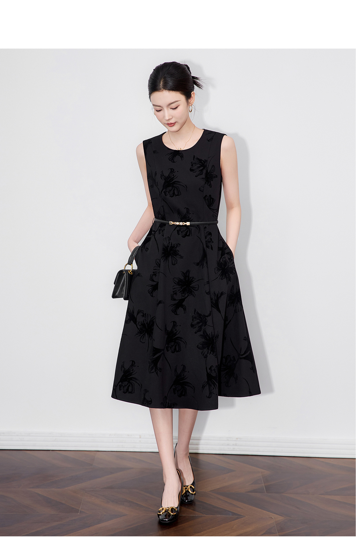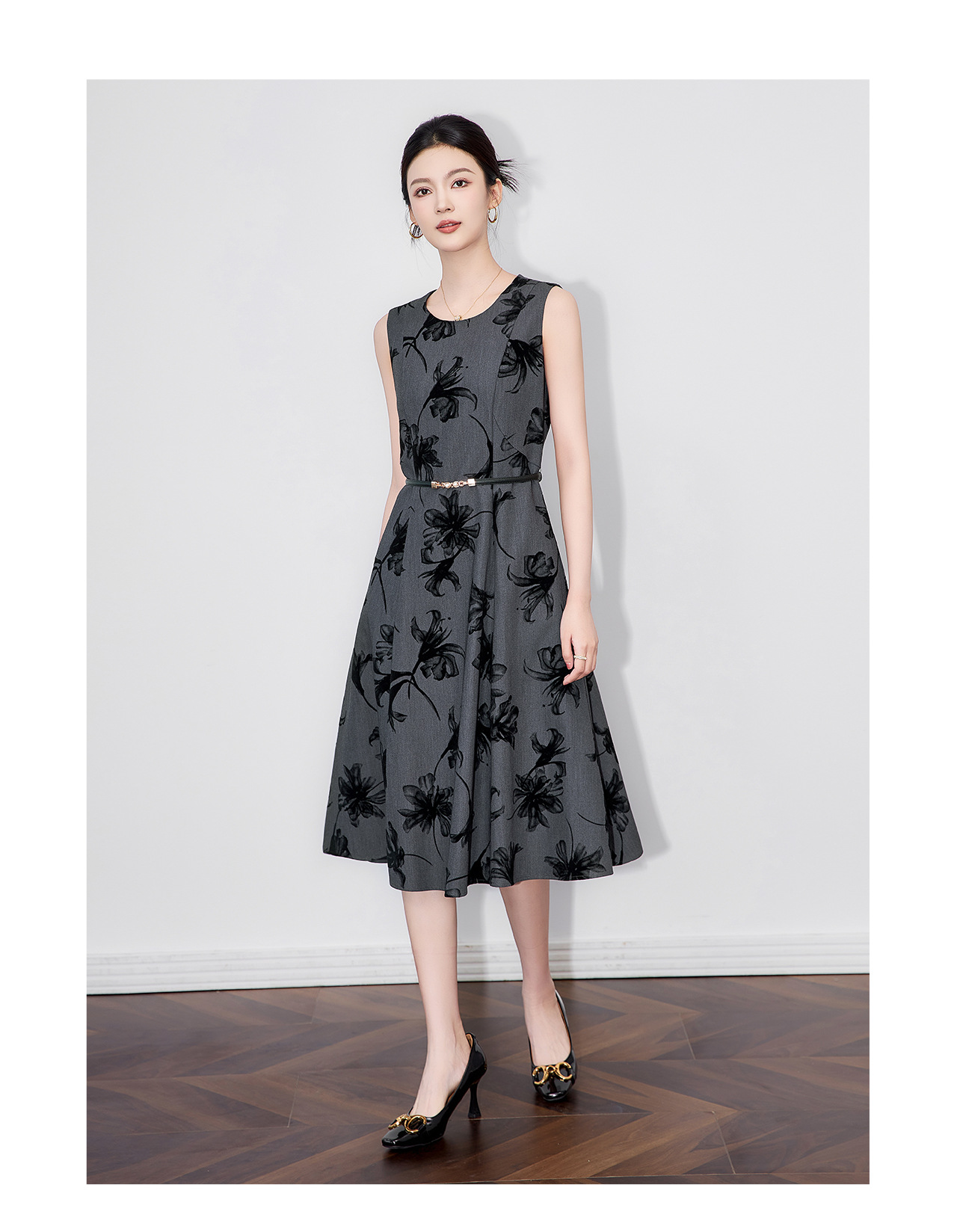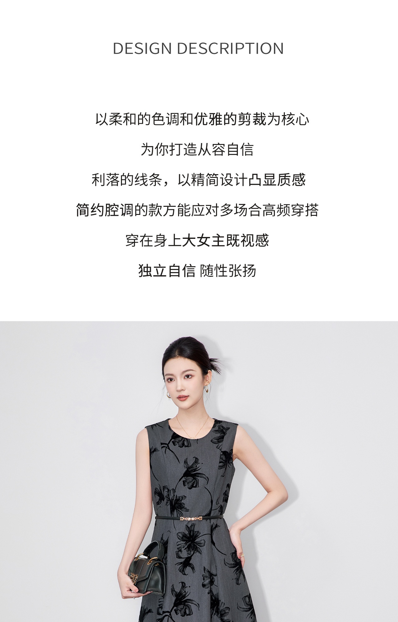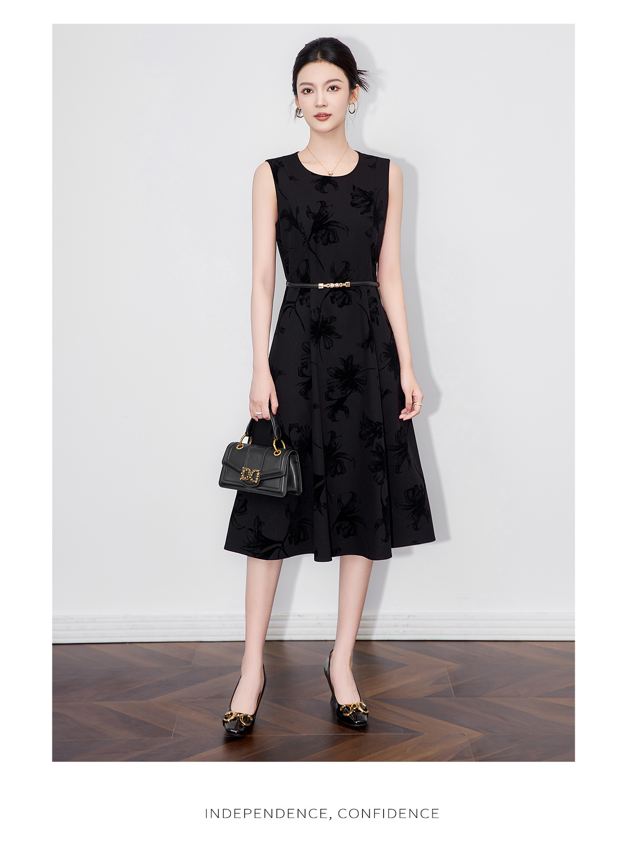 「高货wl」全新升级【铂金会员358/天猫479/差价121】(43528)洛诗琳轻奢重工植绒印花连衣裙2025秋季通勤收腰大摆裙女