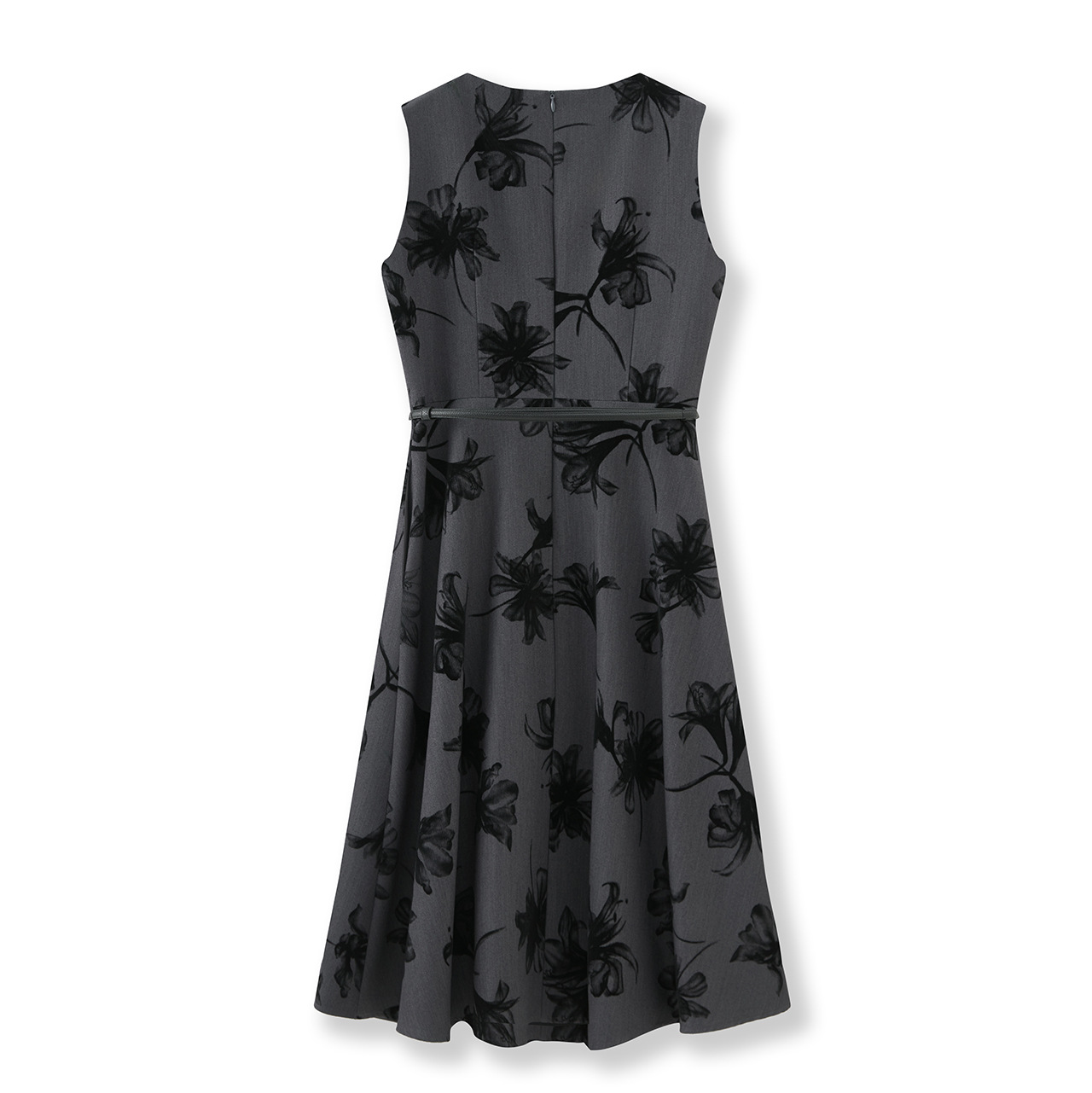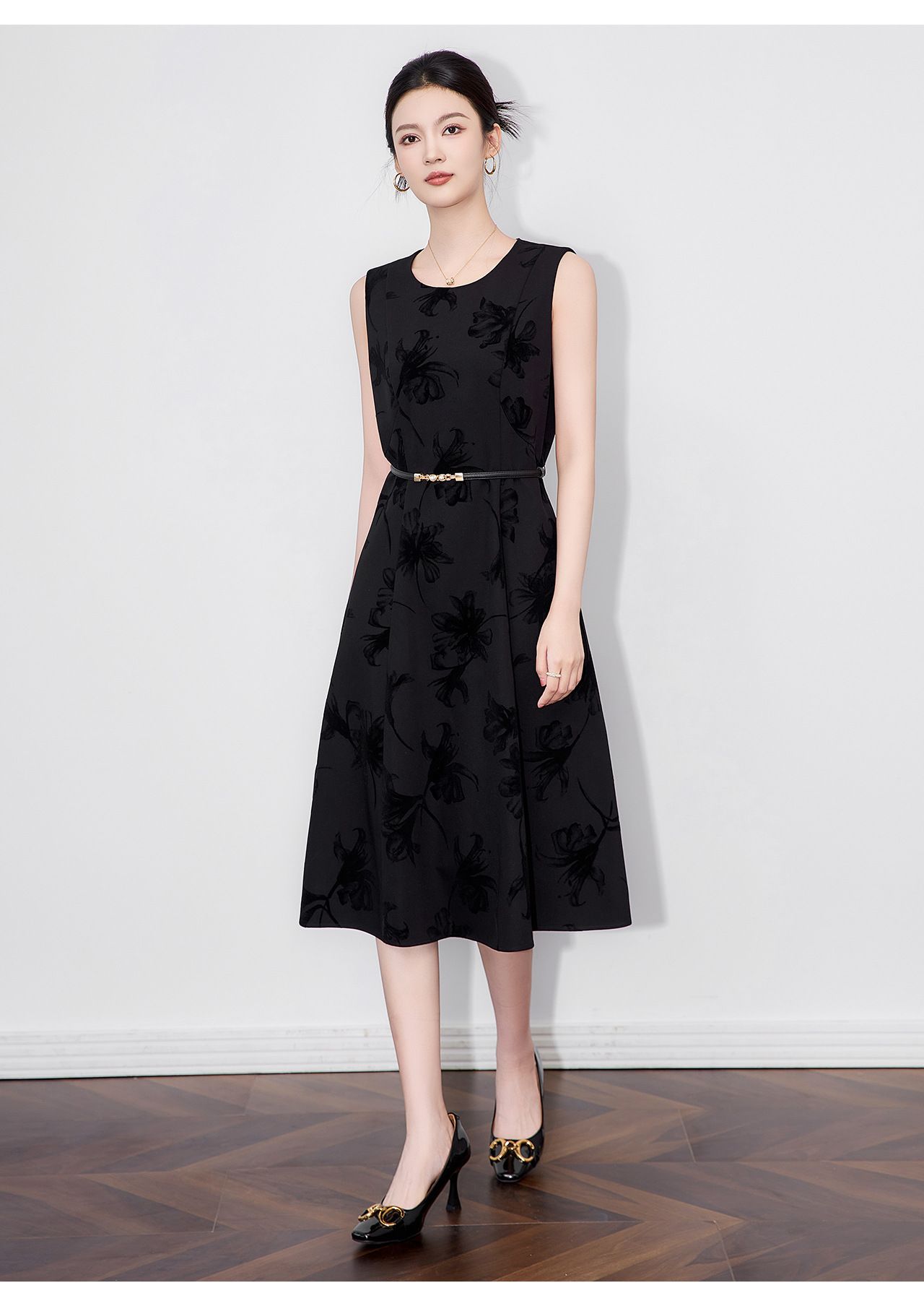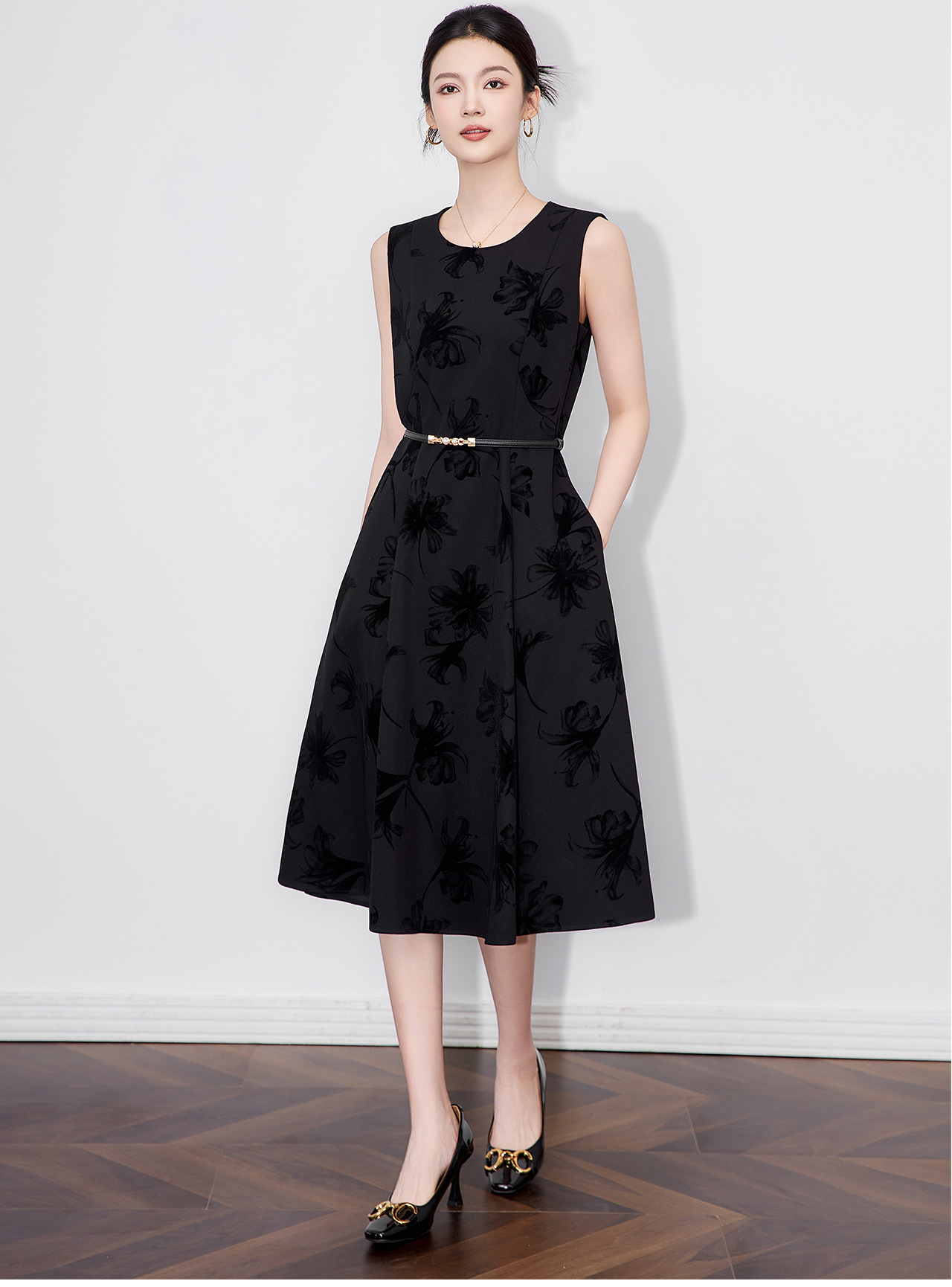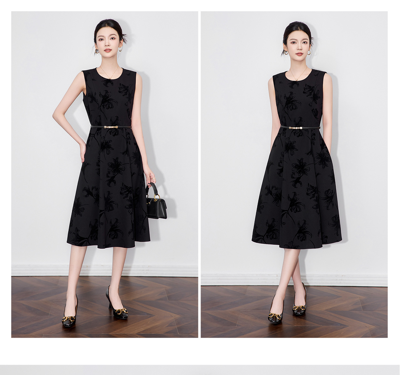 「高货wl」全新升级【铂金会员358/天猫479/差价121】(43528)洛诗琳轻奢重工植绒印花连衣裙2025秋季通勤收腰大摆裙女