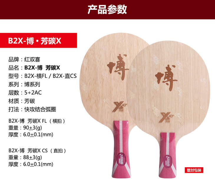 红双喜狂飙博升级版博芳碳X B2X 大芯加厚版博芳碳