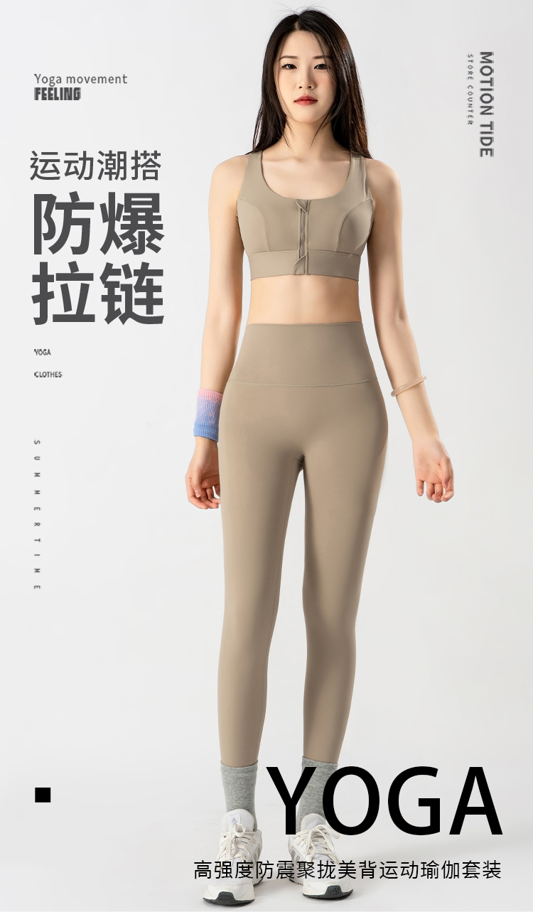 跃牌【蚂蚁运动】系列 一体式运动前拉链工字背心高腰提臀瑜伽裤女瑜伽套装X1347+K3338