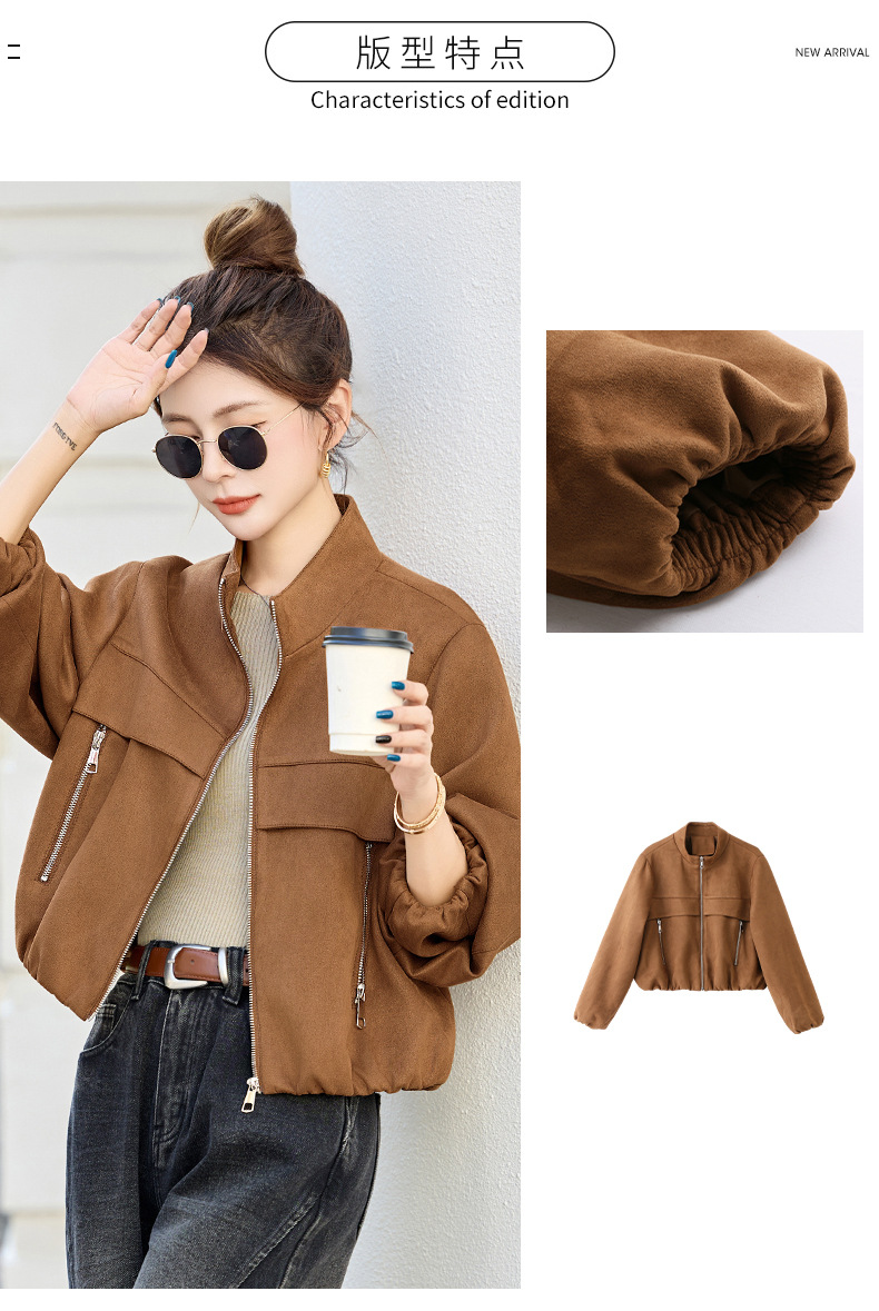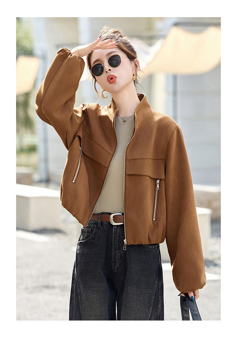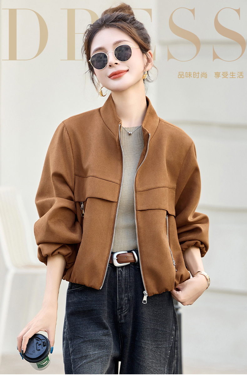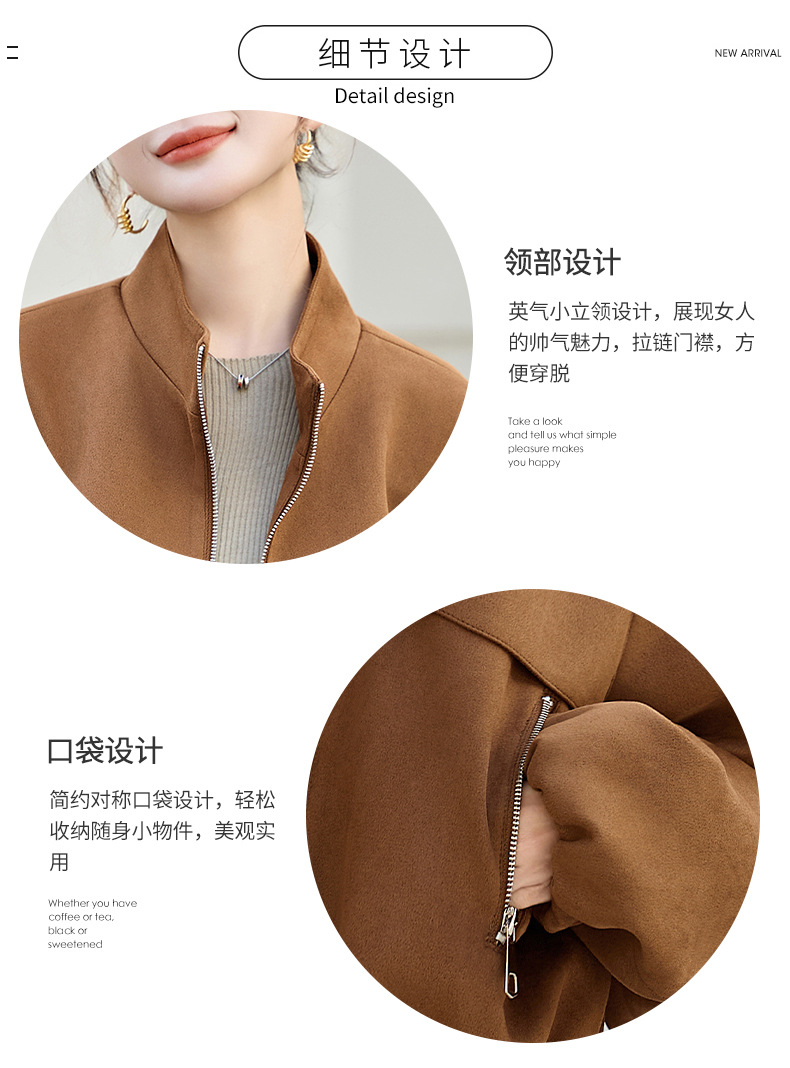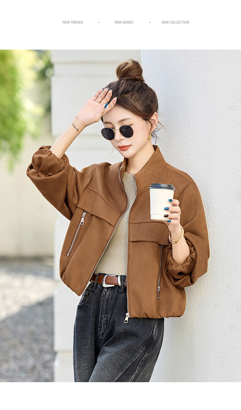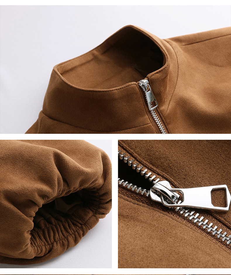 立领麂皮绒外套,复古宽松休闲百搭夹克上衣HR-7702