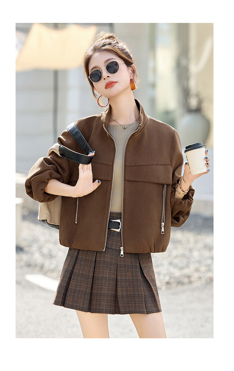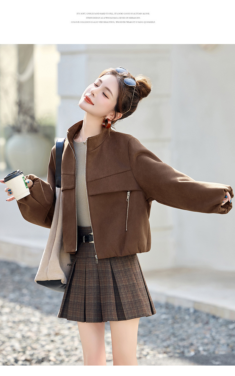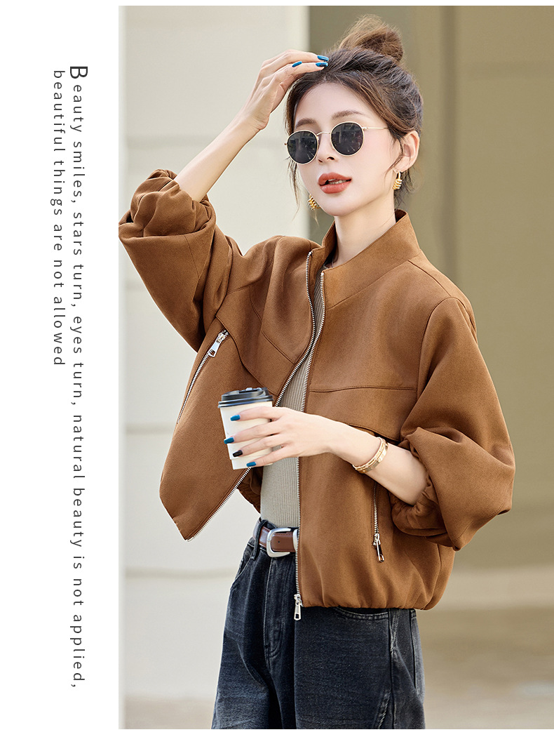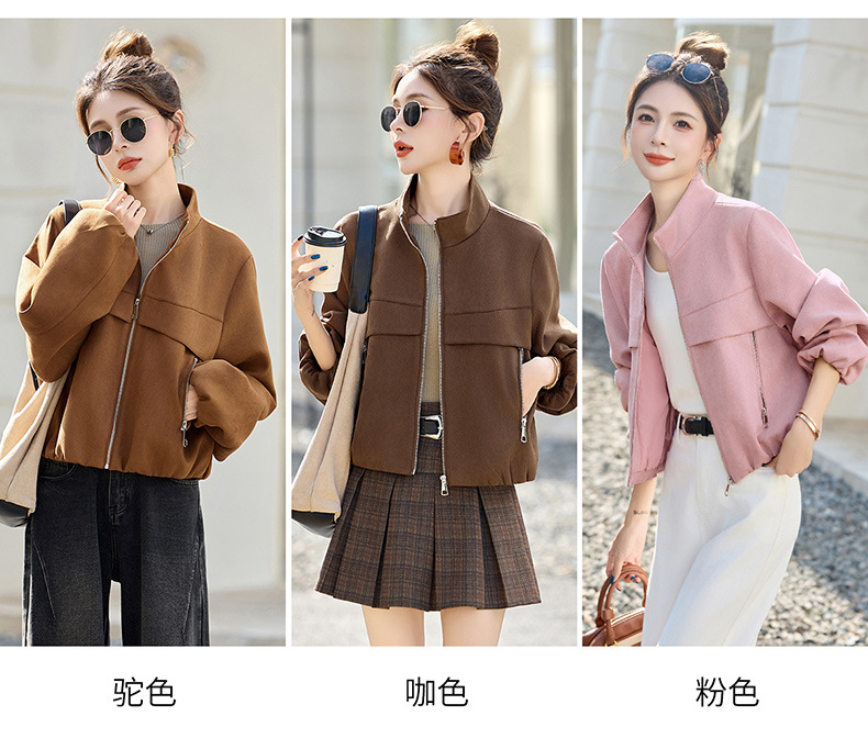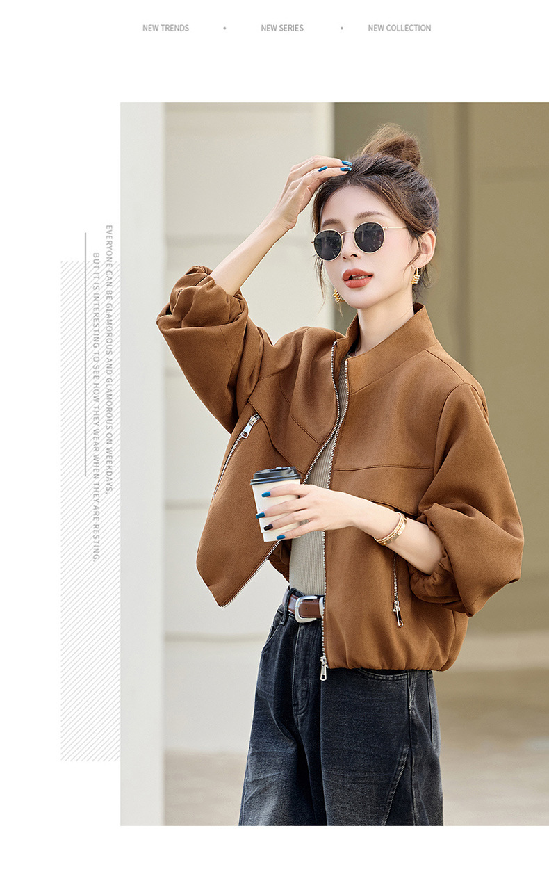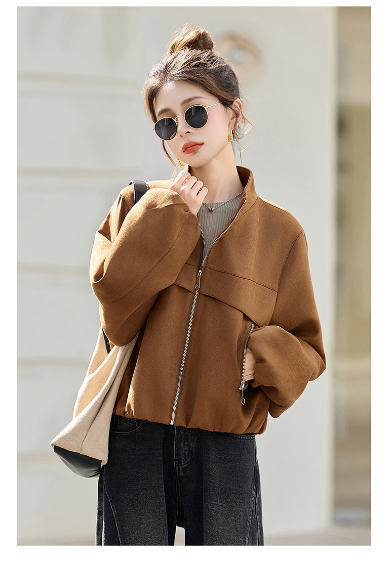 立领麂皮绒外套,复古宽松休闲百搭夹克上衣HR-7702