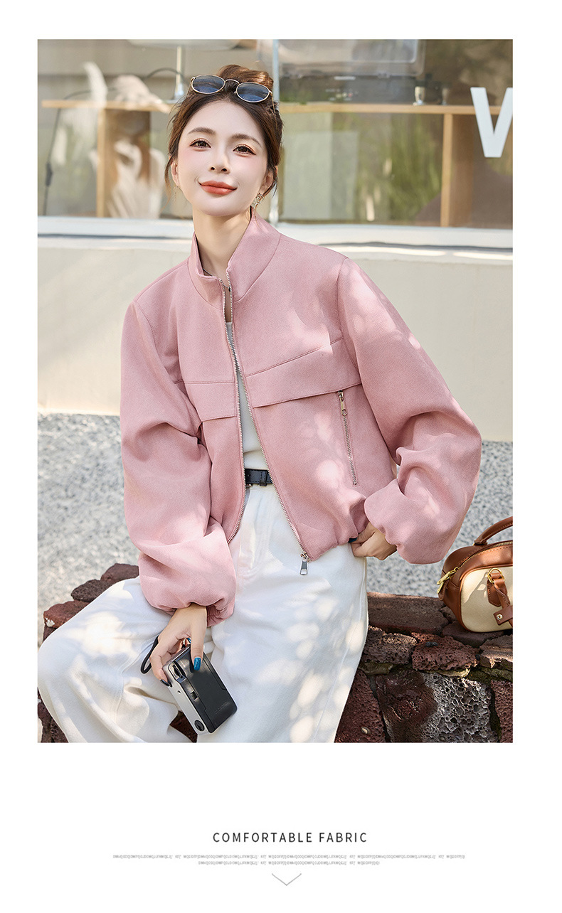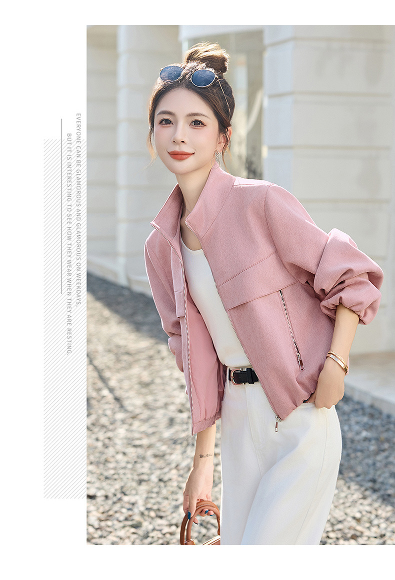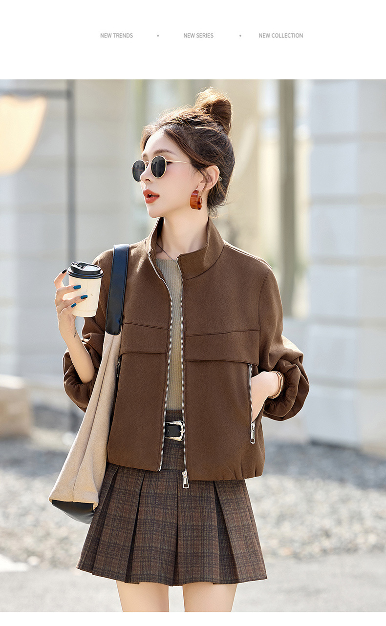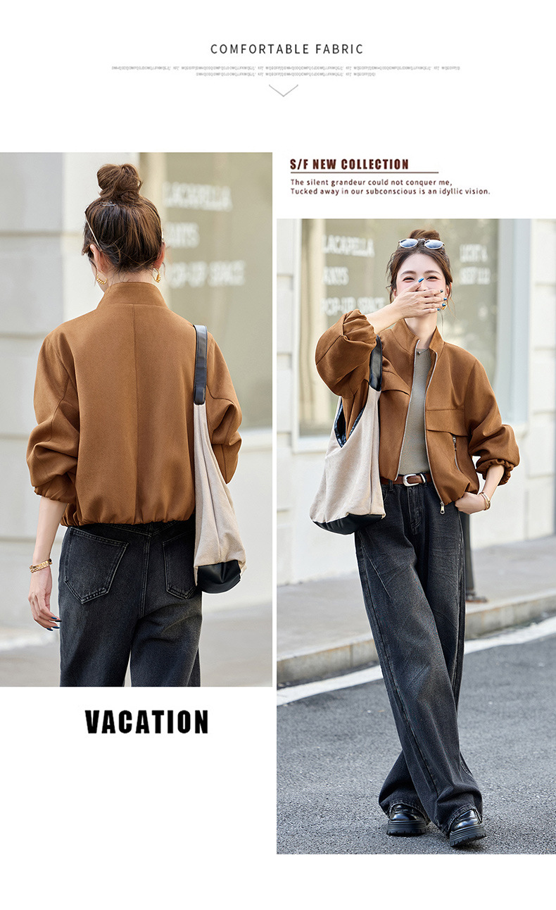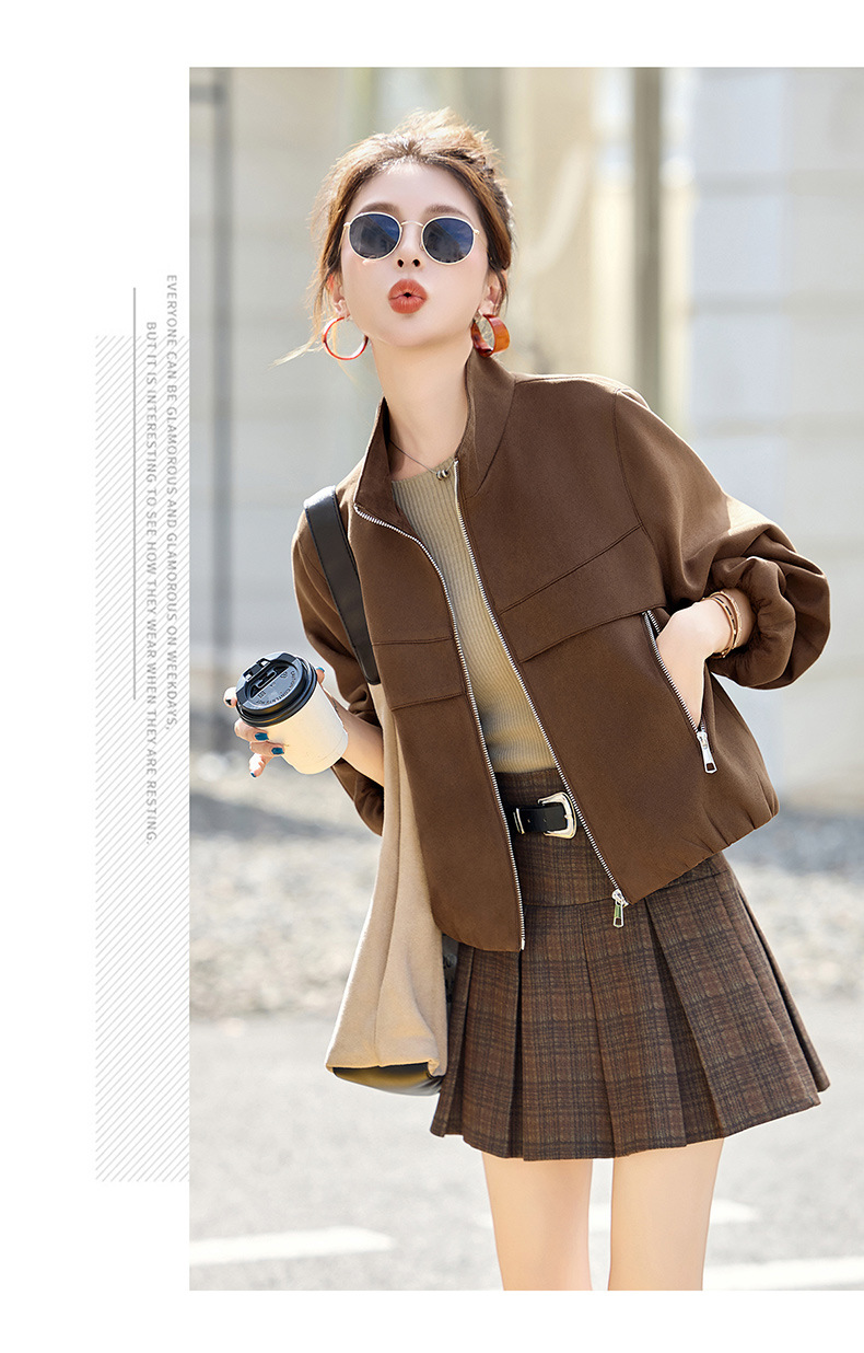 立领麂皮绒外套,复古宽松休闲百搭夹克上衣HR-7702