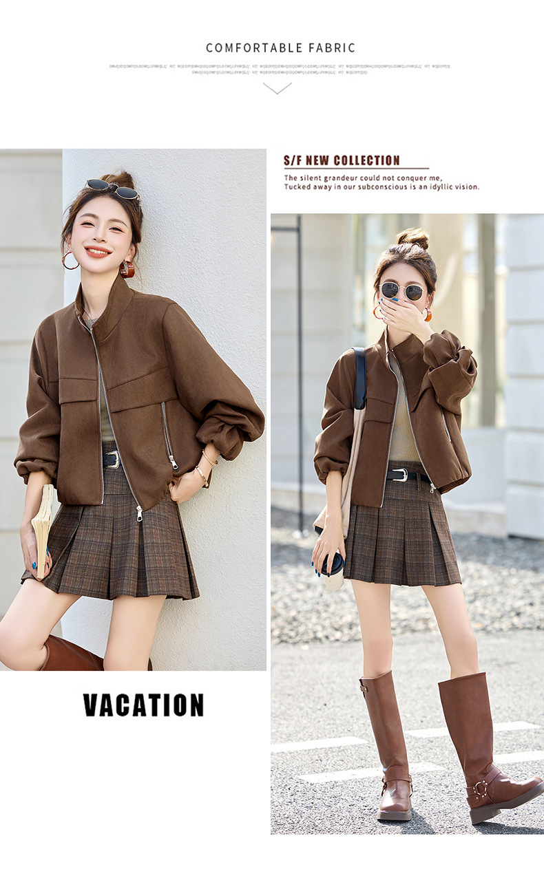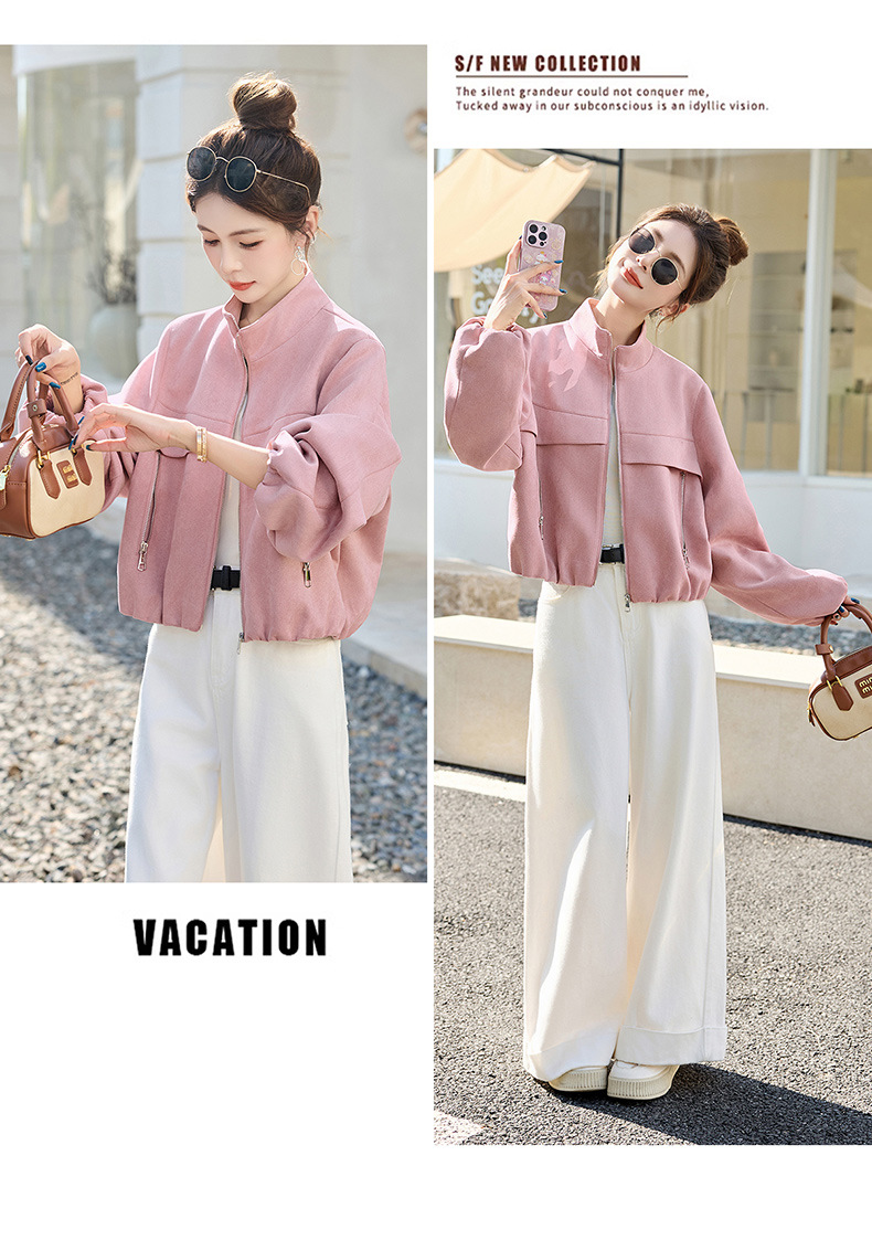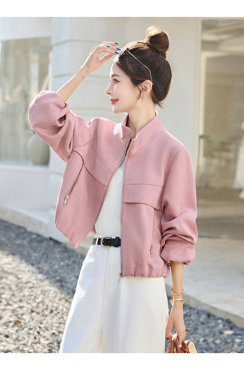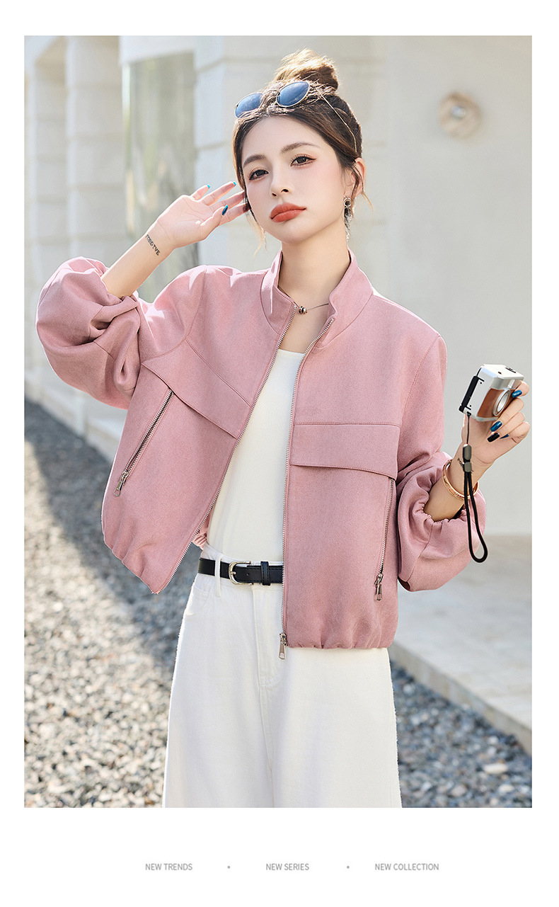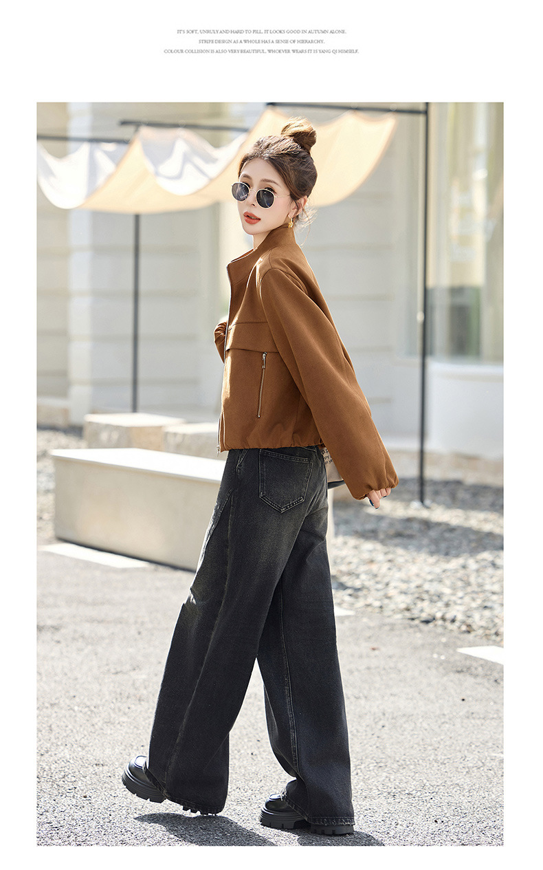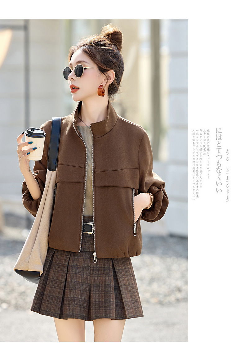 立领麂皮绒外套,复古宽松休闲百搭夹克上衣HR-7702