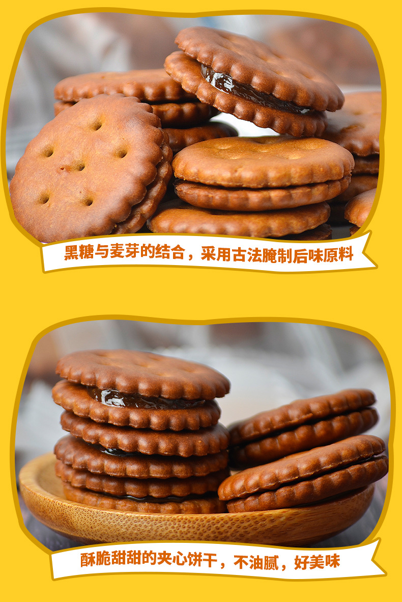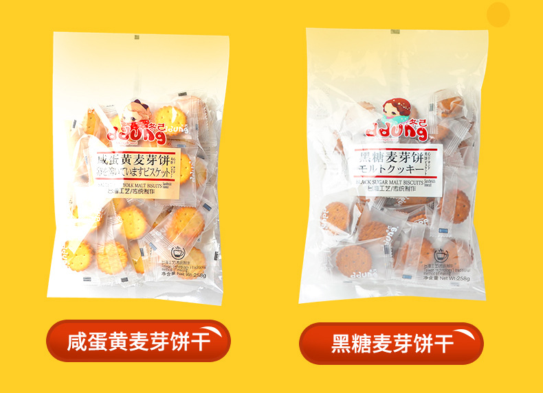 冬己饼干黑糖咸蛋黄麦芽饼258g休闲食品零食夹心饼干小圆饼