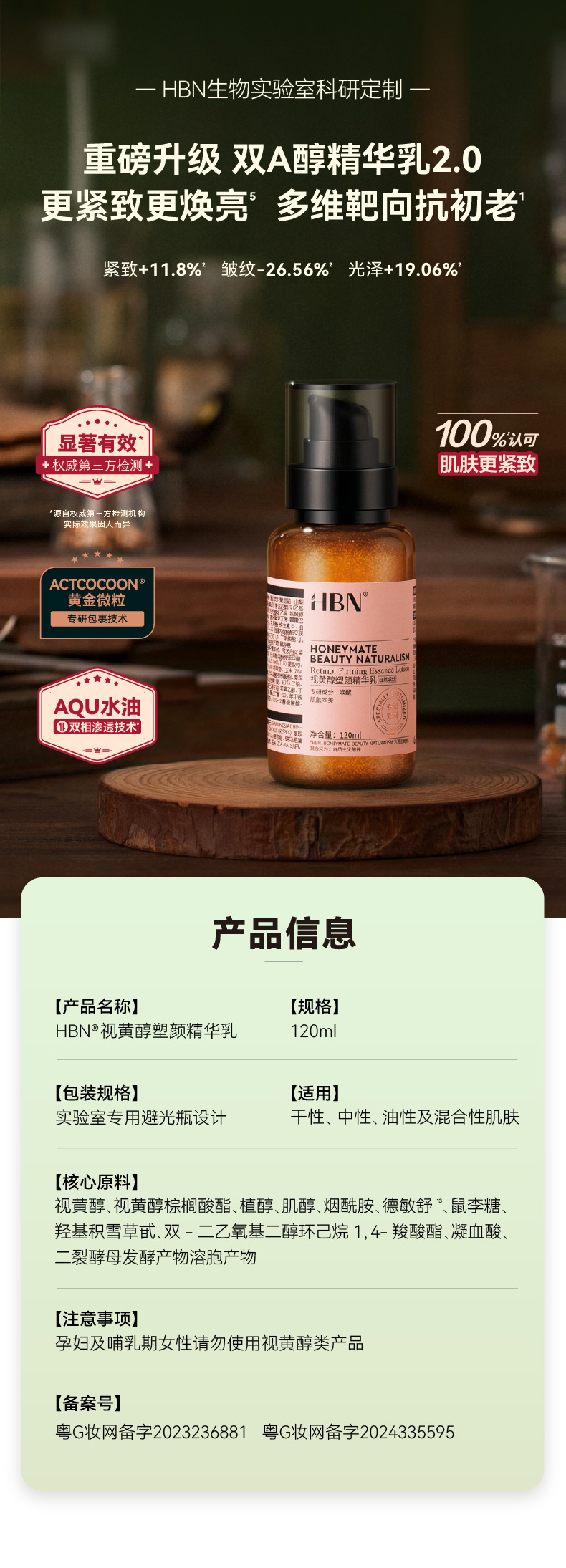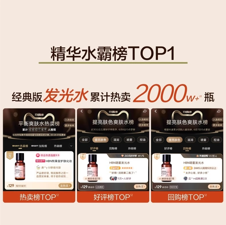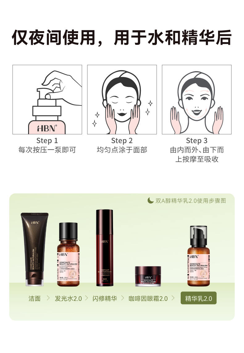 HBN熊果苷精粹水发光水+视黄醇精华乳+视黄醇面霜