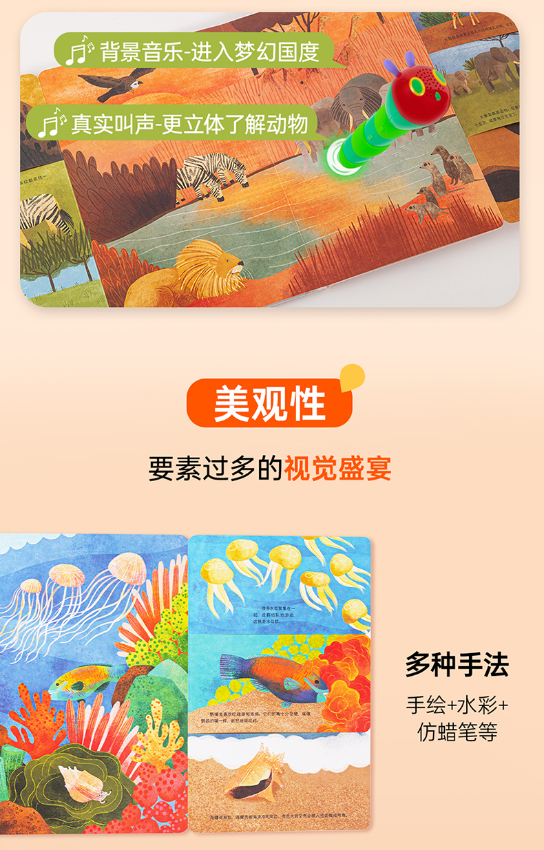 #小彼恩童书 毛毛虫点读版唱古诗120首经典古诗词幼儿早教启蒙中文点读绘本2册