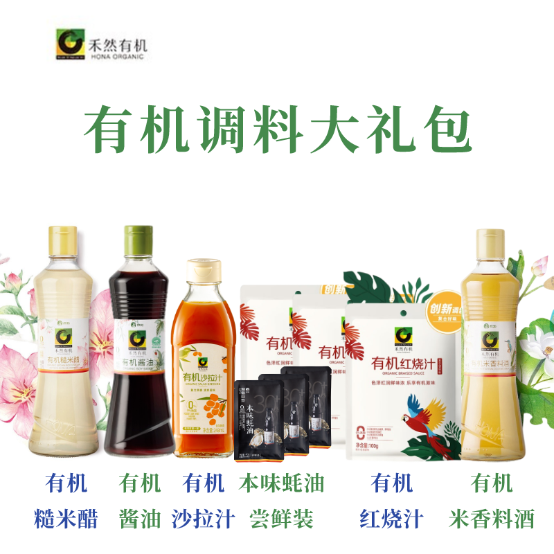 杞冠严选 | 禾然有机调料大礼包 有机酱油、糙米醋、米香料酒、沙拉汁、红烧汁、本味蚝油尝鲜