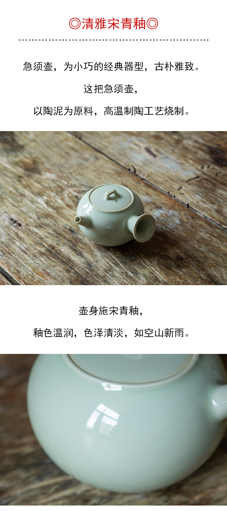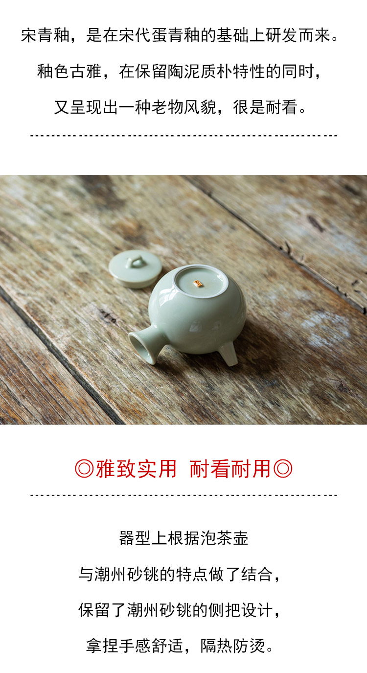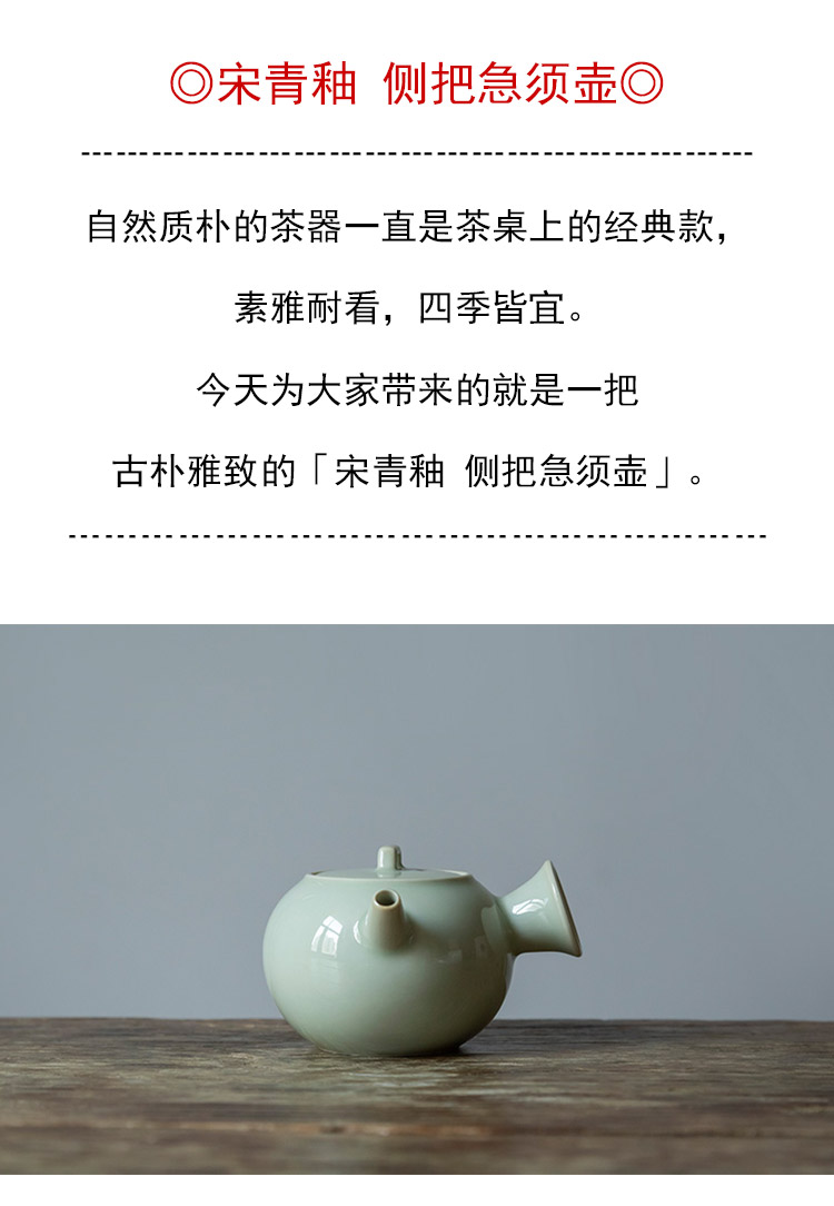 茶香记 宋青釉侧把急须壶180ml宋韵清雅陶瓷泡茶壶主泡器功夫茶具