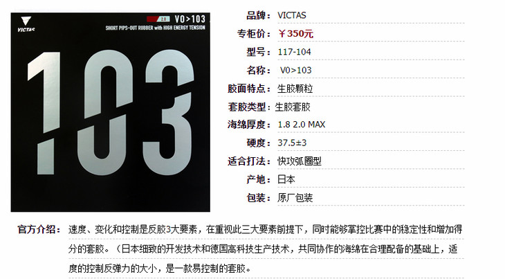 商品名称:维克塔斯VICTAS 生胶套胶 V0>103 020242 控制兼具杀伤力!
