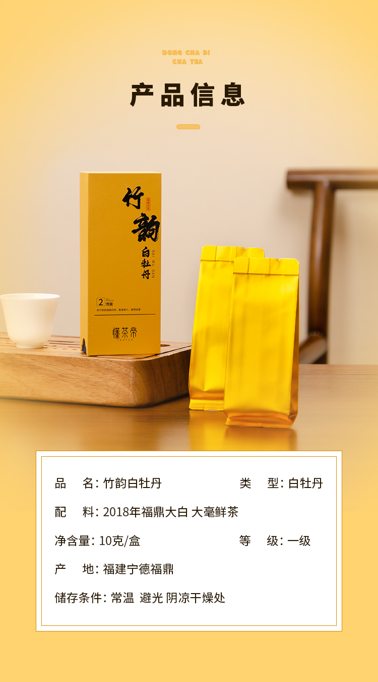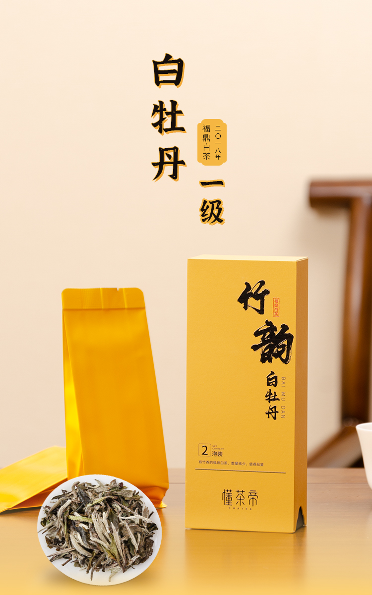 福鼎白茶一级白牡丹2018年竹韵牡丹10克2泡装散茶