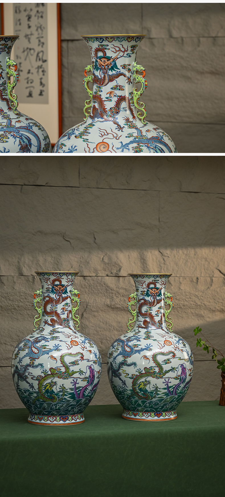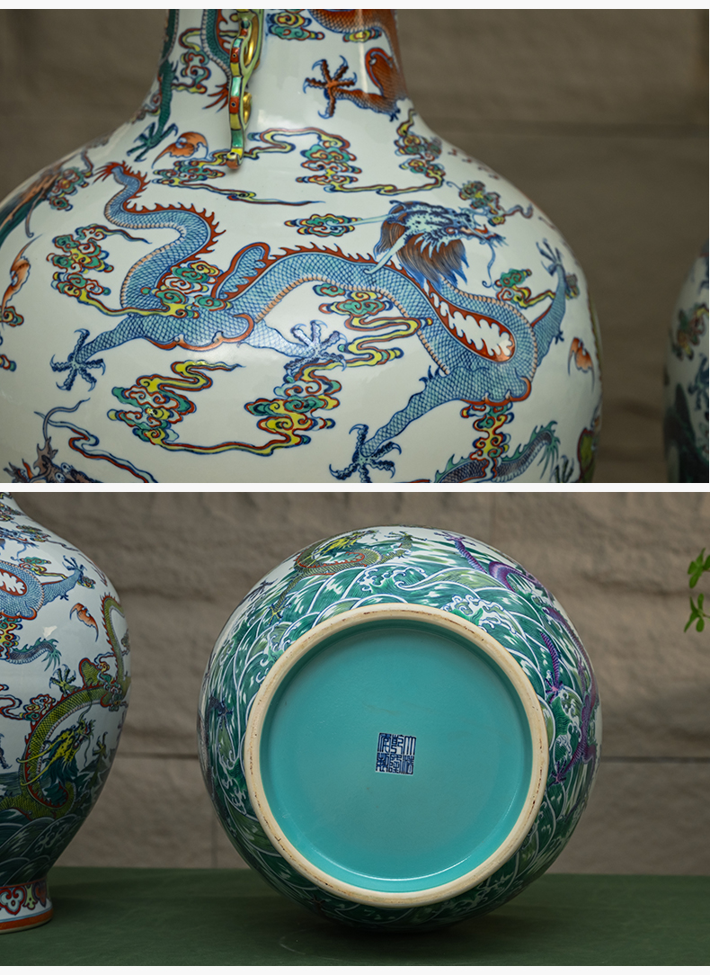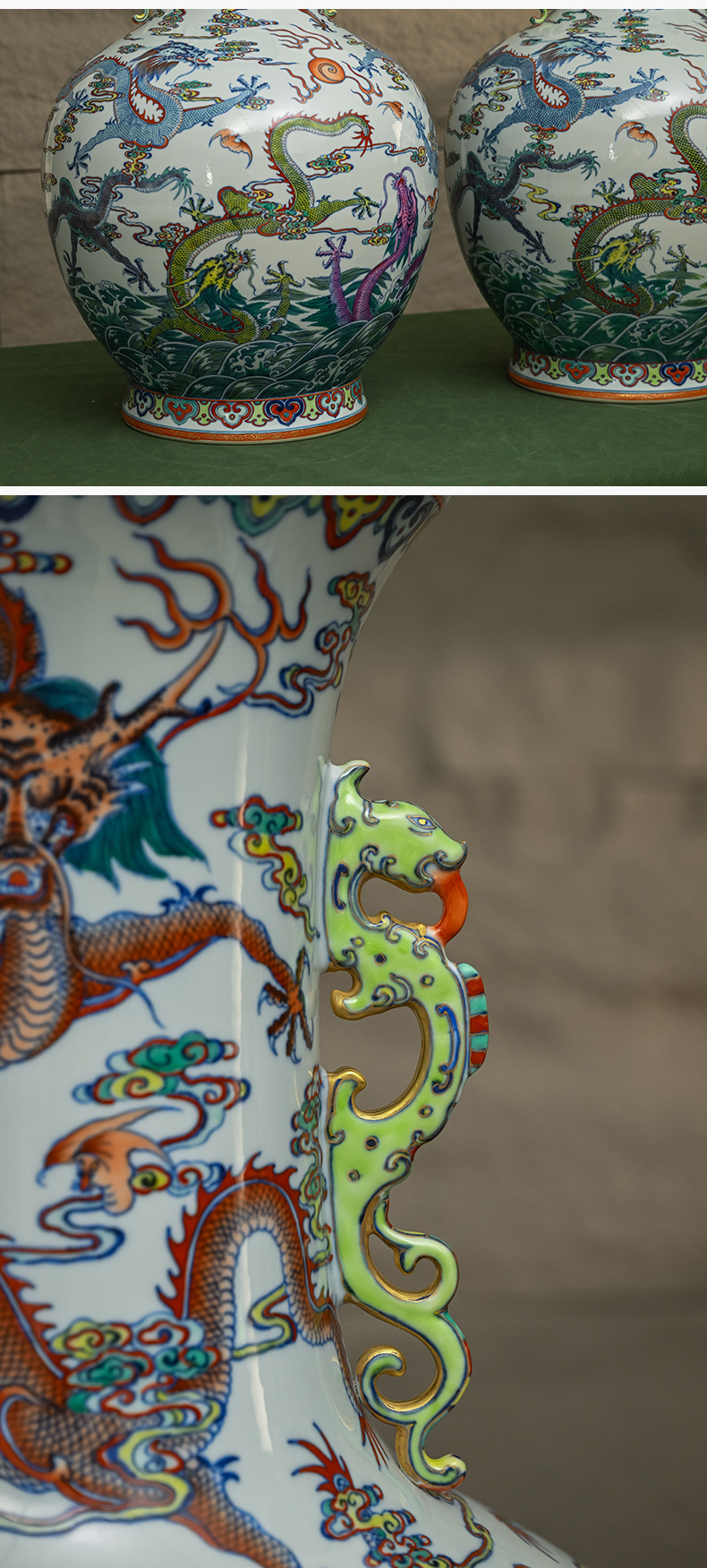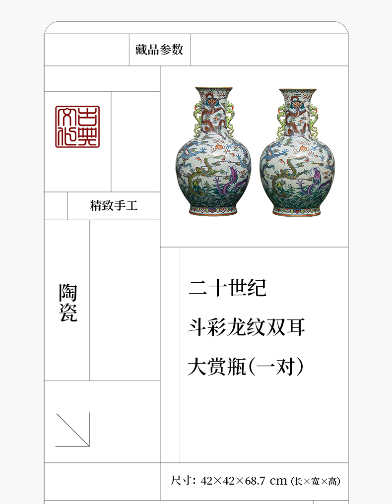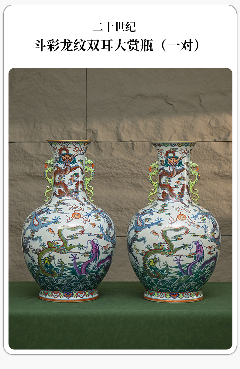 二十世纪 斗彩龙纹双耳大赏瓶(一对)