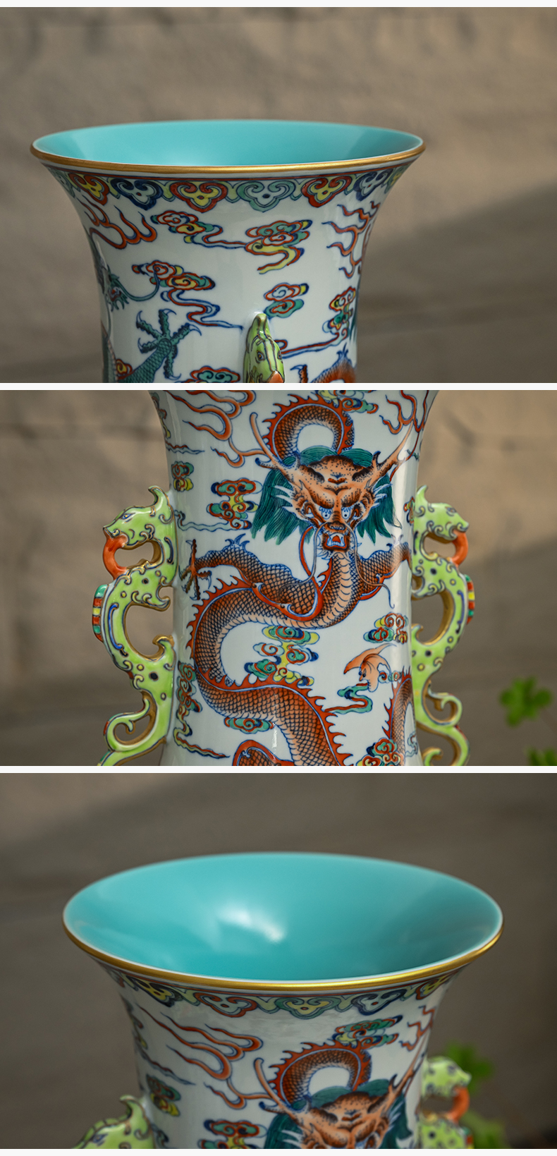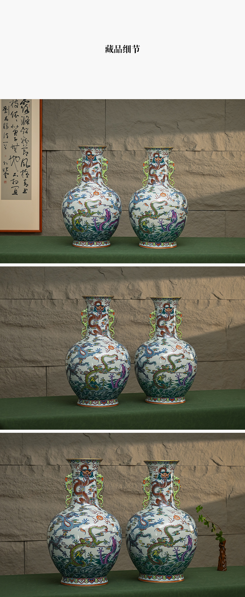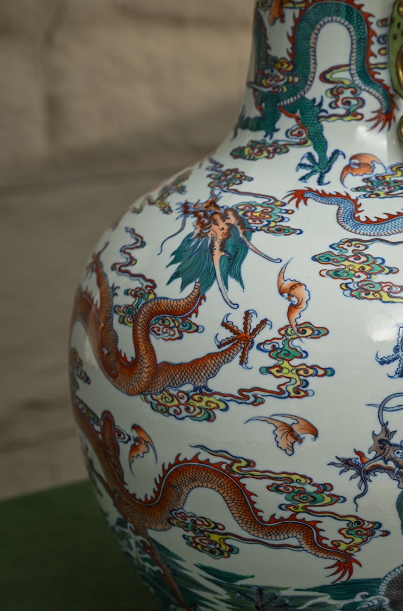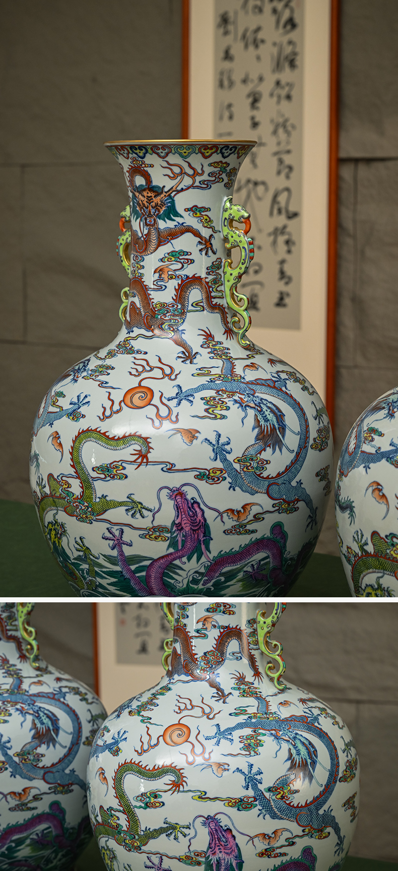 二十世纪 斗彩龙纹双耳大赏瓶(一对)