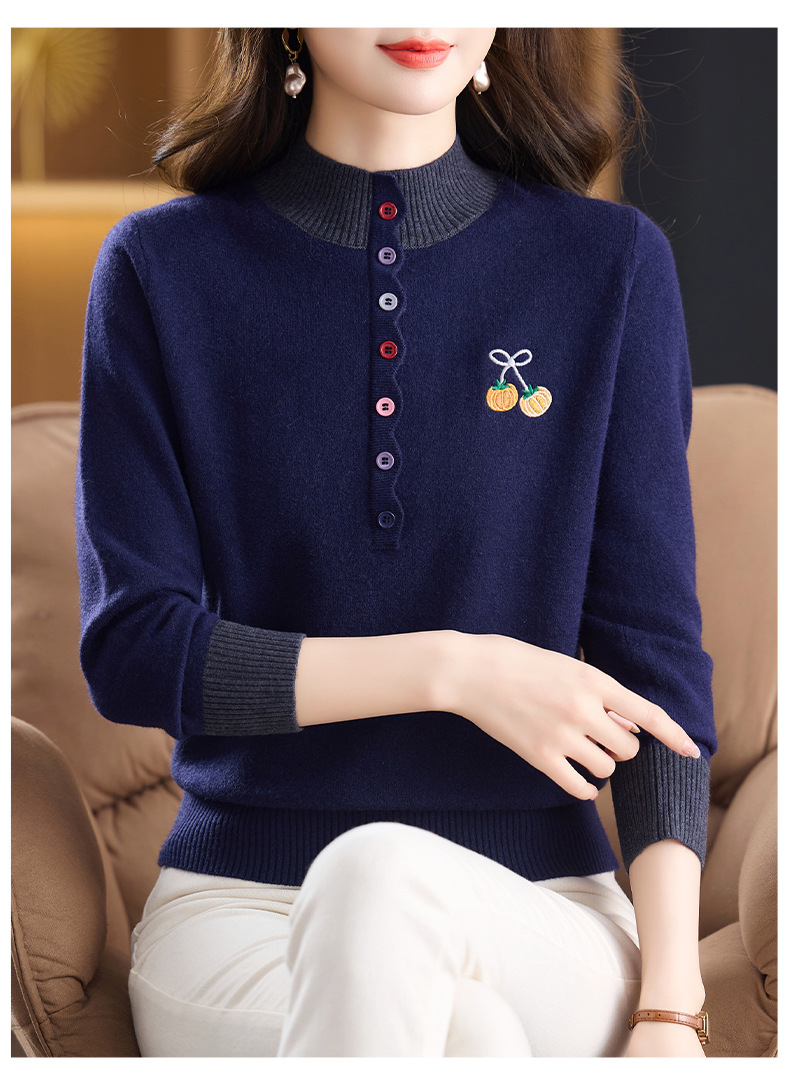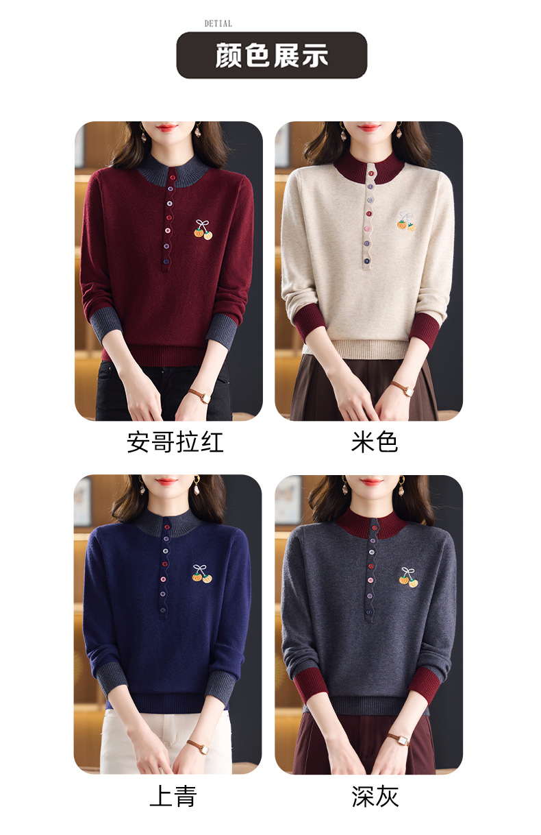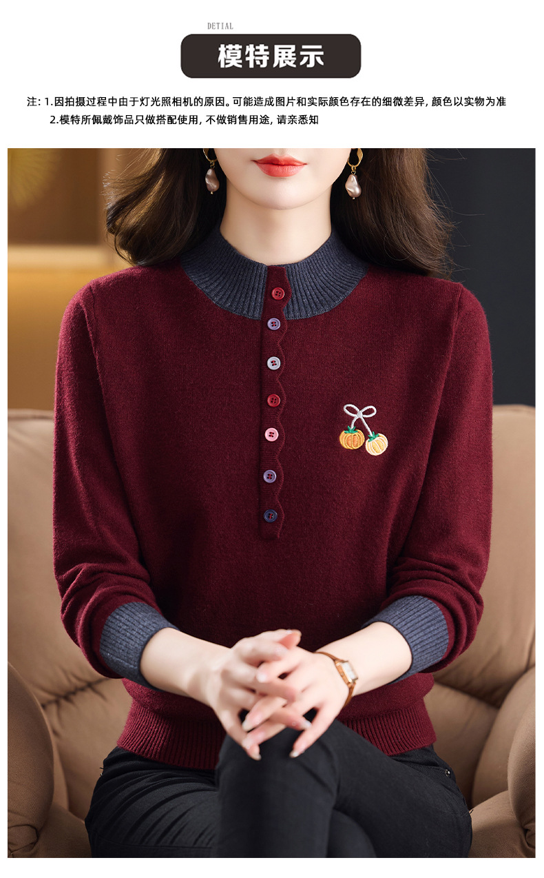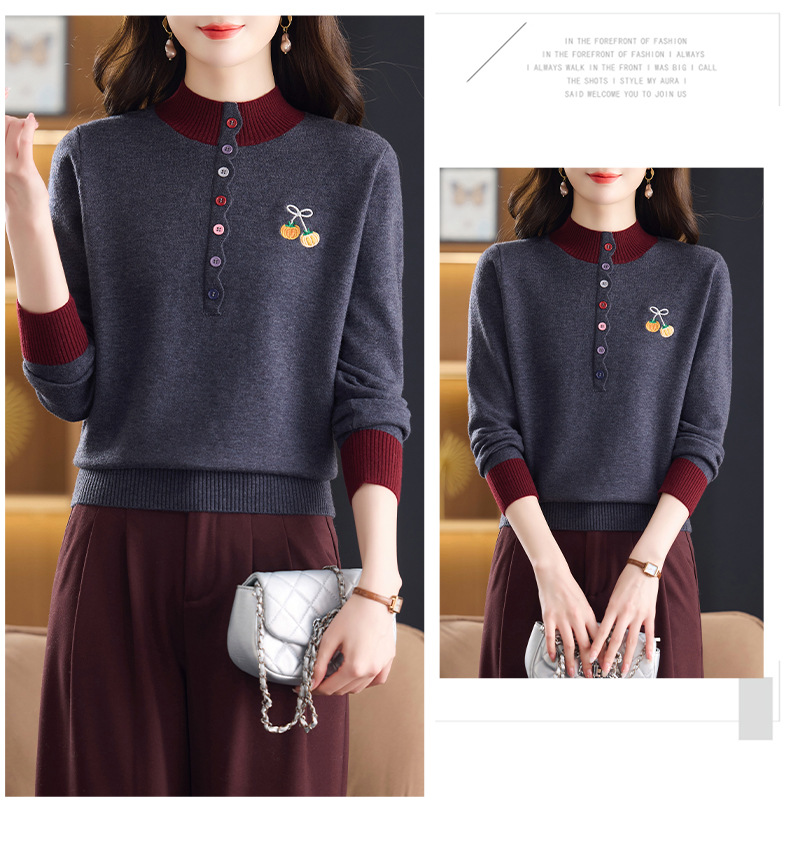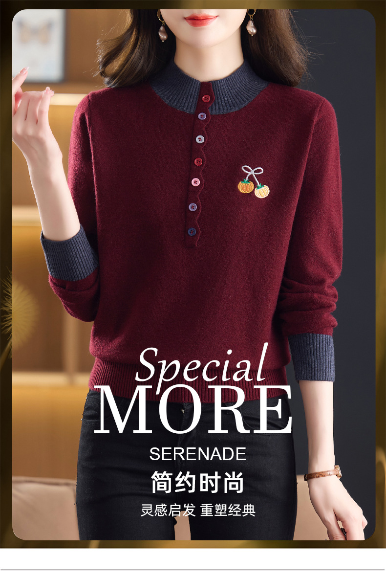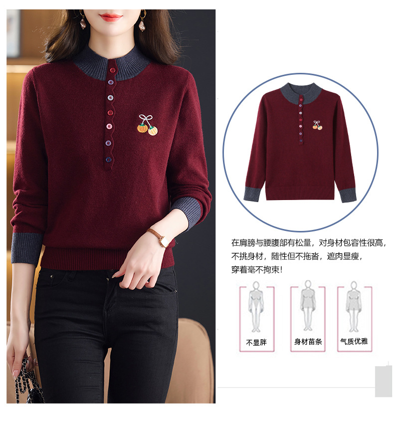PY-38852 秋冬装新款时尚刺绣女士韩版宽松半高领打底针织毛衣套头