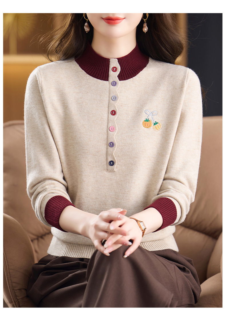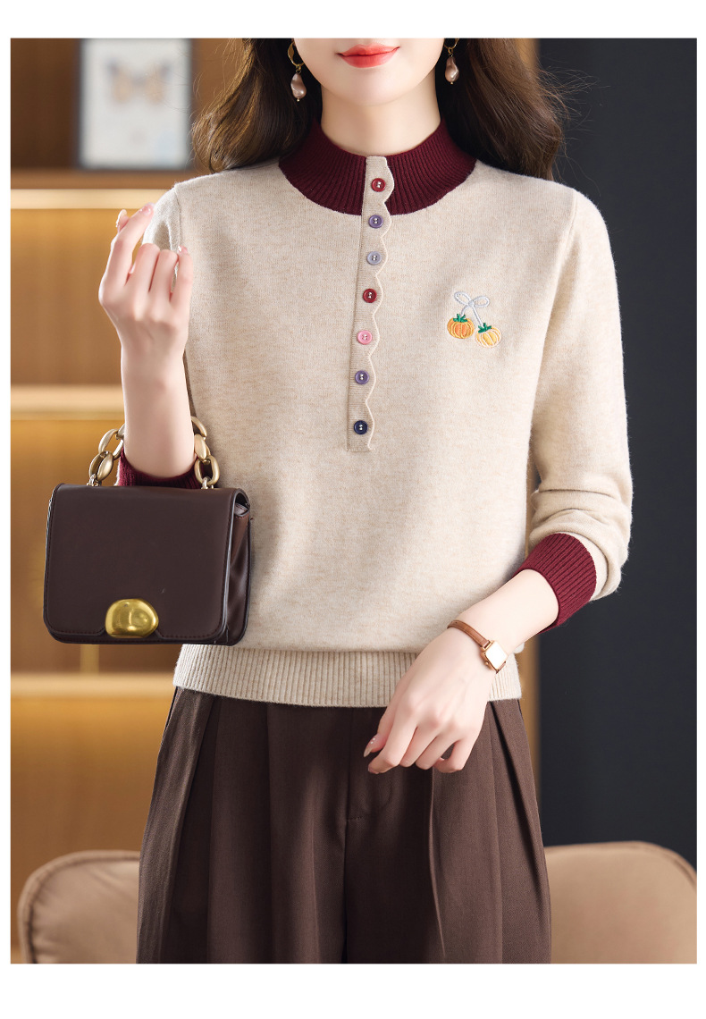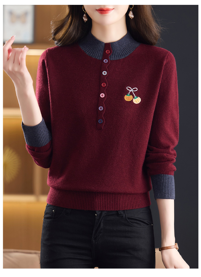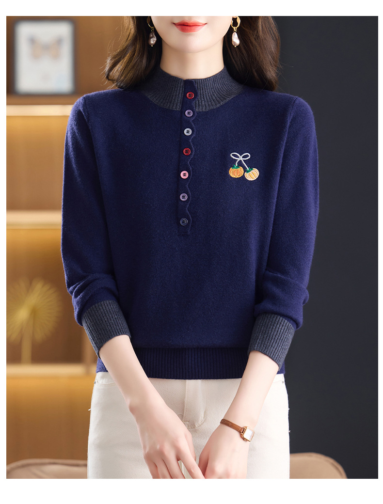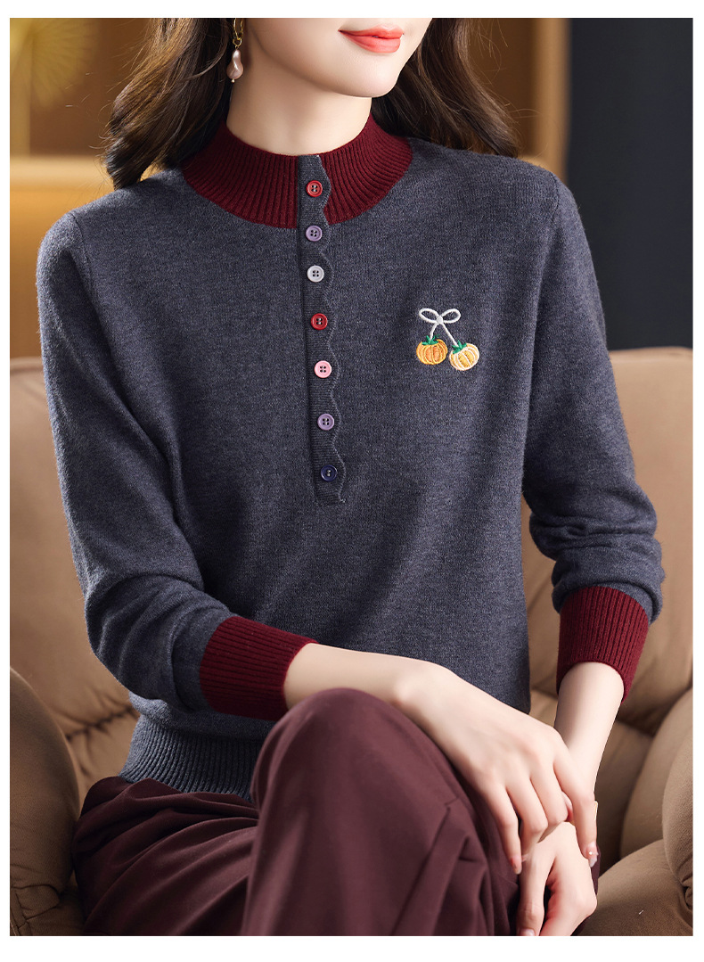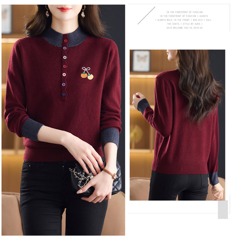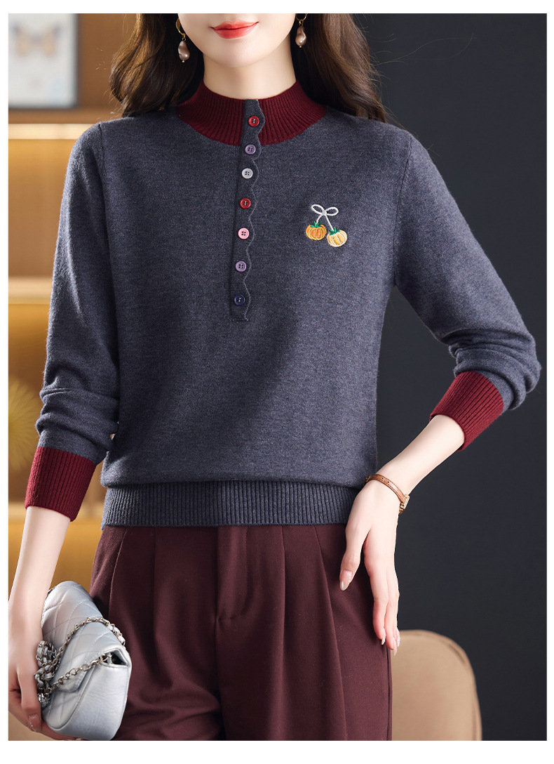 PY-38852 秋冬装新款时尚刺绣女士韩版宽松半高领打底针织毛衣套头