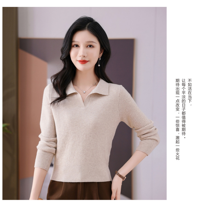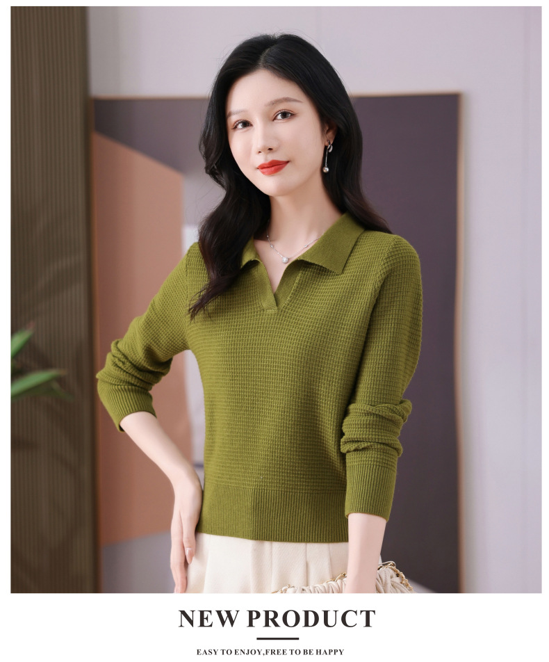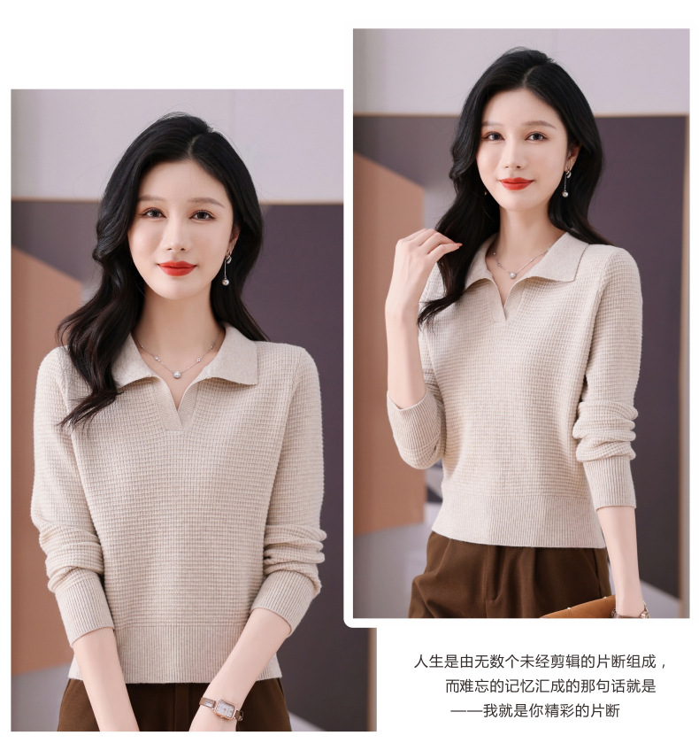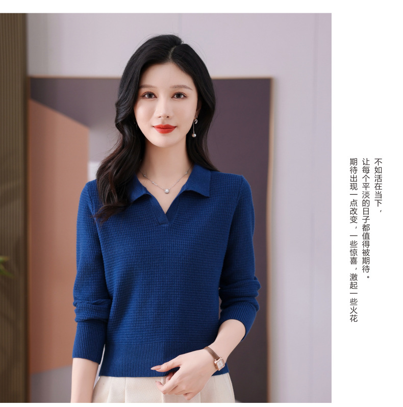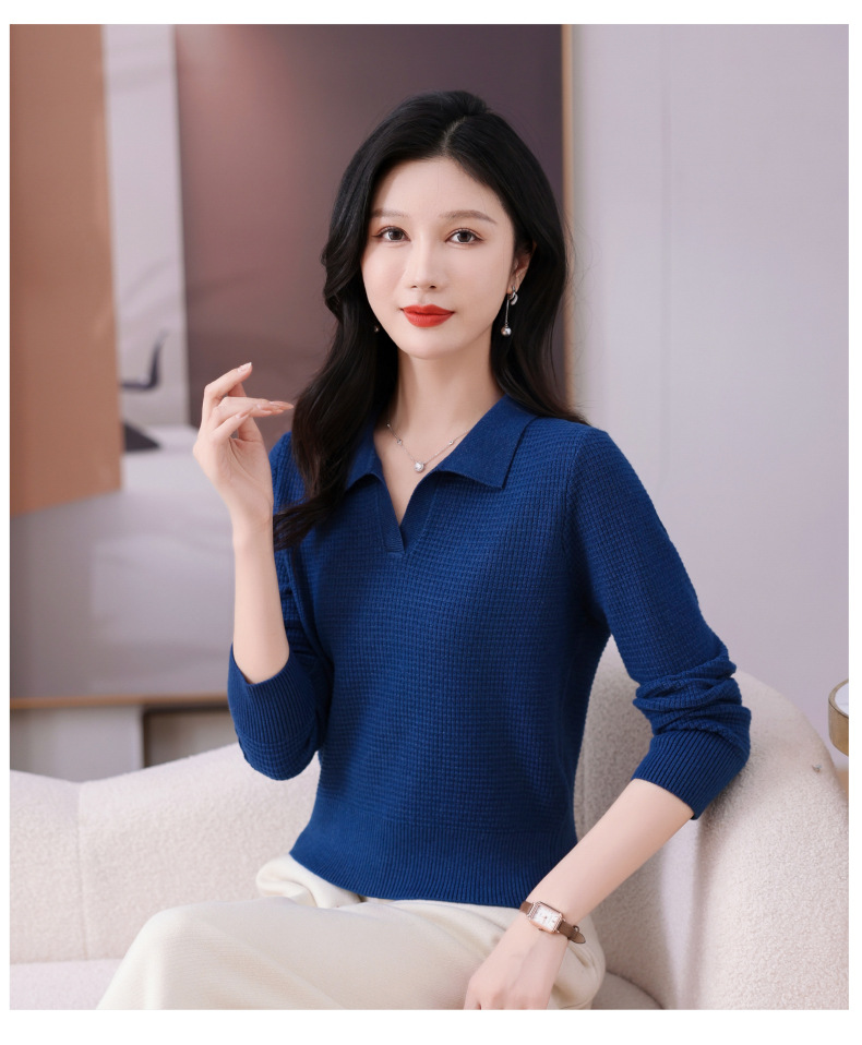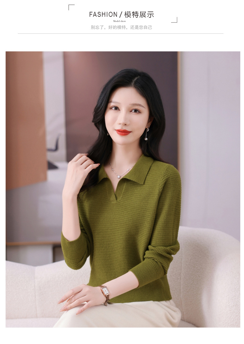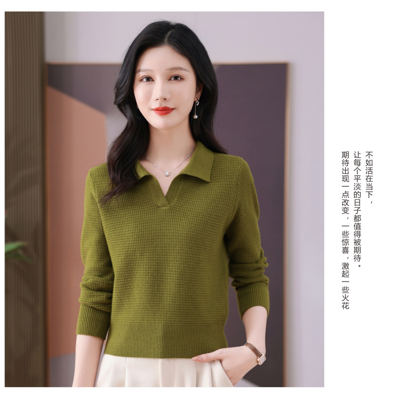 CC-101-56289 polo领打底衫女2025春秋新款洋气内搭长袖薄羊毛针织衫翻领T恤女