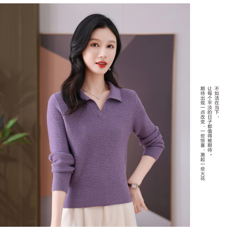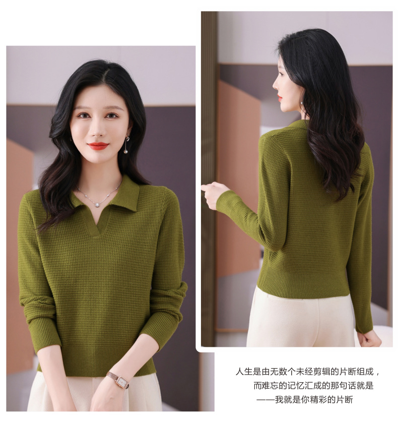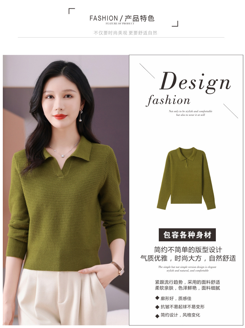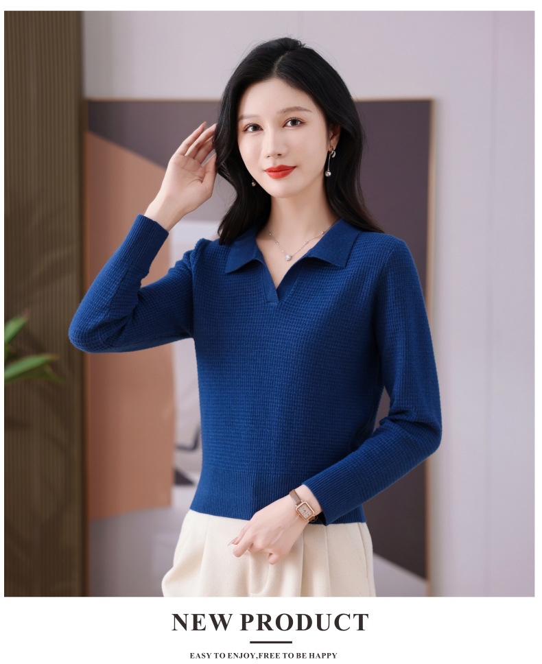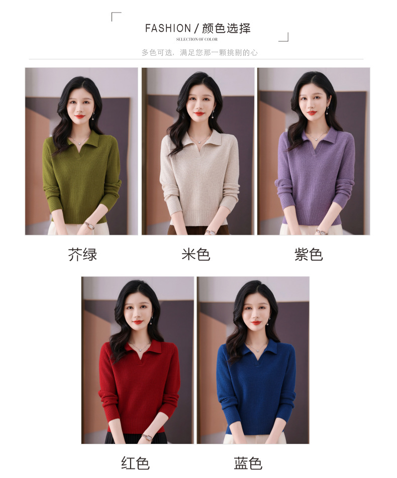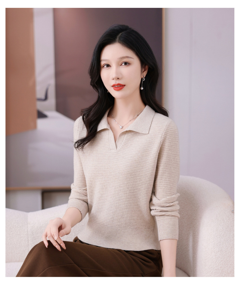 CC-101-56289 polo领打底衫女2025春秋新款洋气内搭长袖薄羊毛针织衫翻领T恤女