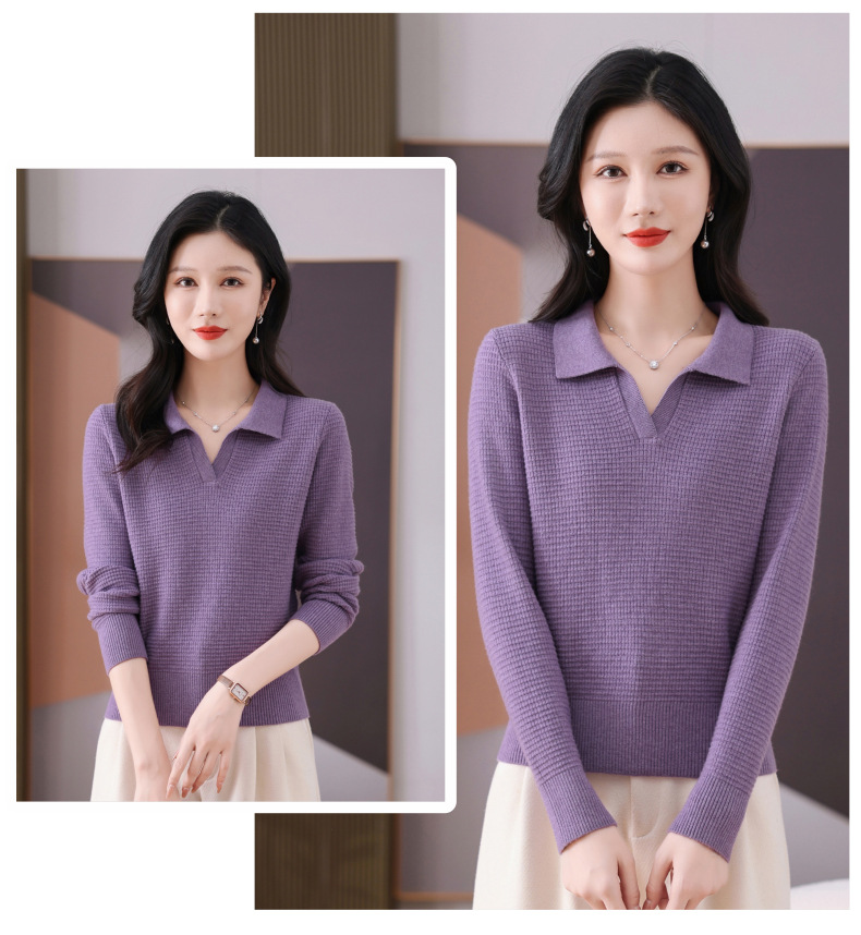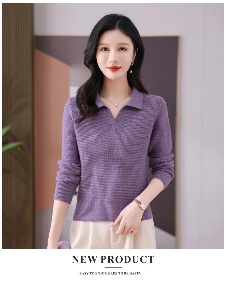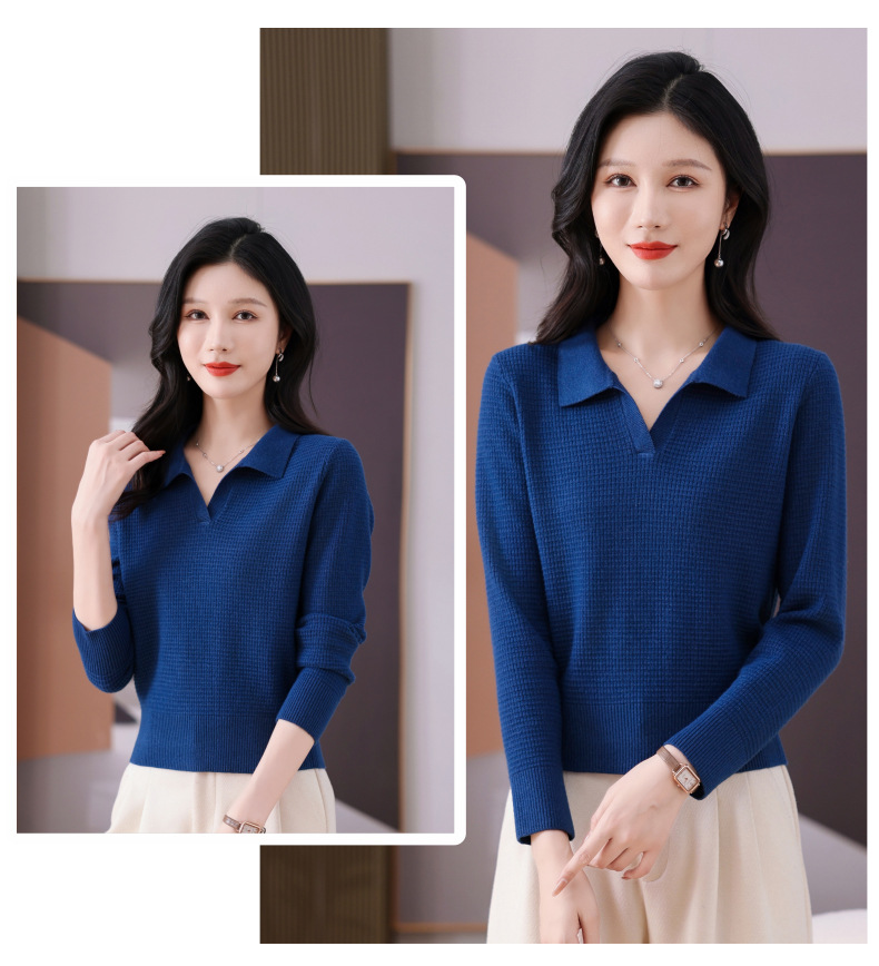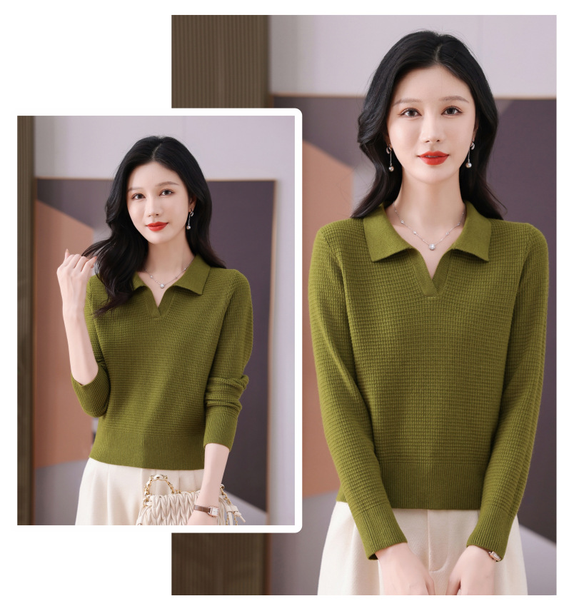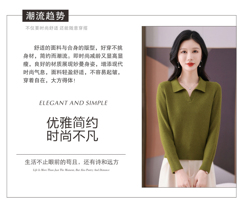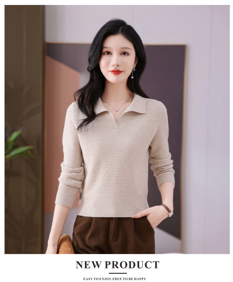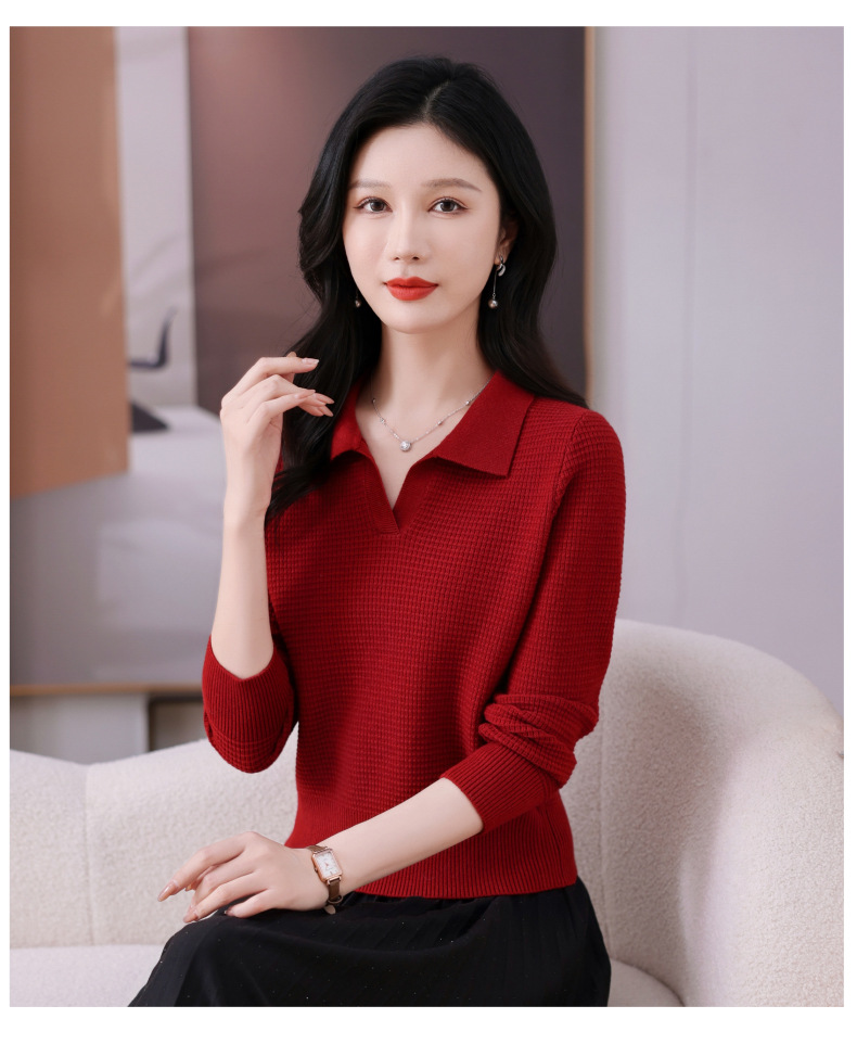 CC-101-56289 polo领打底衫女2025春秋新款洋气内搭长袖薄羊毛针织衫翻领T恤女