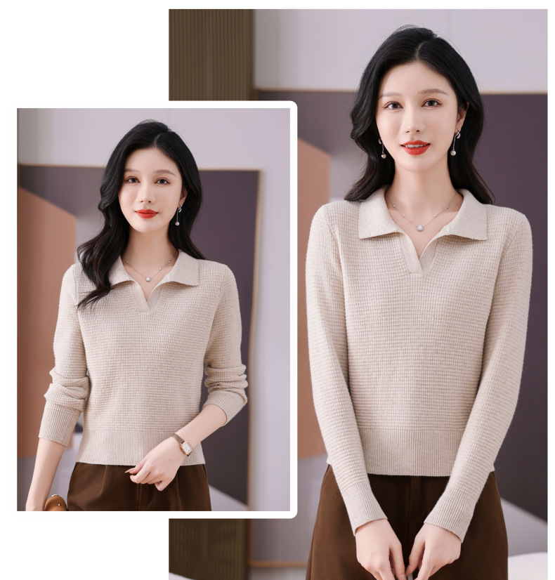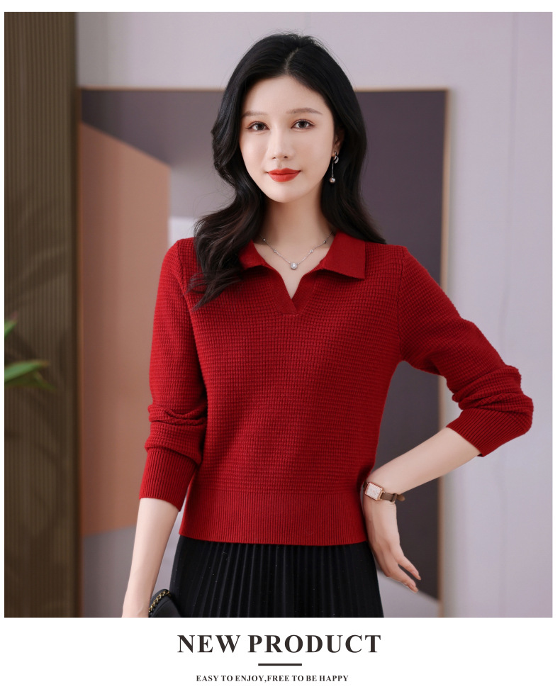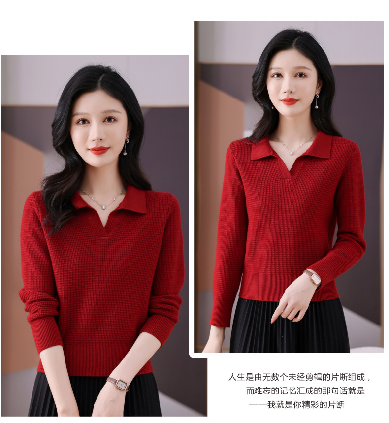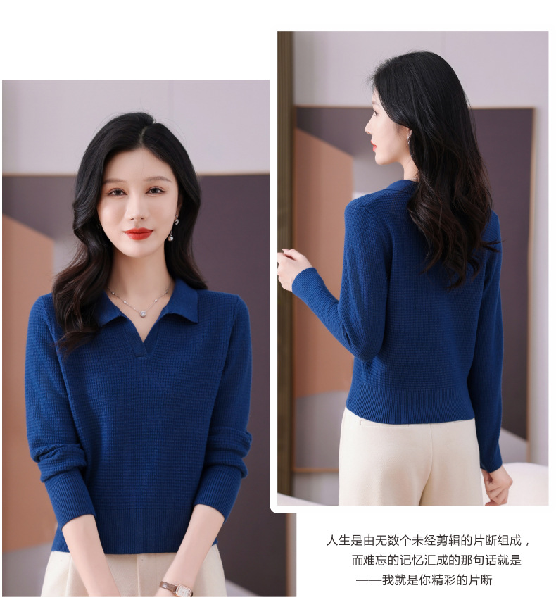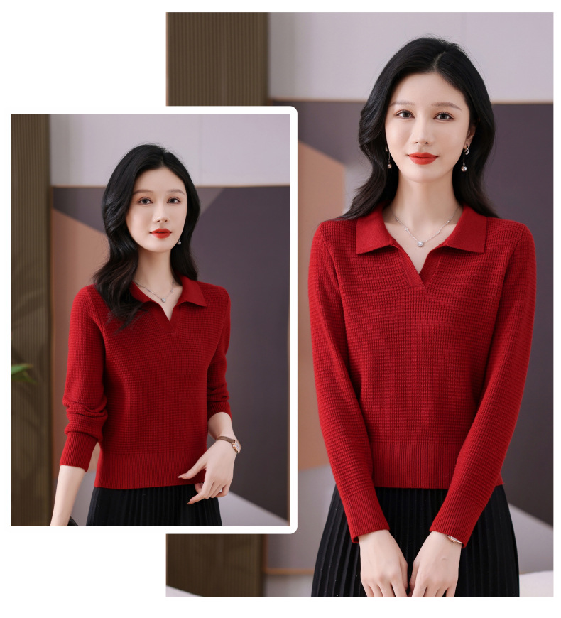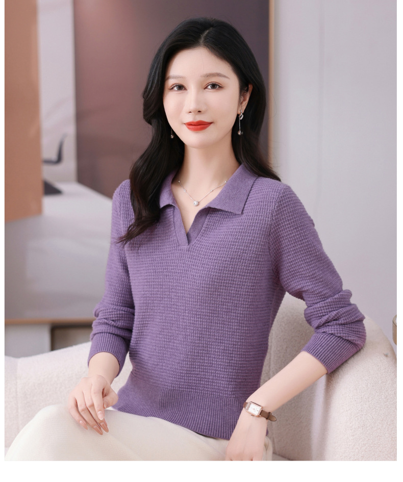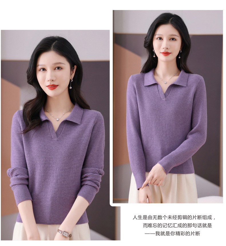 CC-101-56289 polo领打底衫女2025春秋新款洋气内搭长袖薄羊毛针织衫翻领T恤女