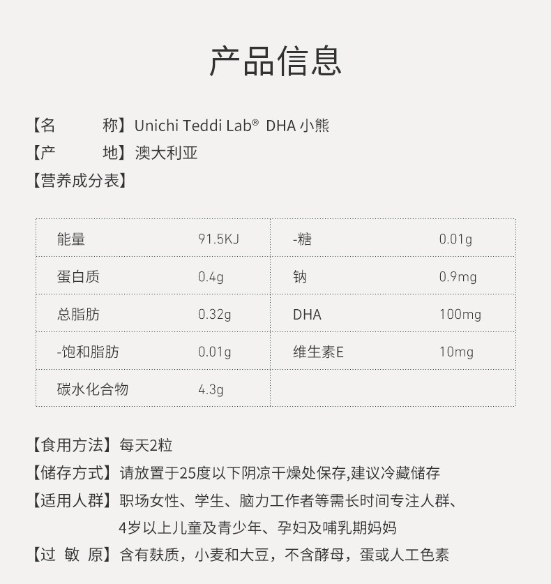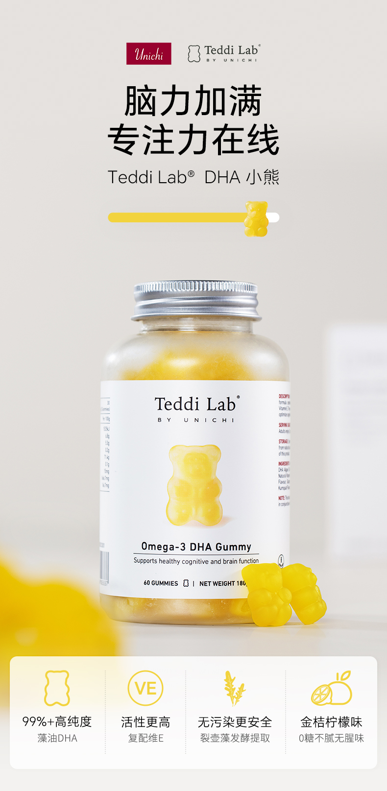 Unichi DHA小熊高纯藻油儿童孕妇补脑提升专注力