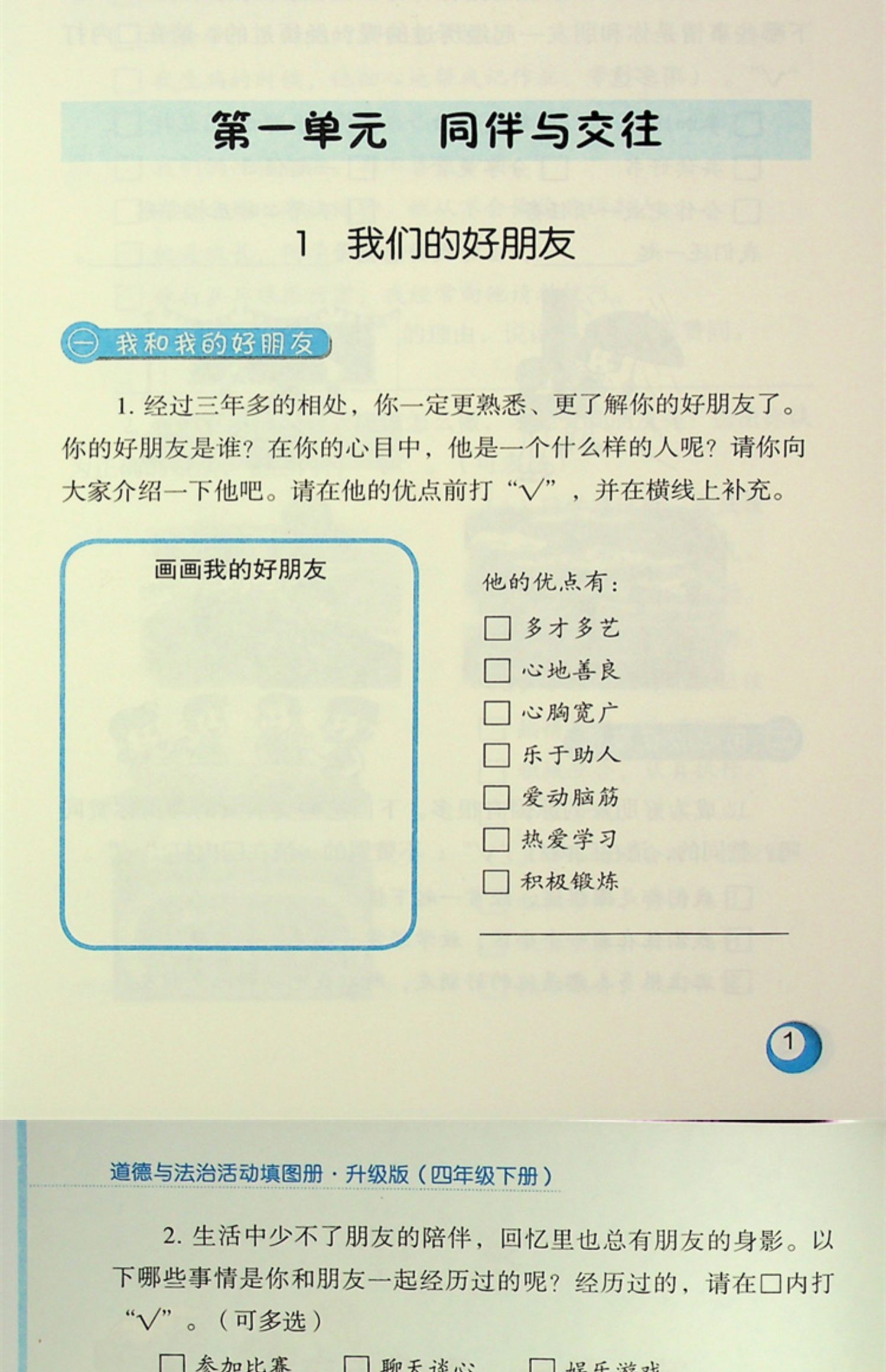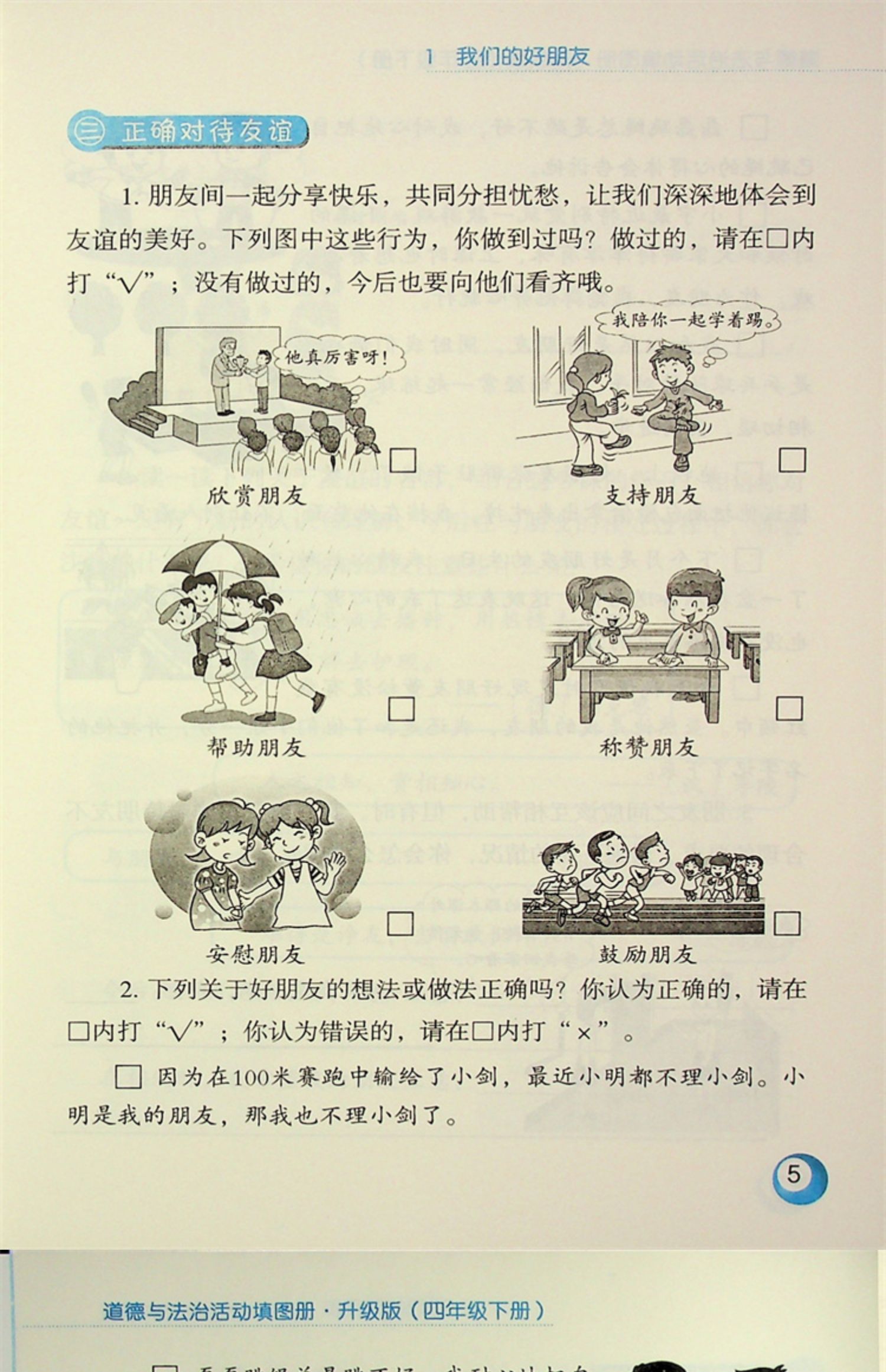 2025春道德与法治活动填图册 四年级下册 升级版 统编版 4下 含参考答案 小学道德与法治同步练习 江苏凤凰教育出版社