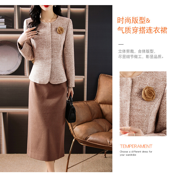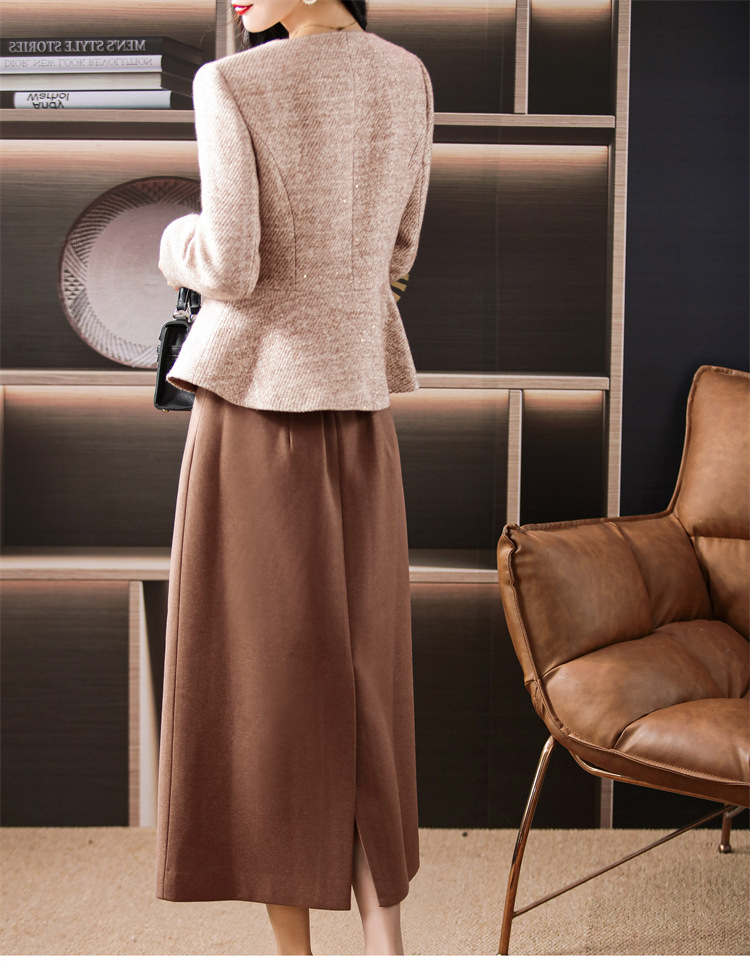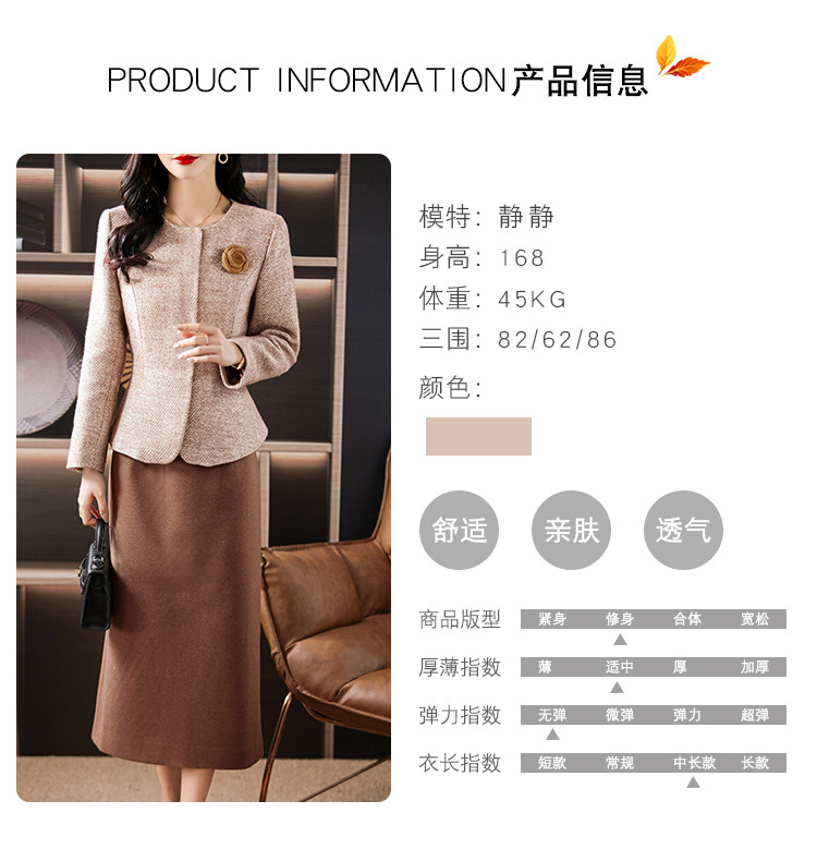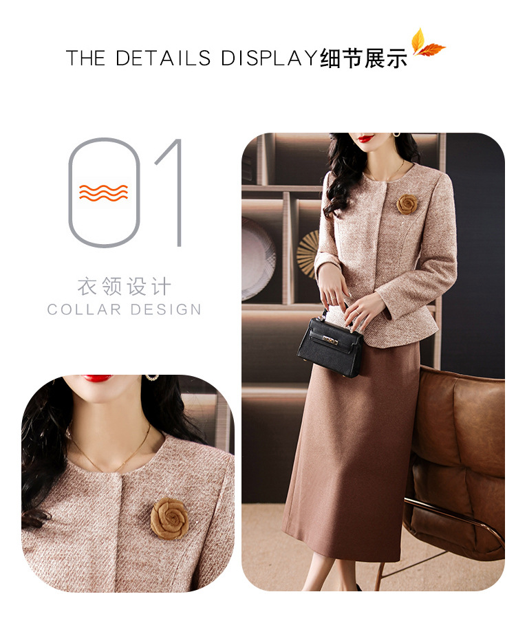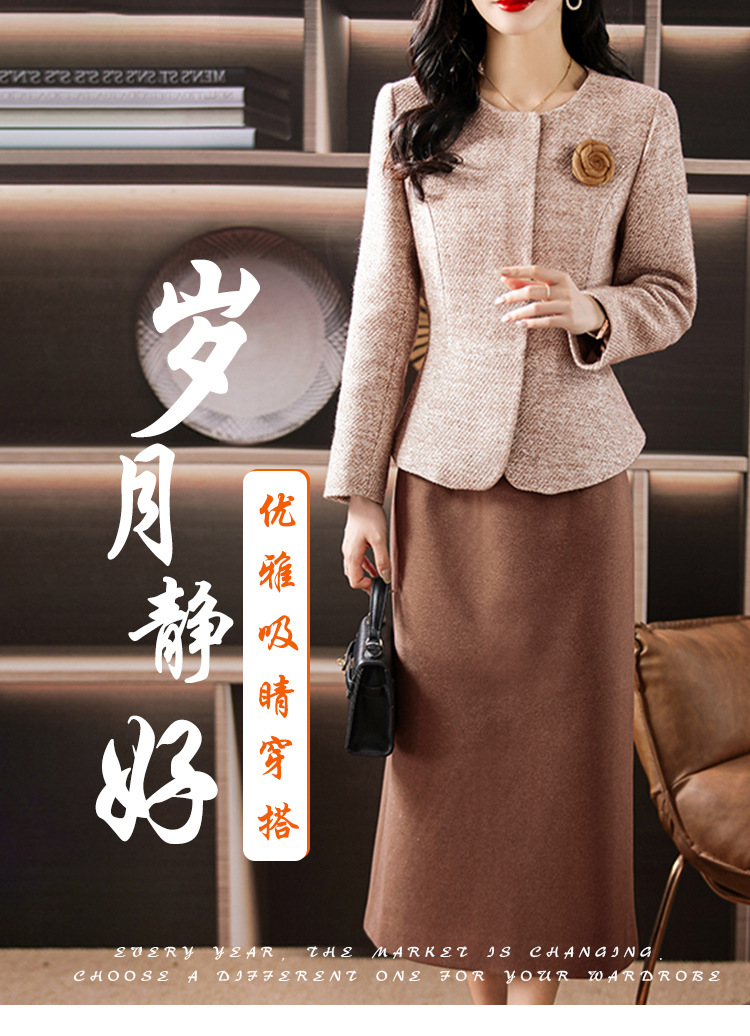 雀说毛呢小香风套装秋两件套高级感气质修身显瘦套装裙妈妈装3689ALW2511-3