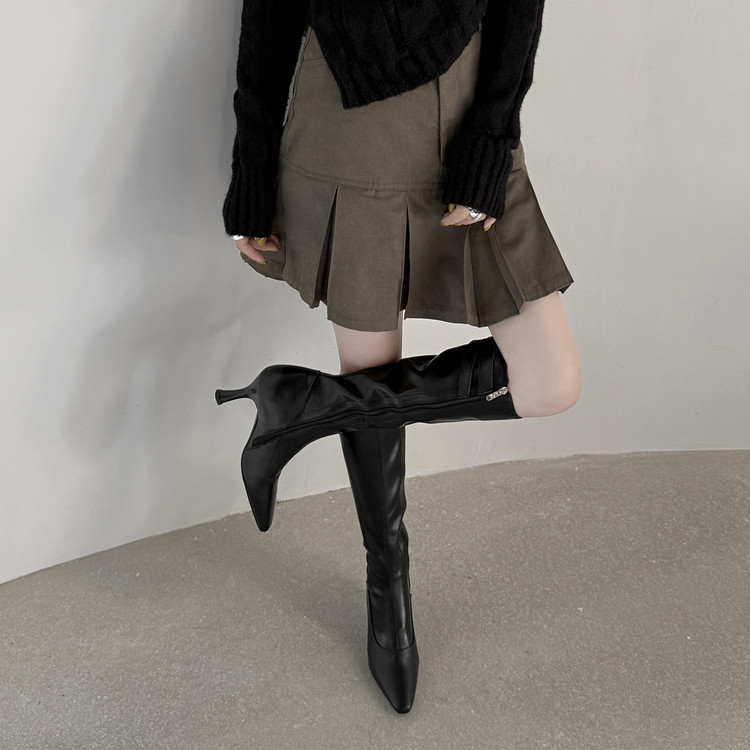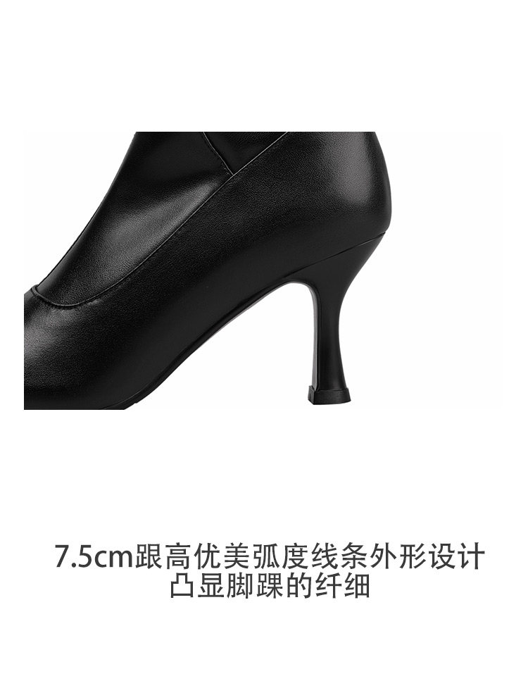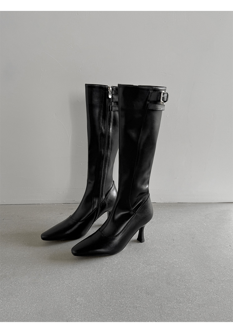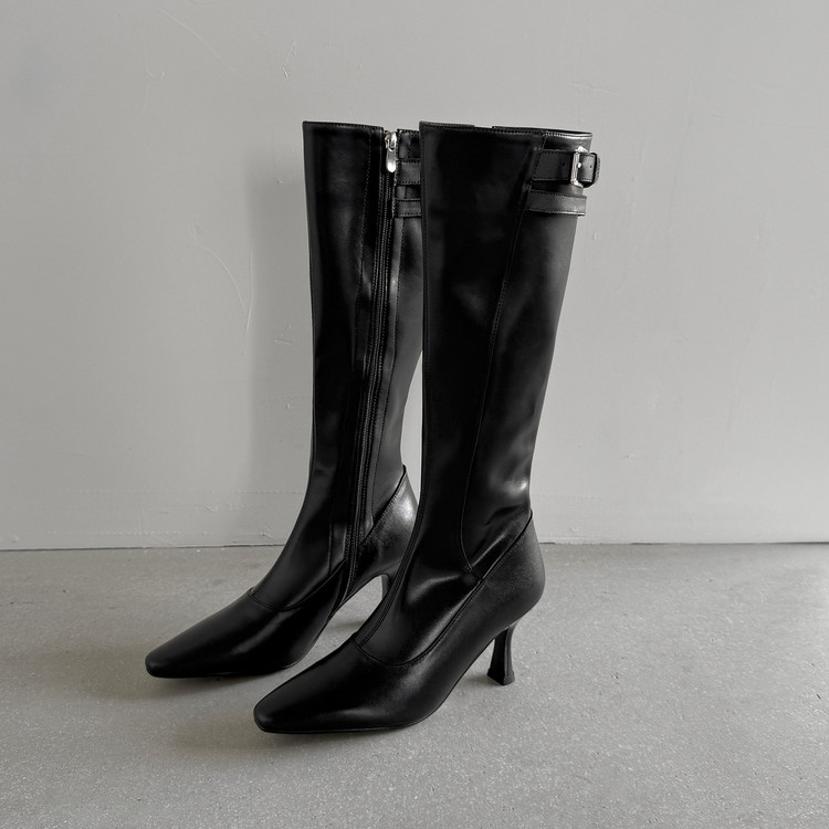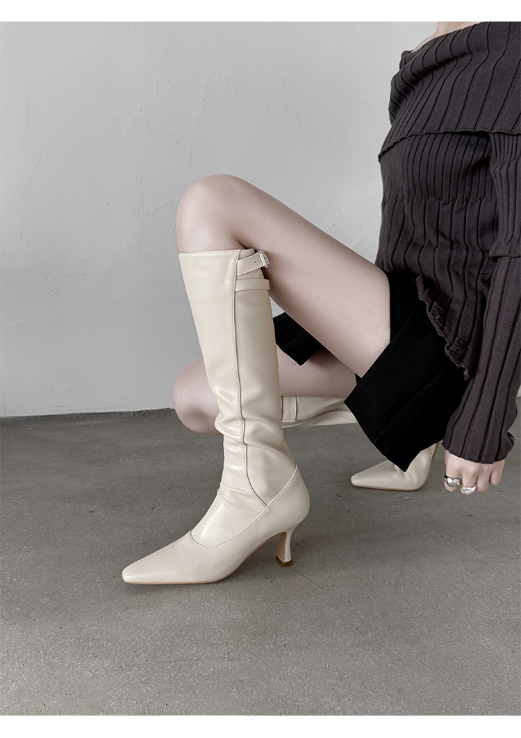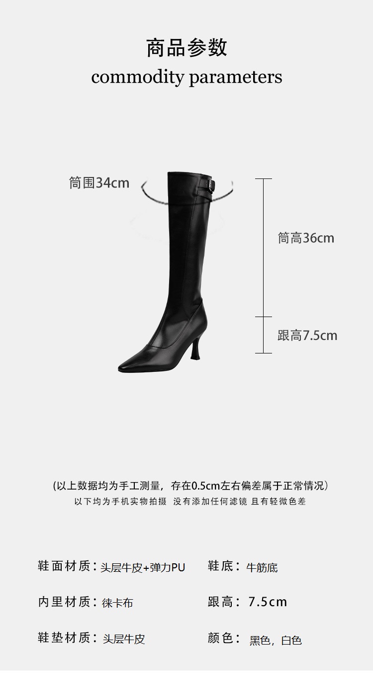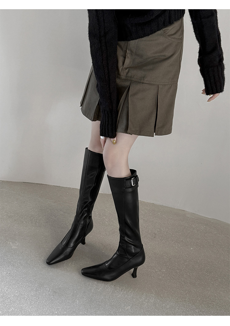 【预售7天】优雅性感高跟高筒靴秋冬尖头皮带扣通勤细跟牛皮弹力长靴女DQ&DQ9721W
