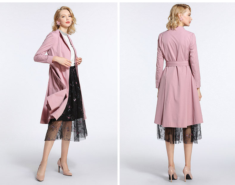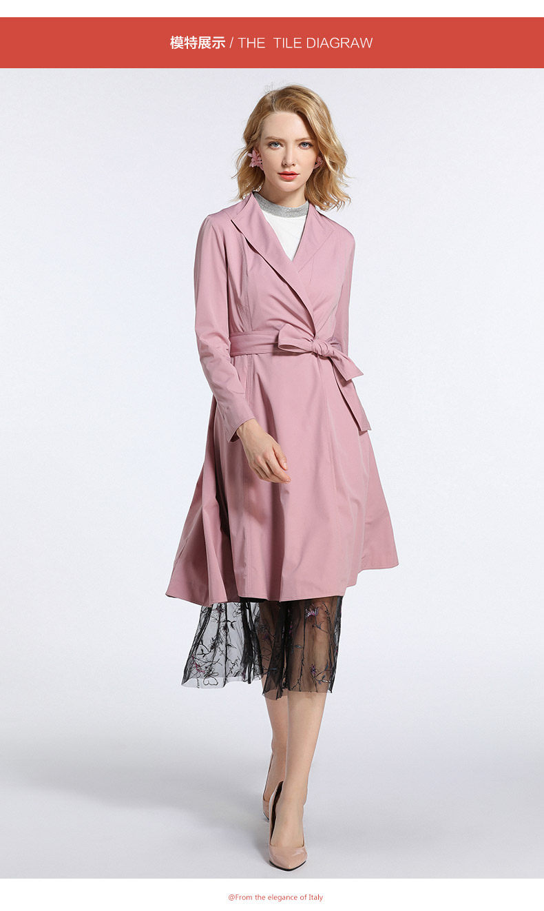 乔万尼春季外套减龄修身气质高腰系带薄风衣女中长款韩版EB3A265