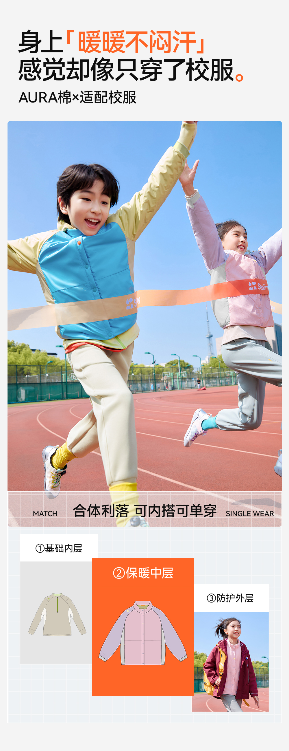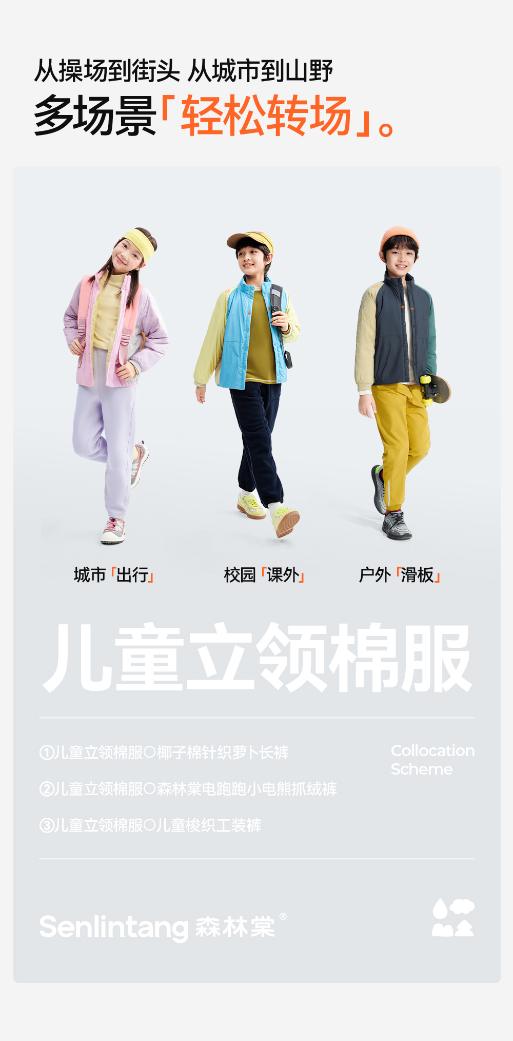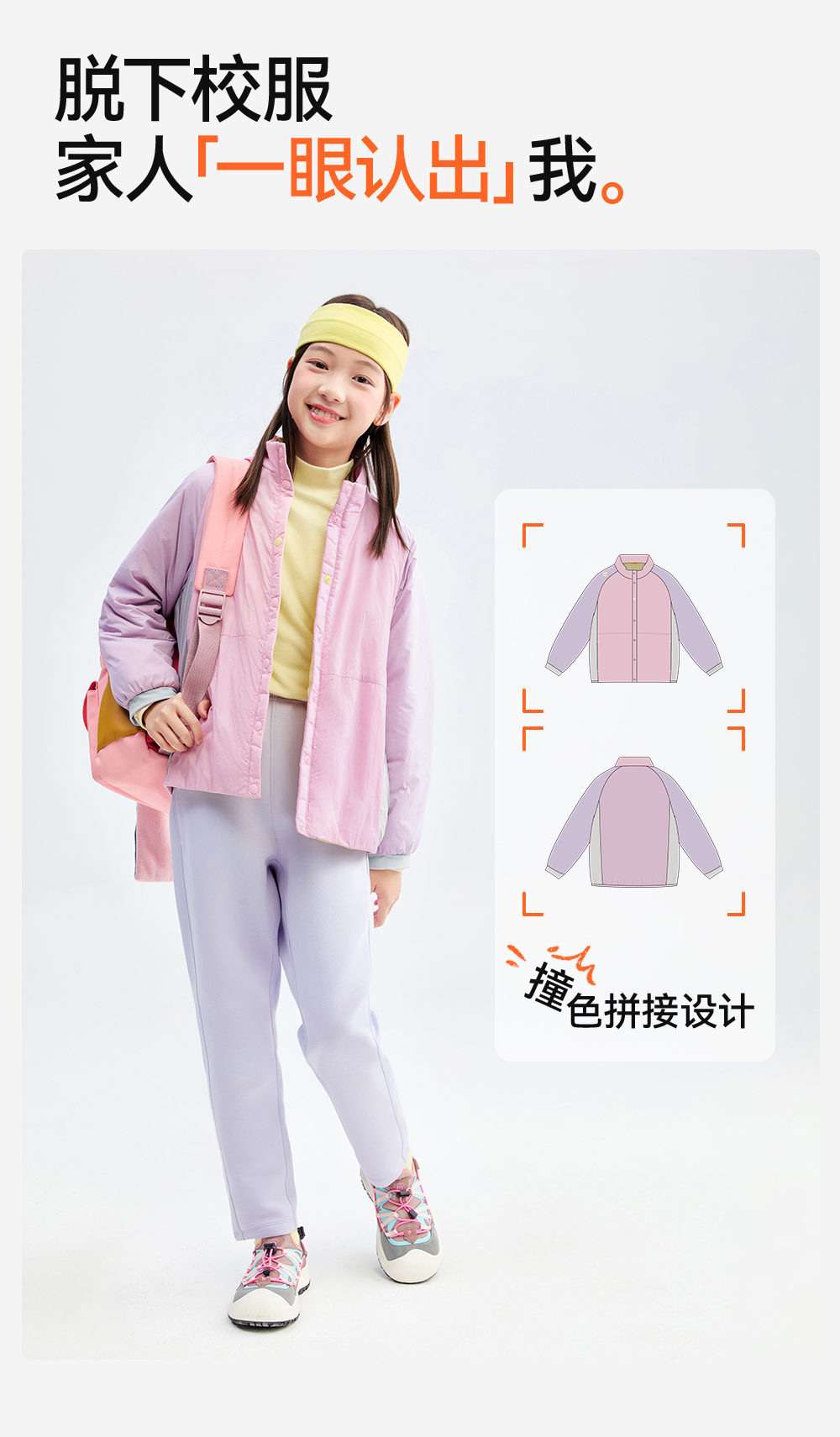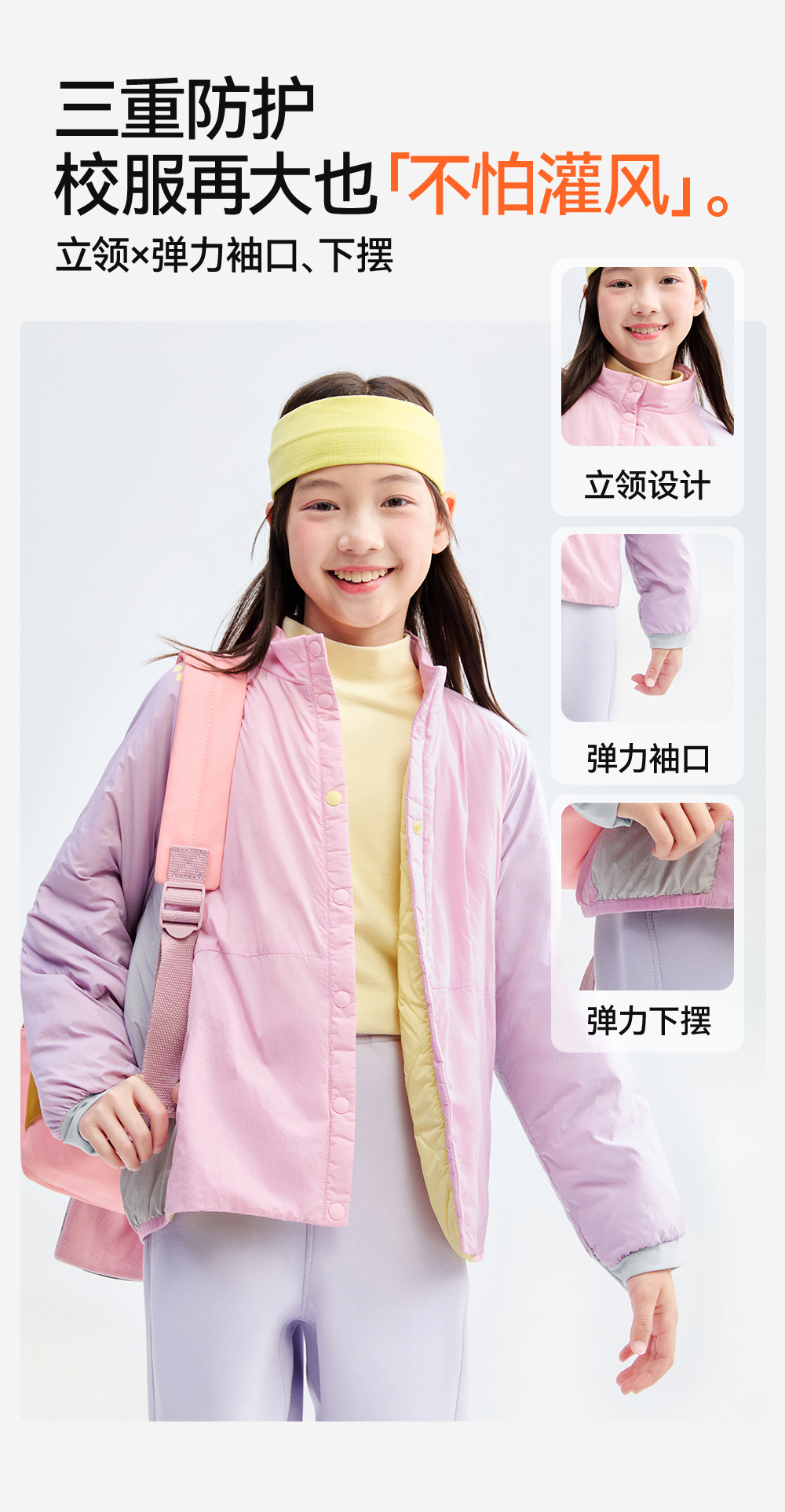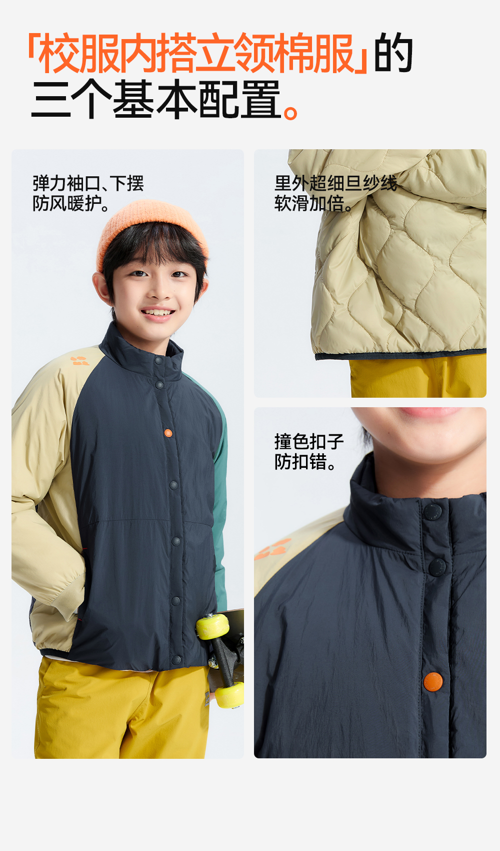【儿童立领校服神器】森林棠25秋季儿童拼色立领保暖棉服轻量透气校服内搭神器80852501