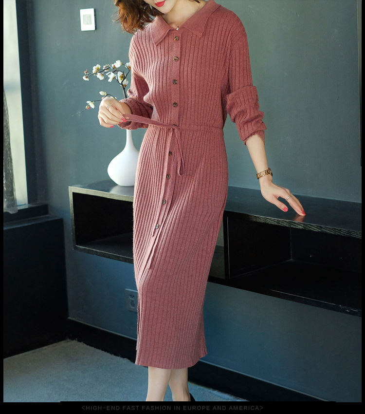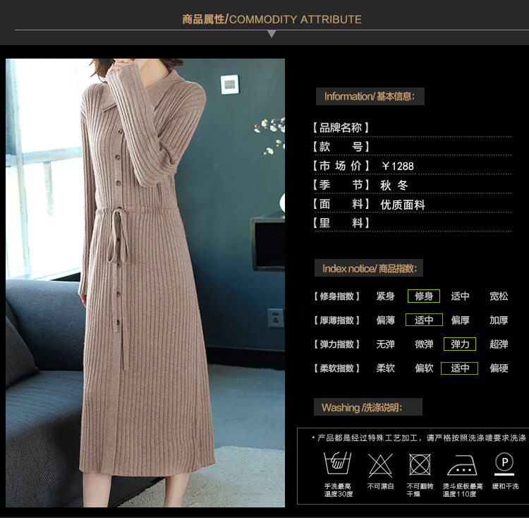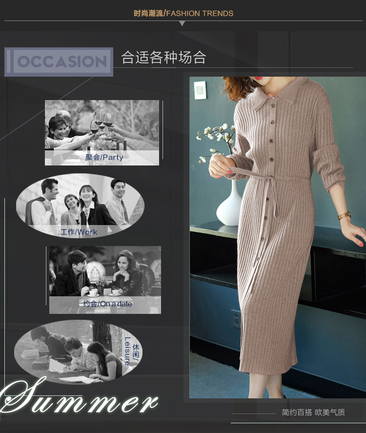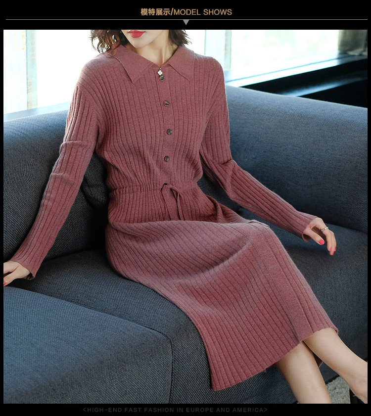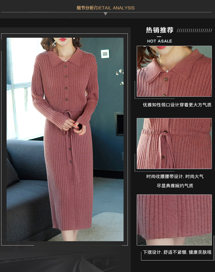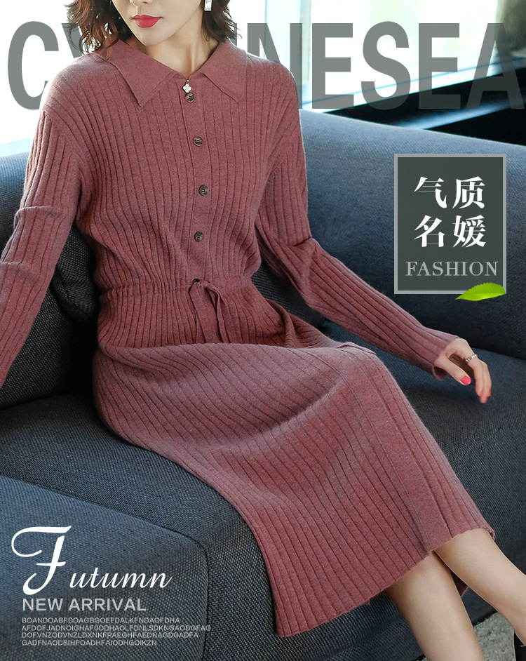 LL-G5607秋冬季新款收腰显瘦针织连衣裙唐织绾