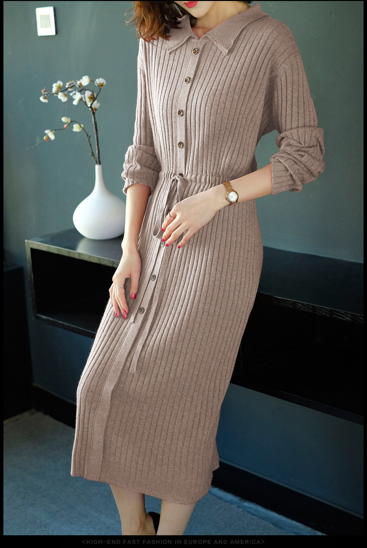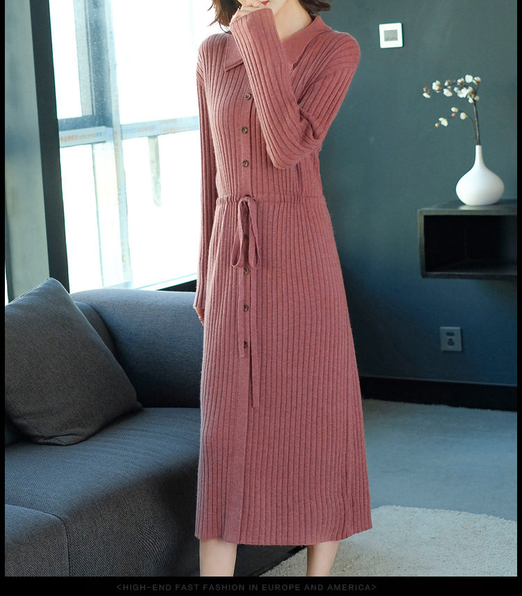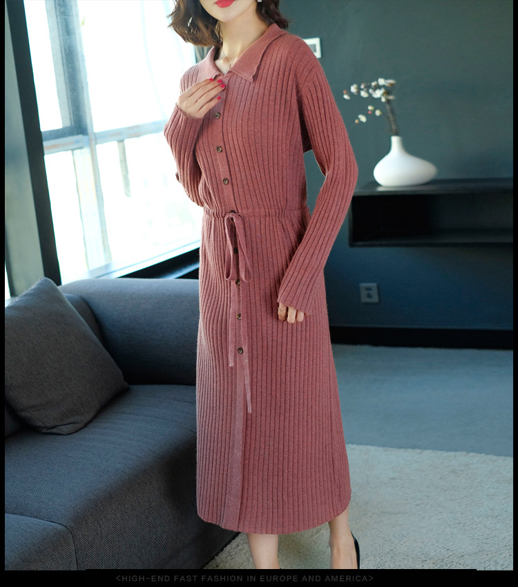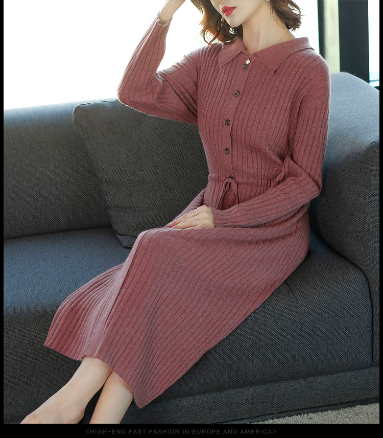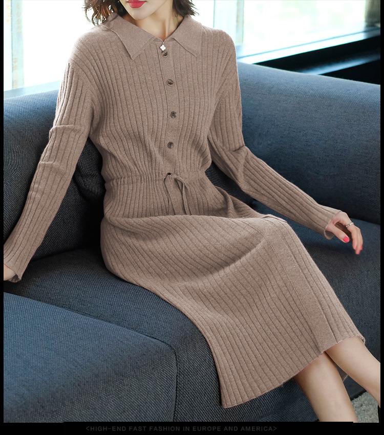 LL-G5607秋冬季新款收腰显瘦针织连衣裙唐织绾