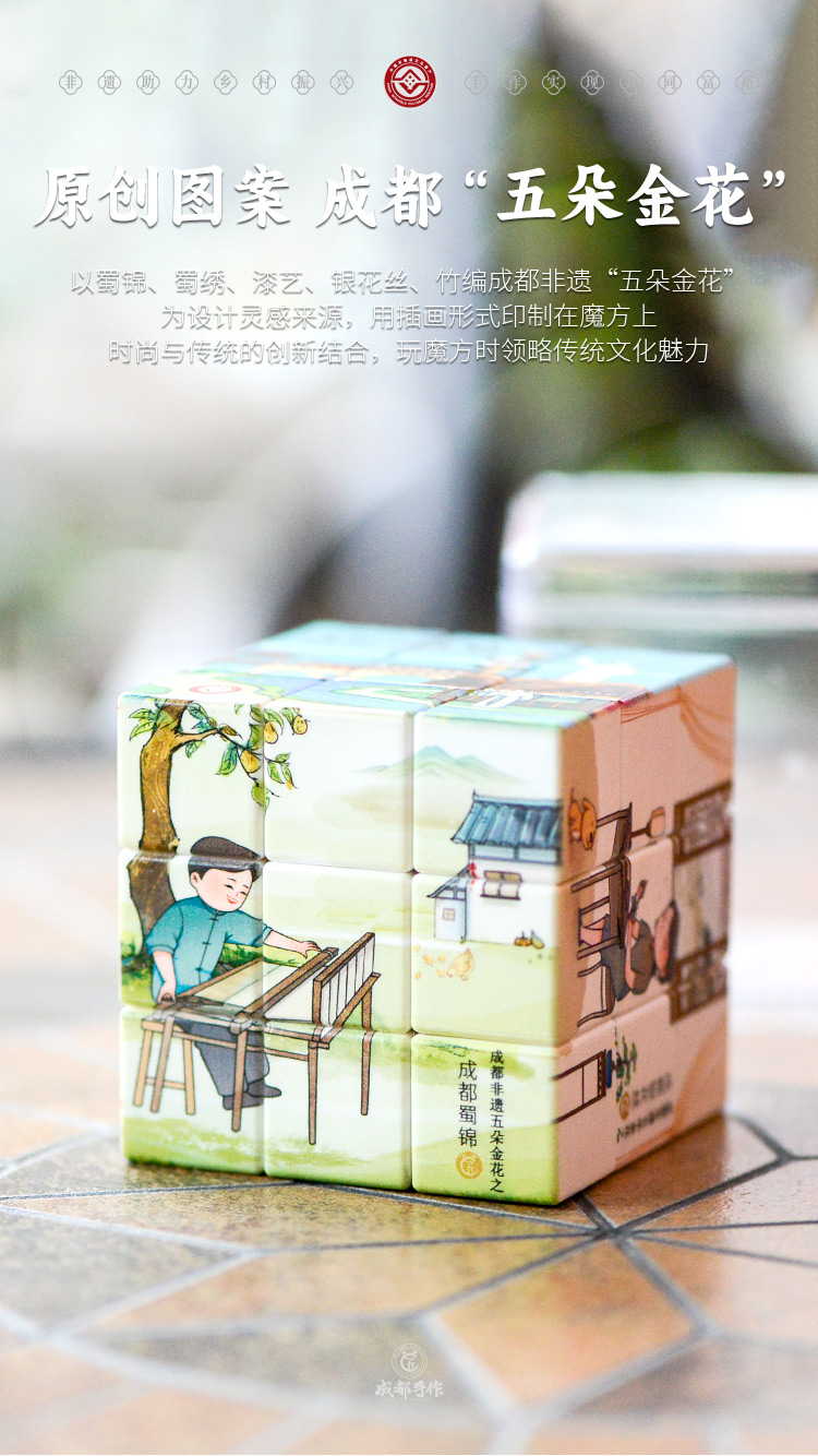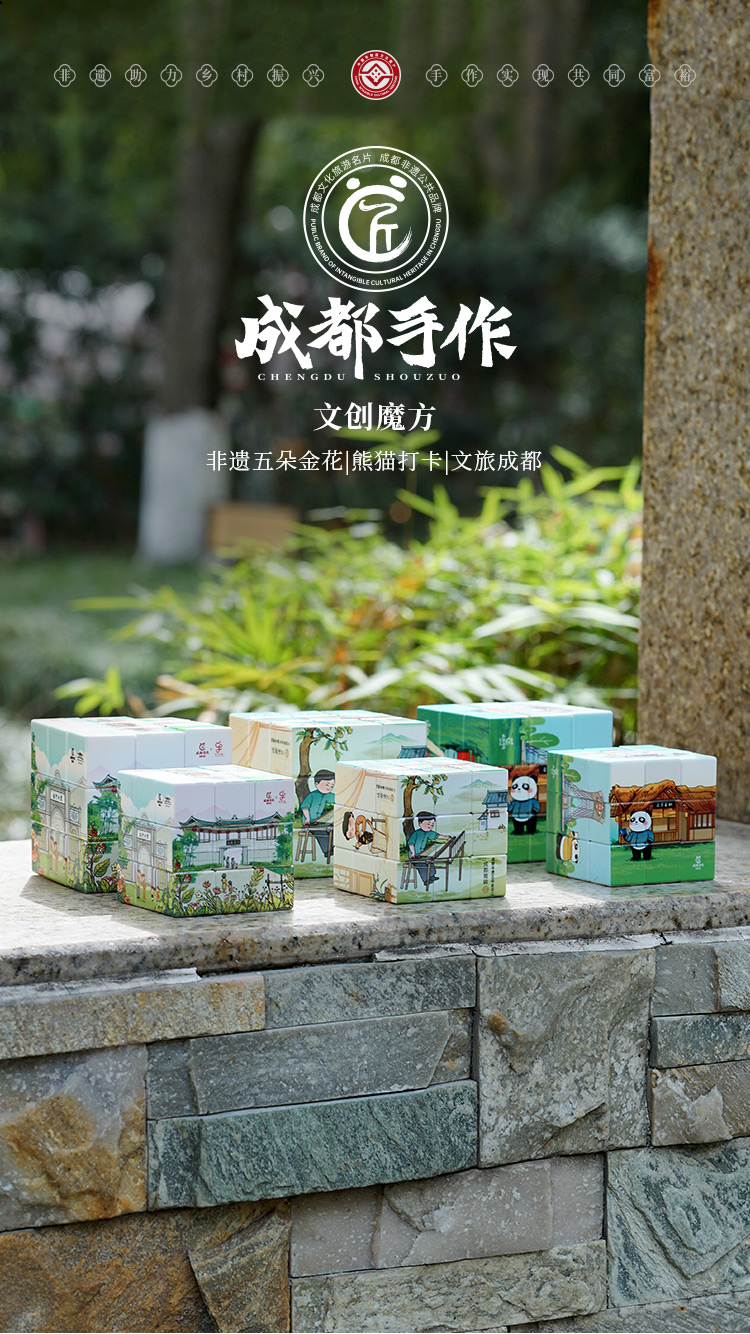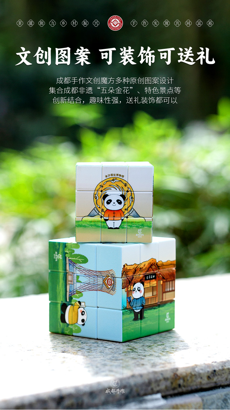 【文旅文创三阶魔方】成都手作文旅文创魔方 三阶解压魔方 成都非遗五朵金花/熊 猫打卡/文旅成都 三种图案可选 儿童益智玩具【文创工艺品】卡通新潮特色图案