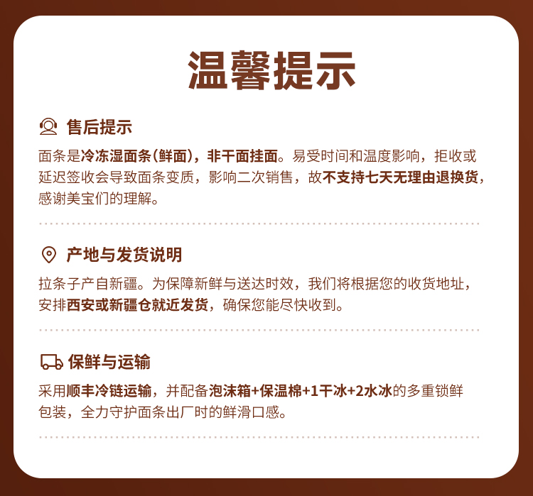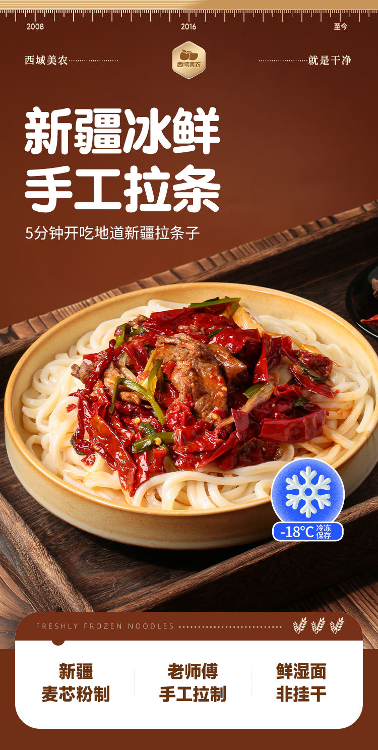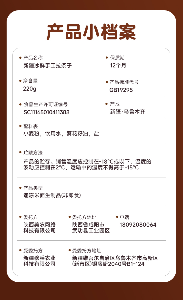 西域美农 新疆冰鲜手工拉条子 地道新疆味,还原线下风味煮熟后麦香扑鼻,面条劲道弹牙不塞牙 220g*10