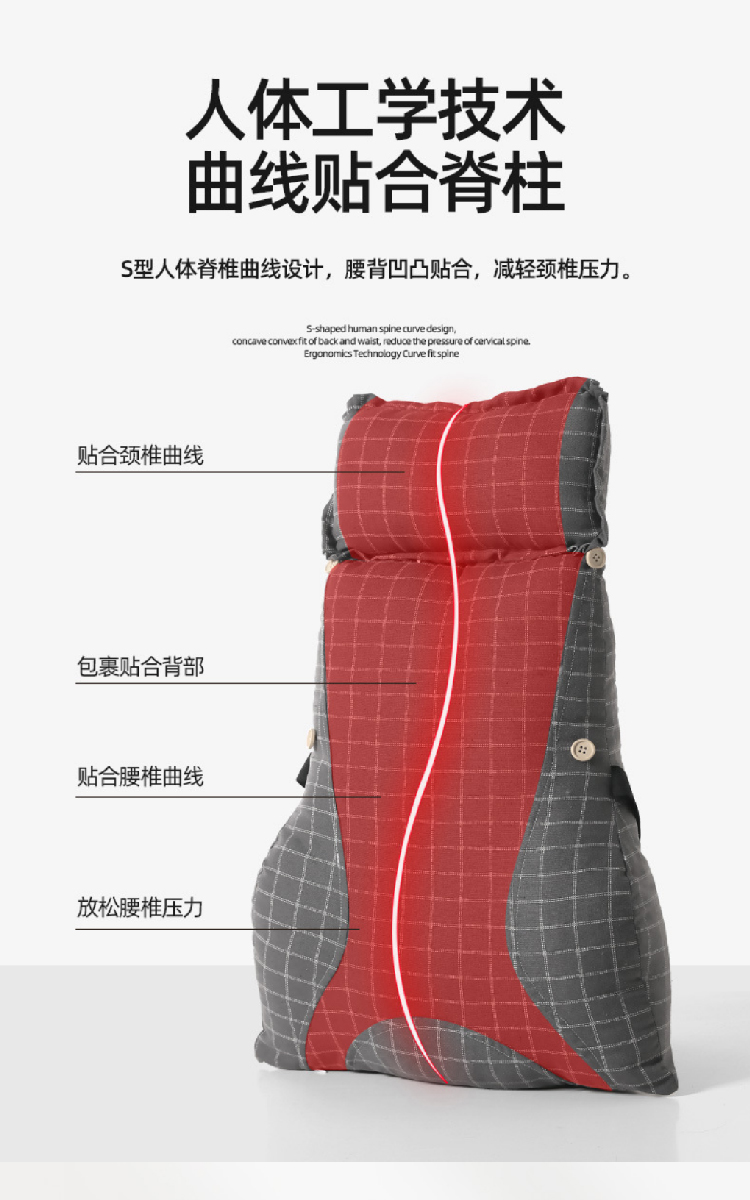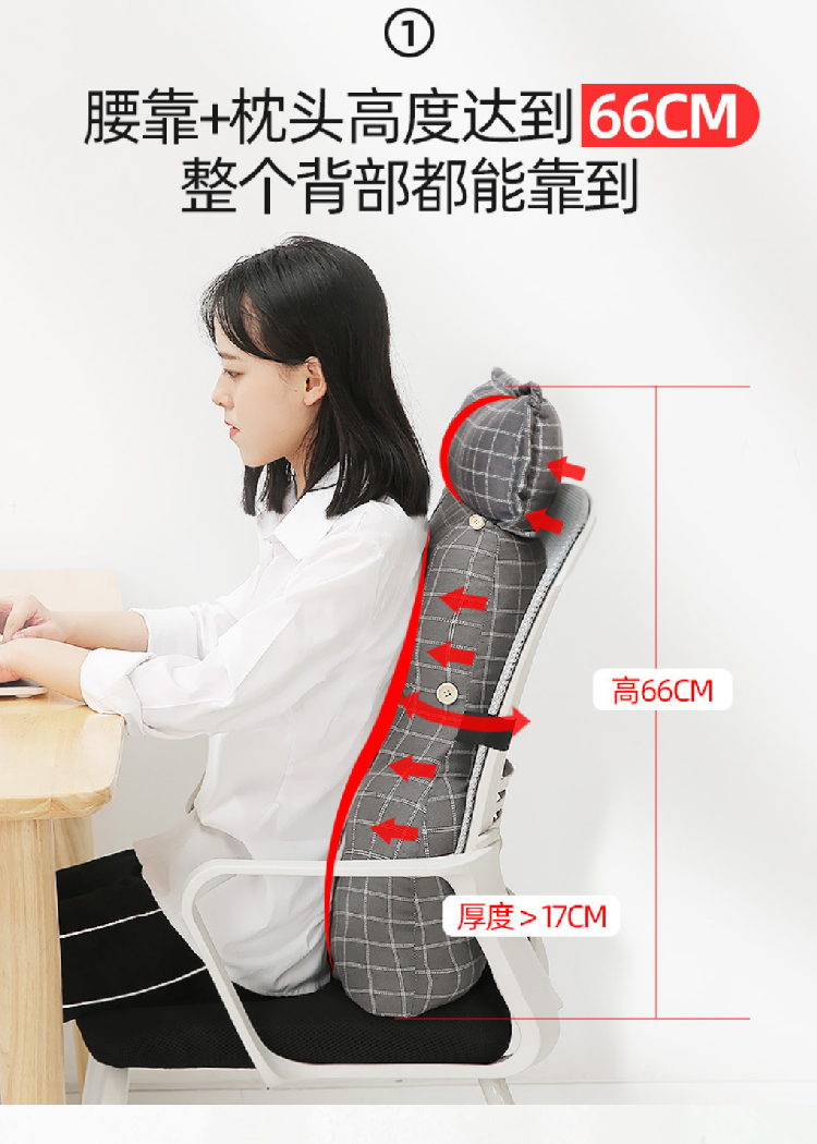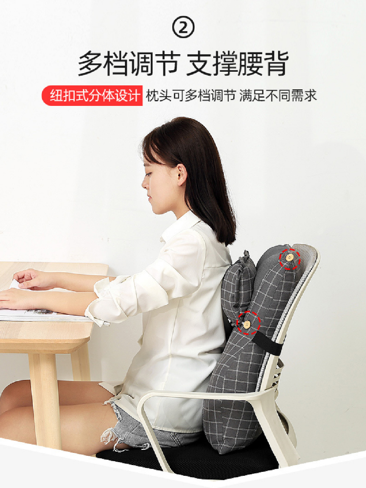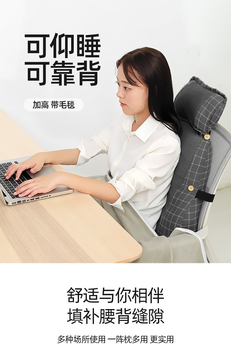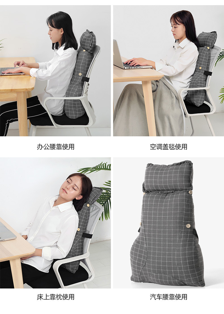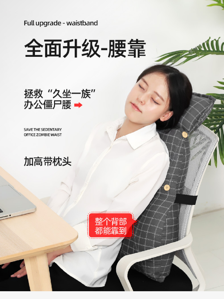 【腰靠护颈一体靠枕】办公室靠垫抱枕座椅棉麻腰垫 靠背垫椅子护颈仰睡垫护腰枕
