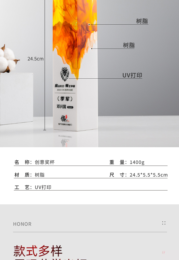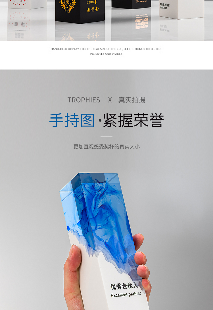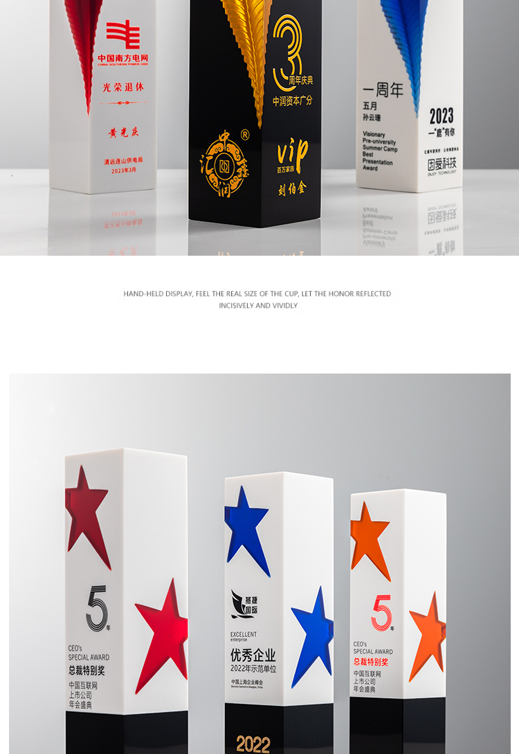 2023新款创意树脂水晶奖杯定制定做荣誉优秀员工年会颁奖纪念订做