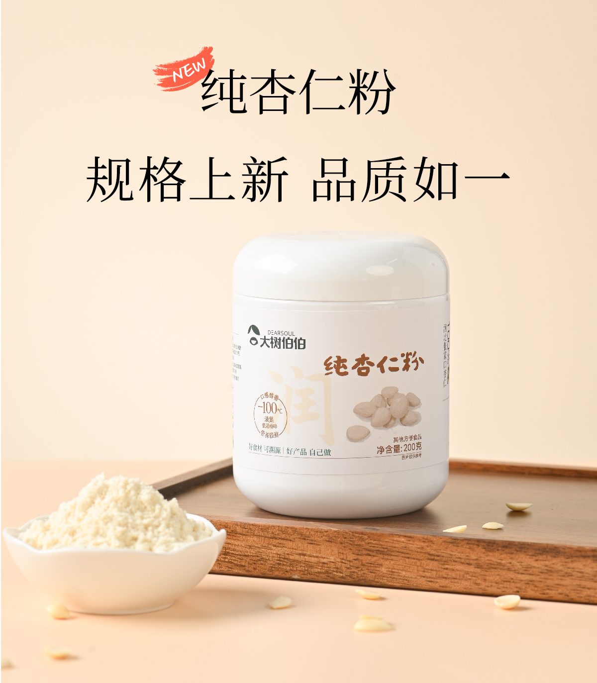 【第二罐半价】包装升级 大树伯伯 纯杏仁粉 200g 低温冷冻粉碎 选用脱苦杏仁 多种吃法