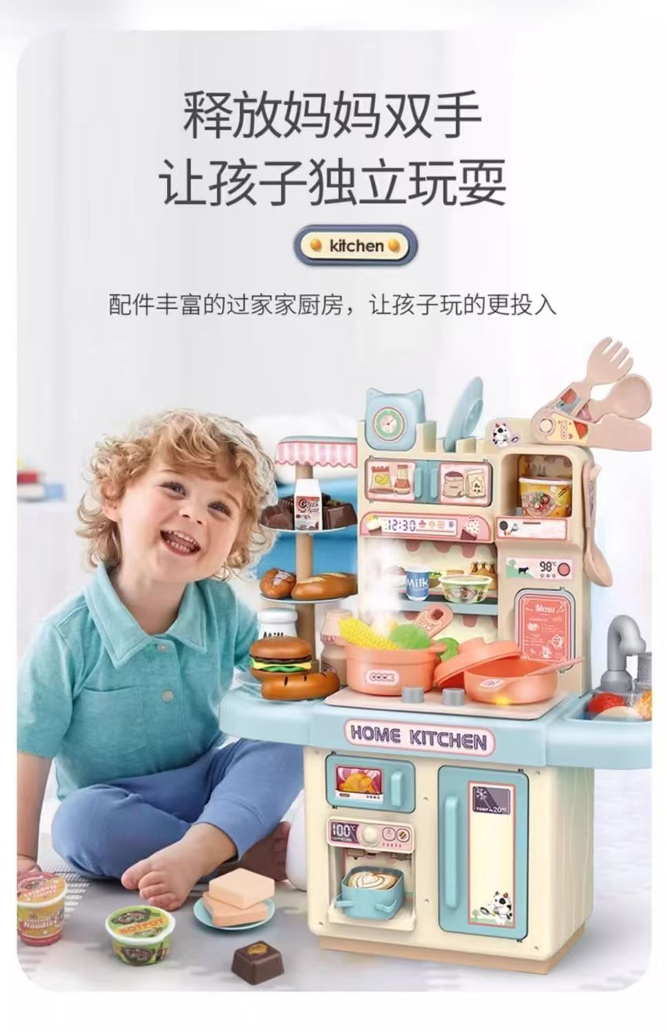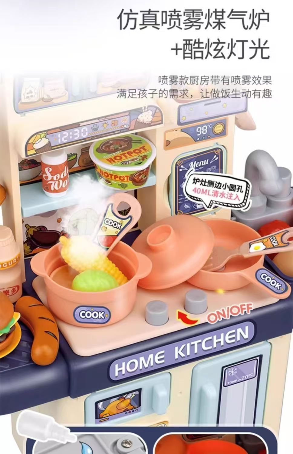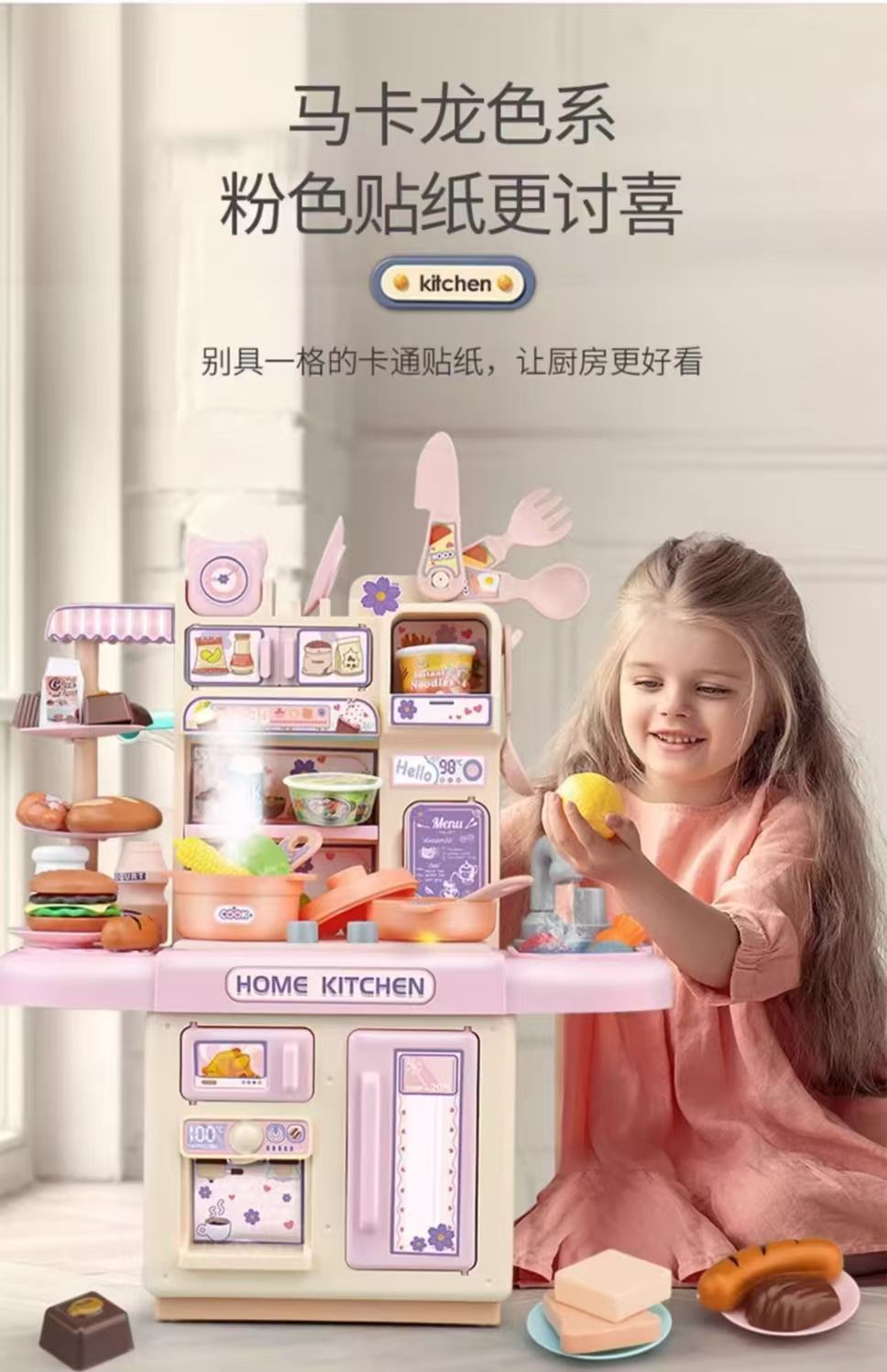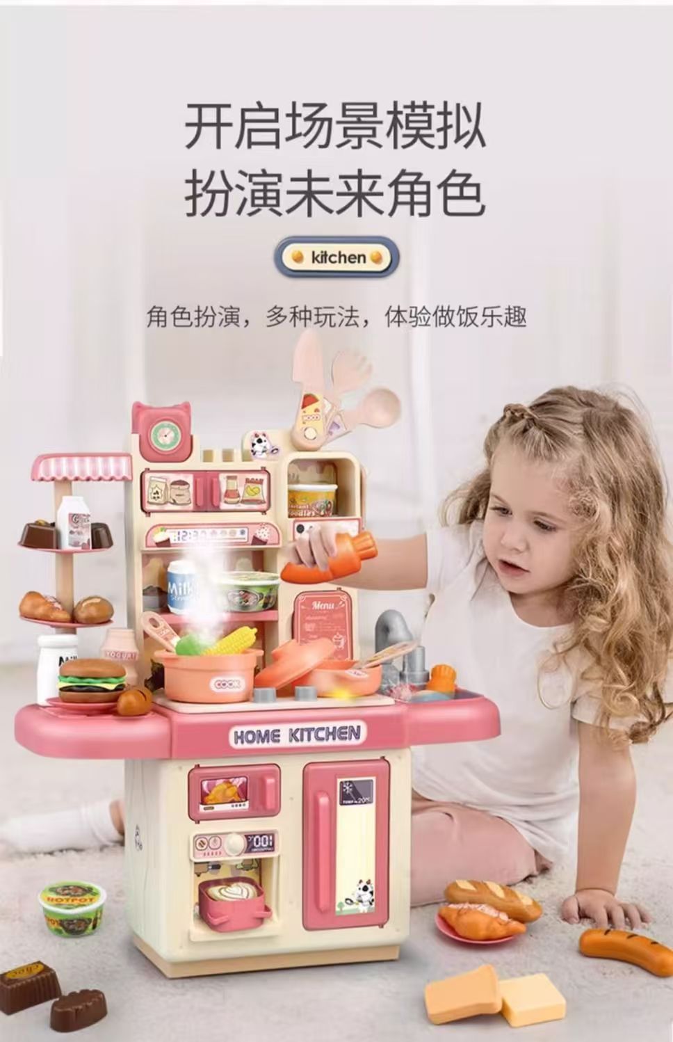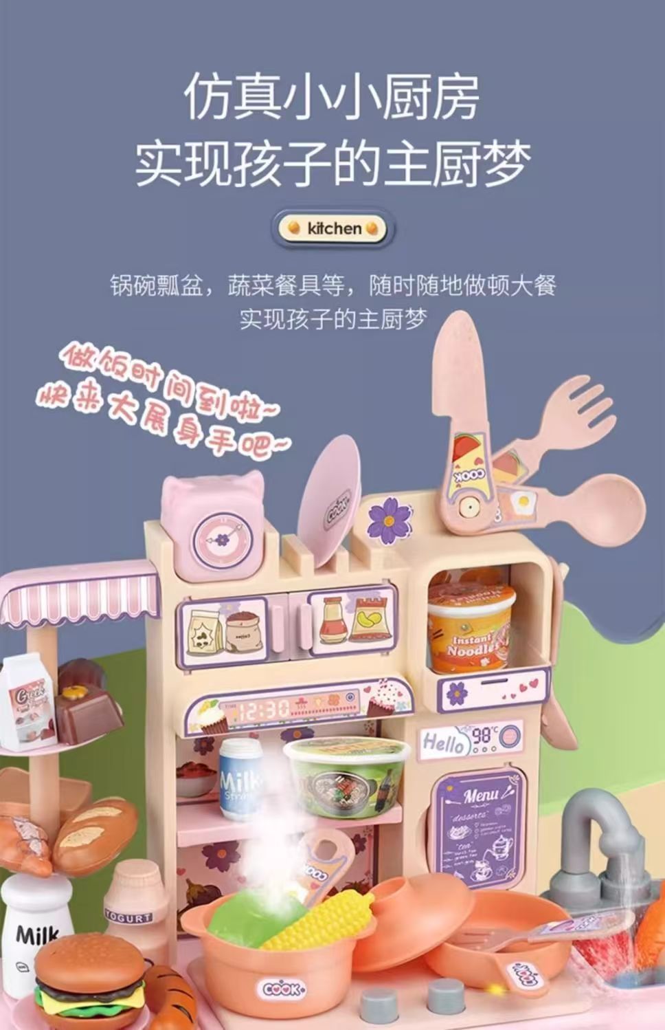 儿童过家家厨房玩具套装仿真喷雾厨房益智模仿做饭场景