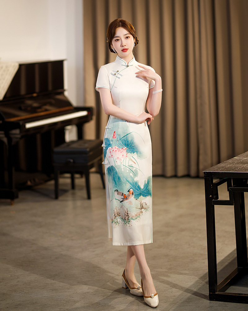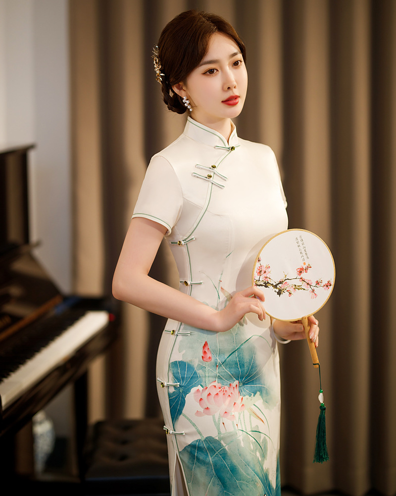 气质年轻荷花,走秀定位花旗袍ZA-5149