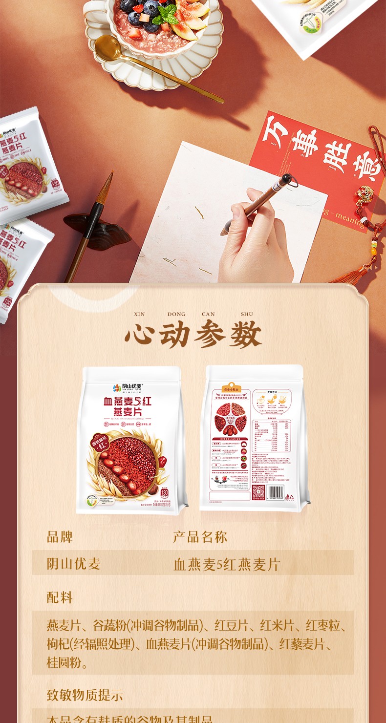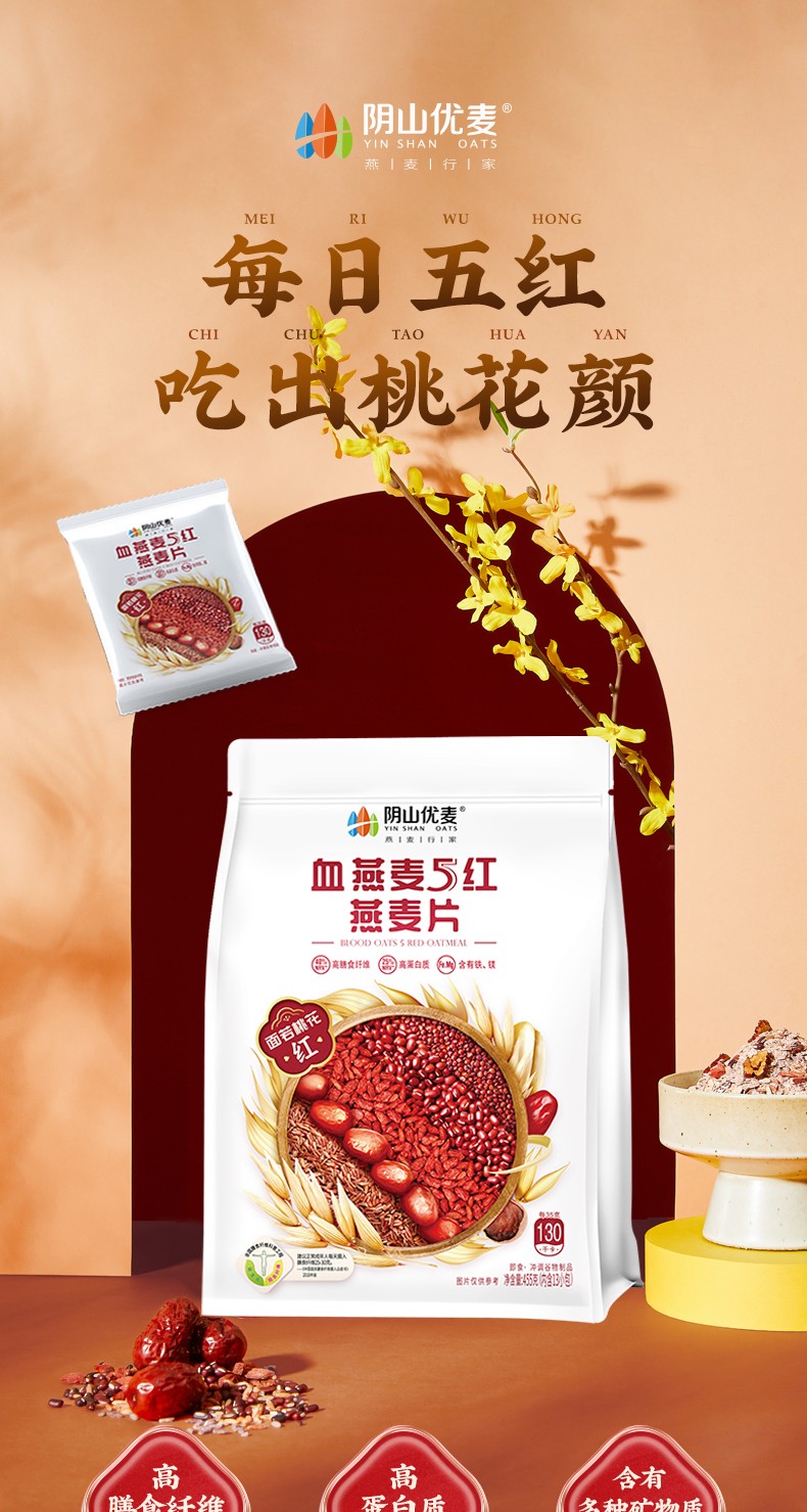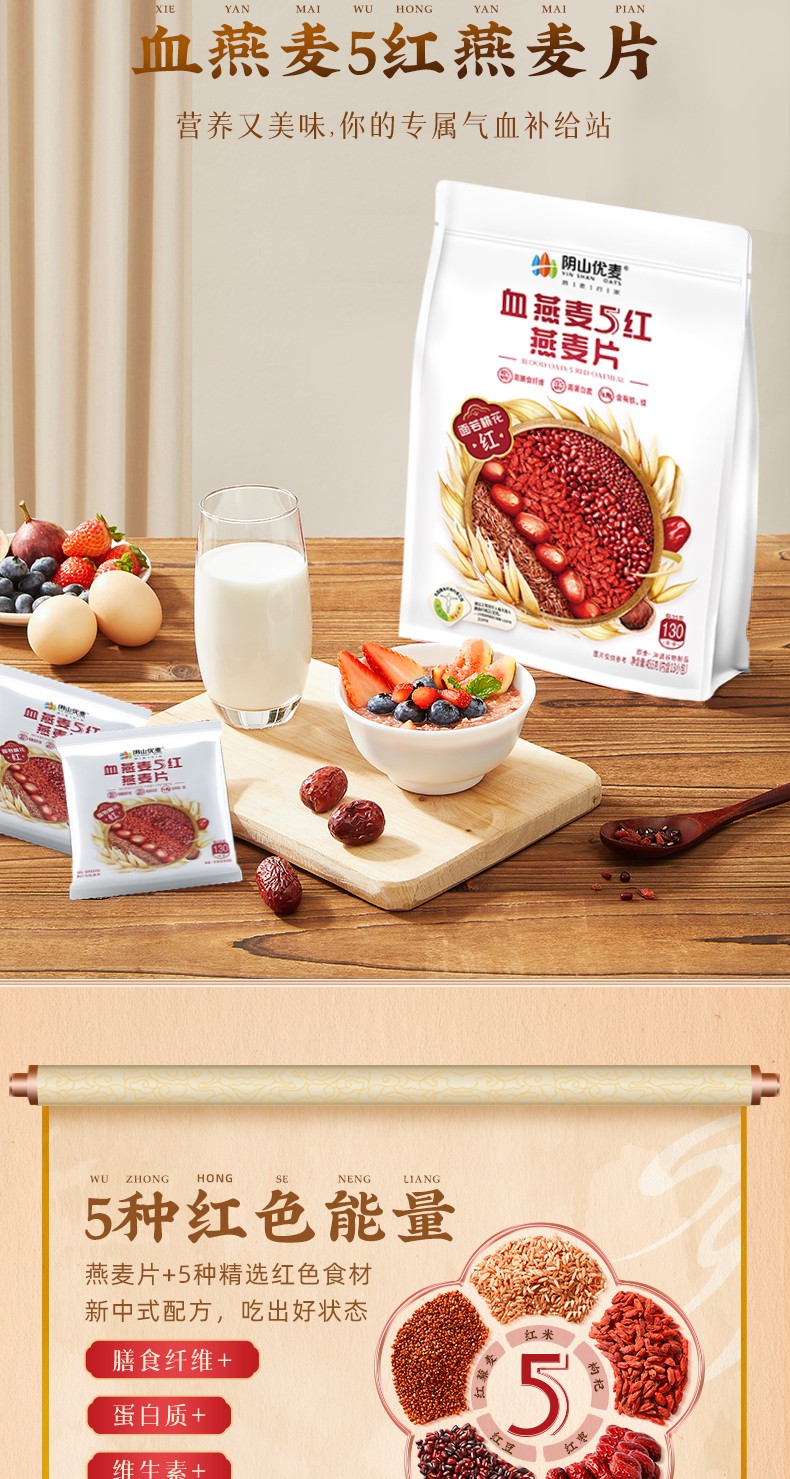 阴山优麦血燕麦5红燕麦片455克/袋*2