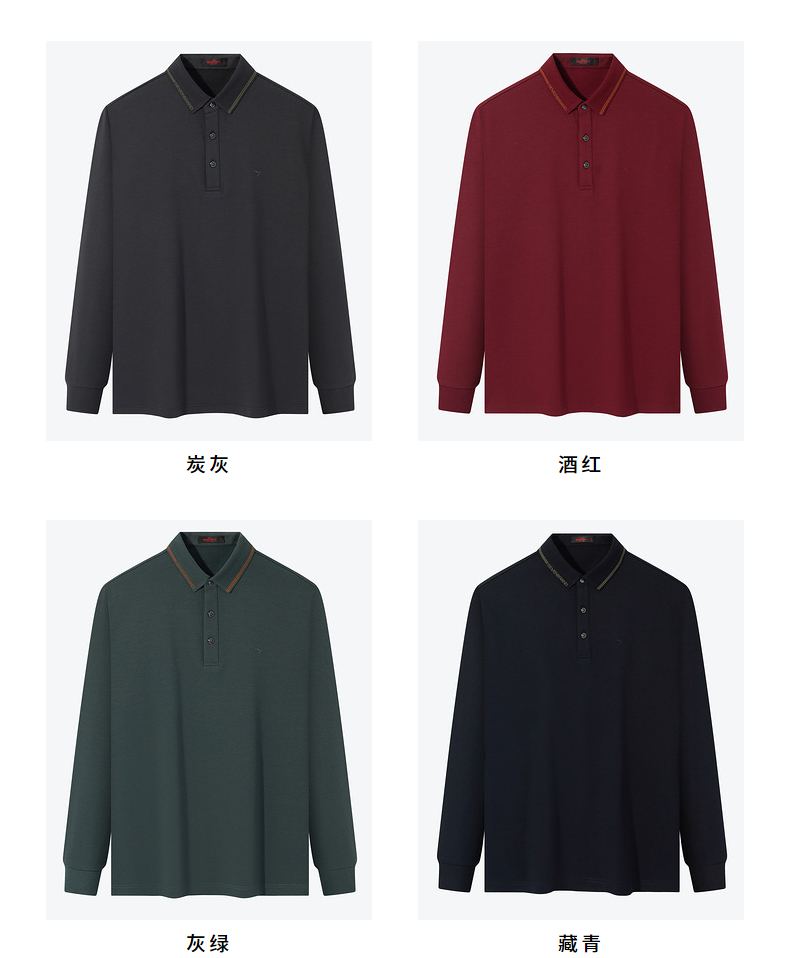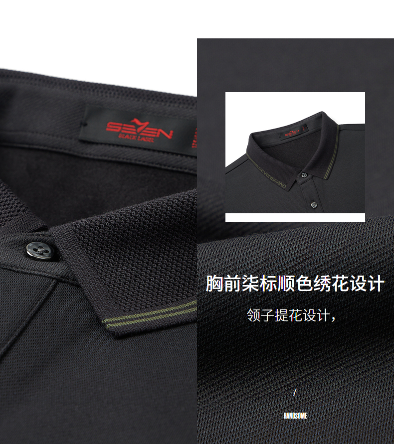 【含羊毛】柒牌polo衫男士2023秋冬新款时尚休闲字母提花翻领T恤125T70260