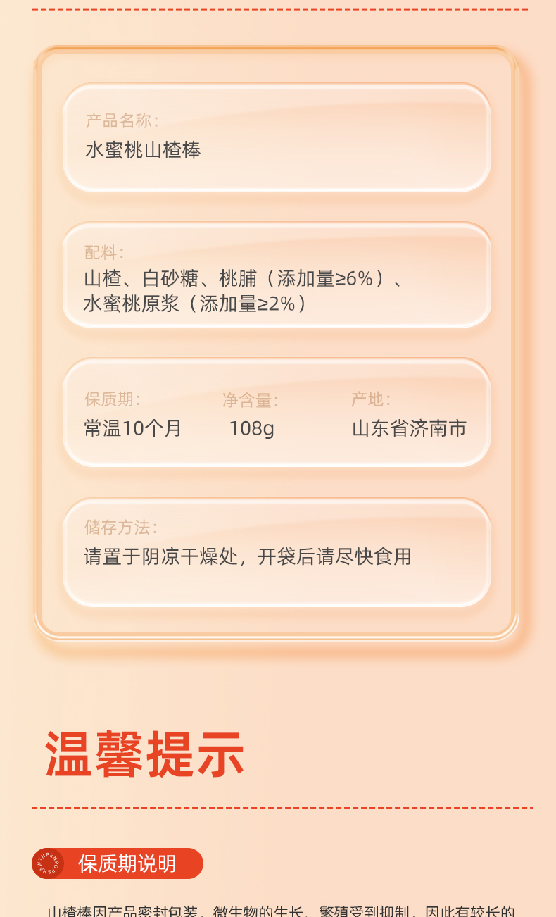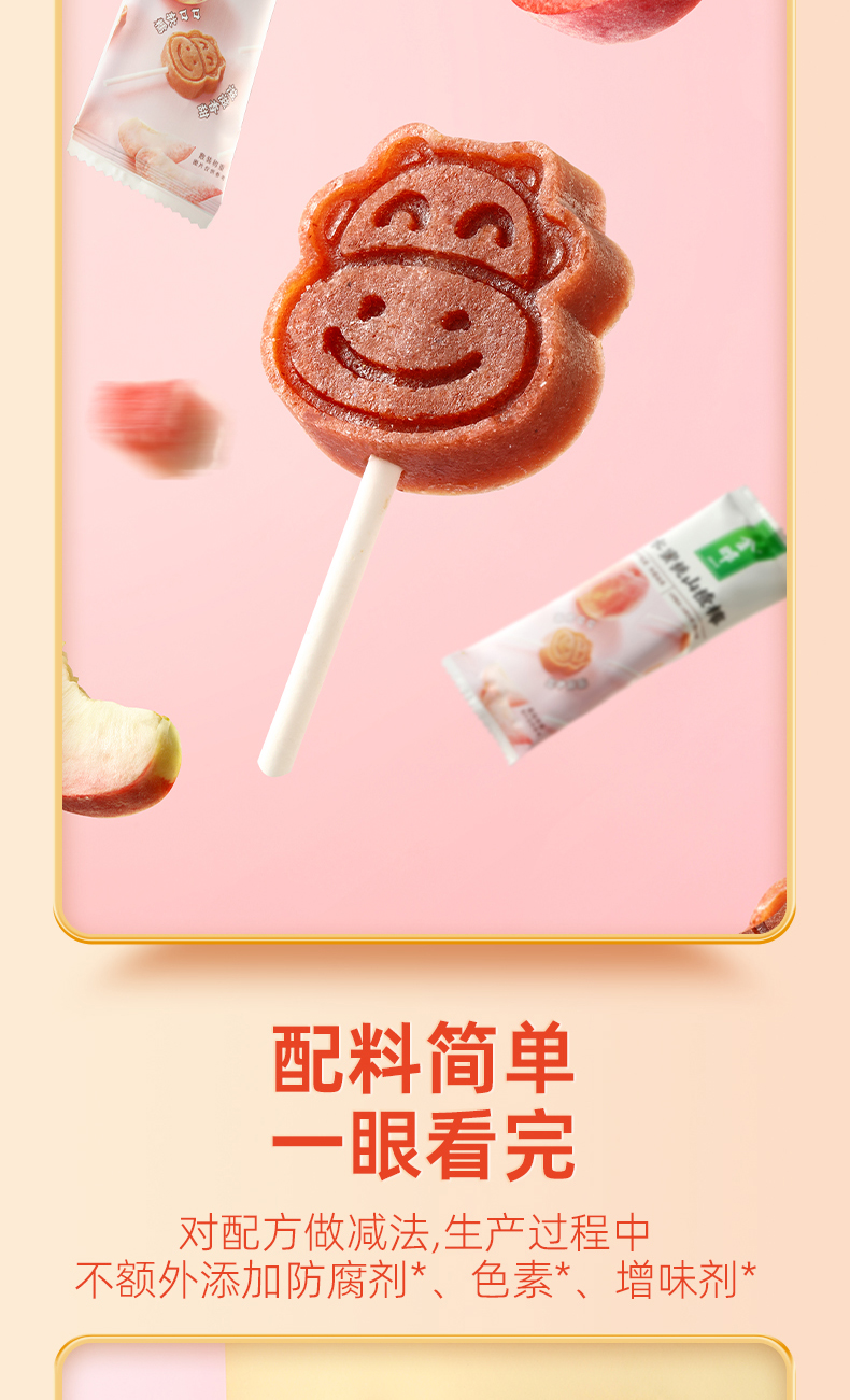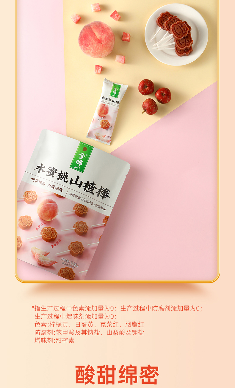 金晔水蜜桃山楂小牛棒棒糖儿童六物零食旗舰店无添加防腐剂108gx3袋