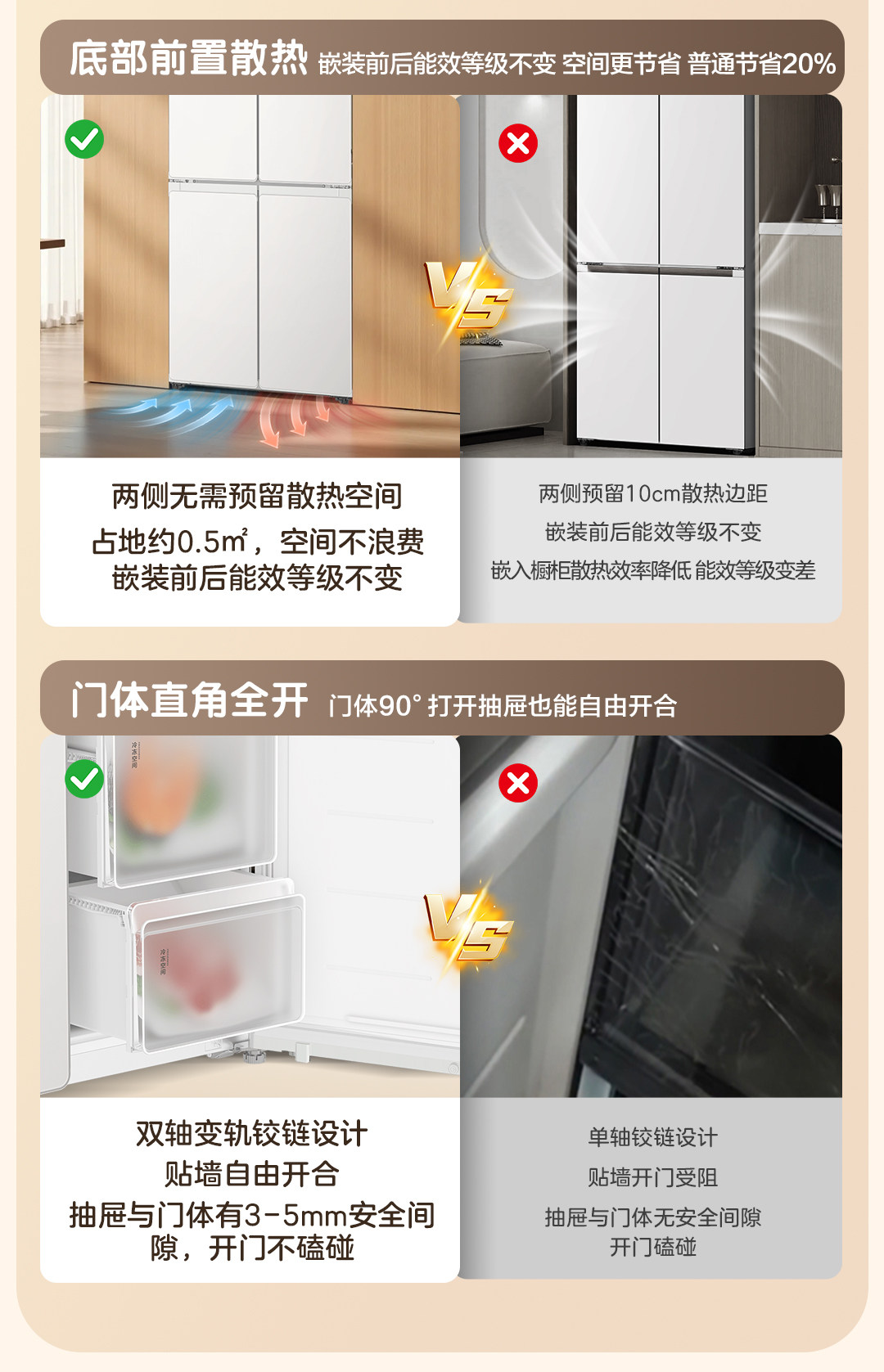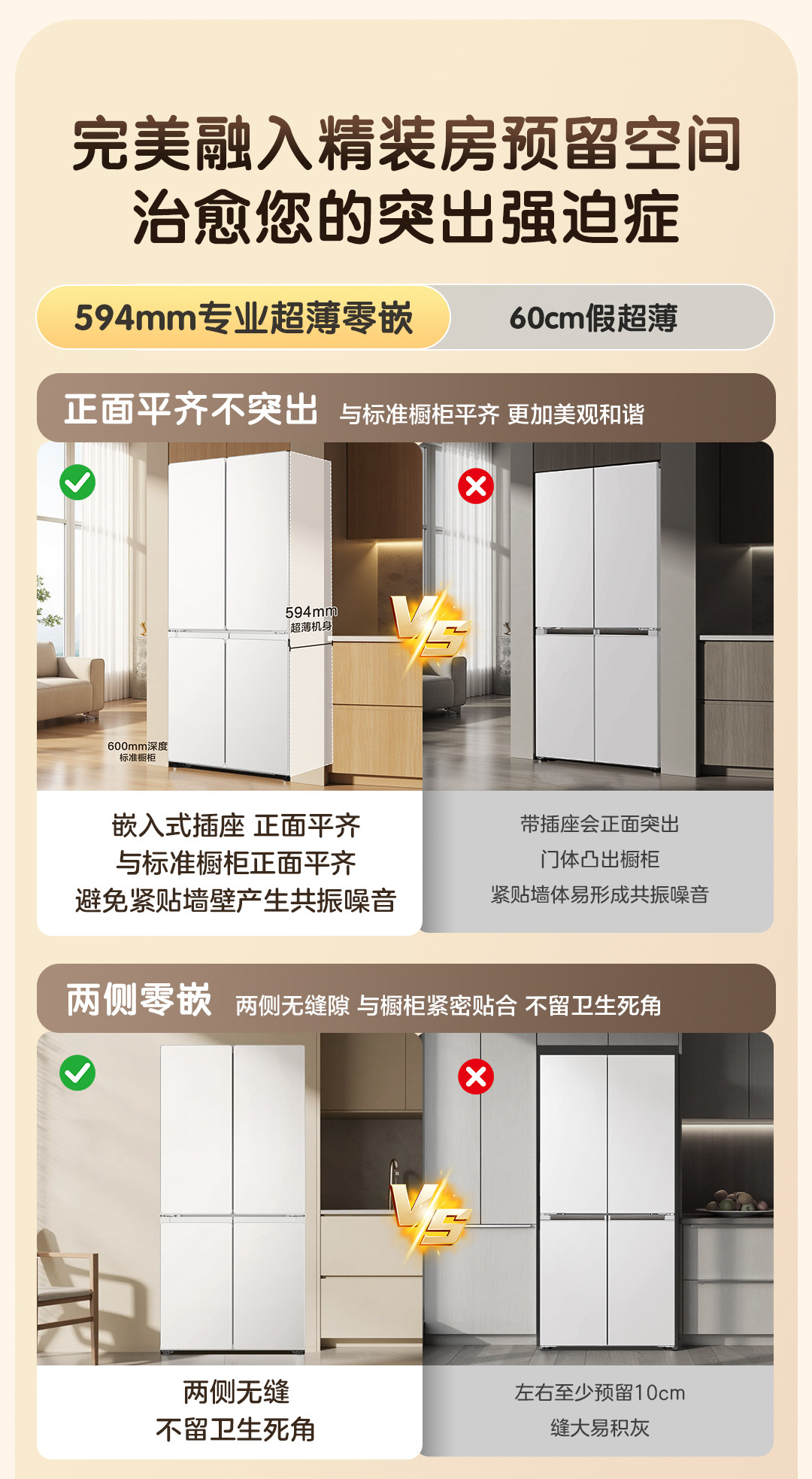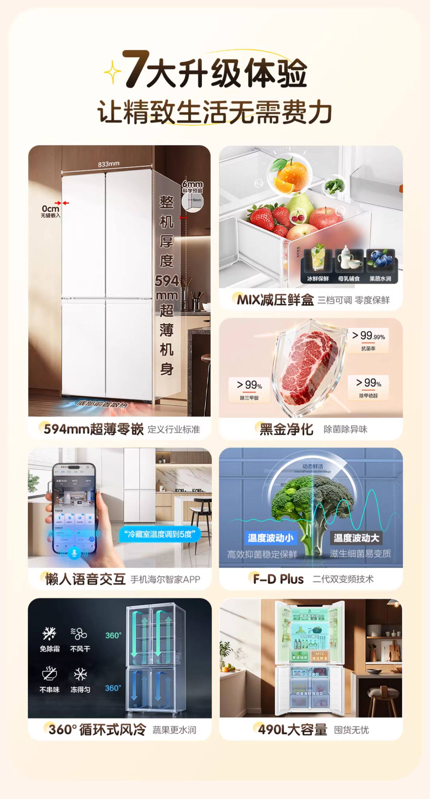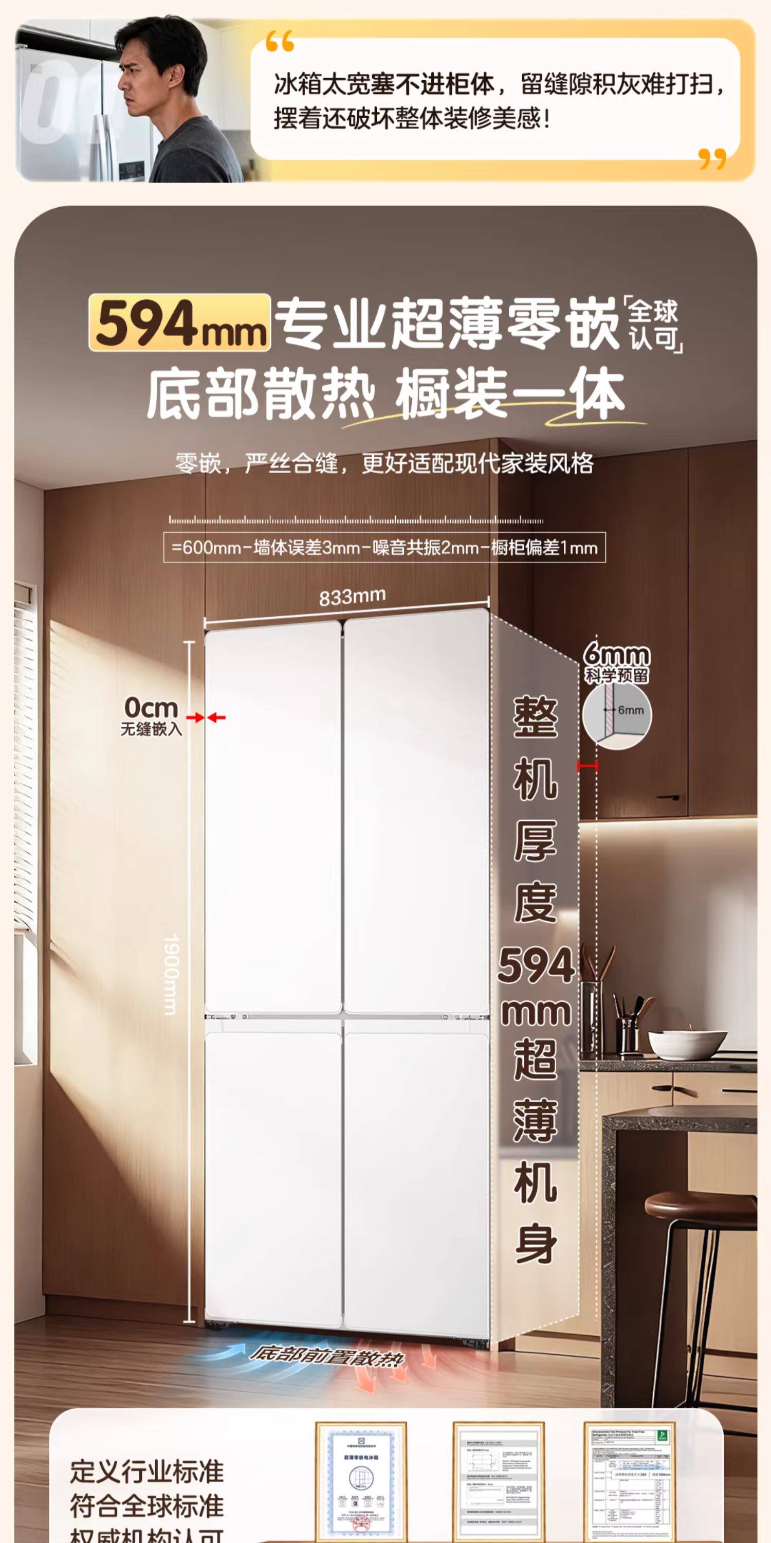 海尔出品统帅悦己懒人520十字四门超薄大容量家用电冰箱LTD-520WL9U1